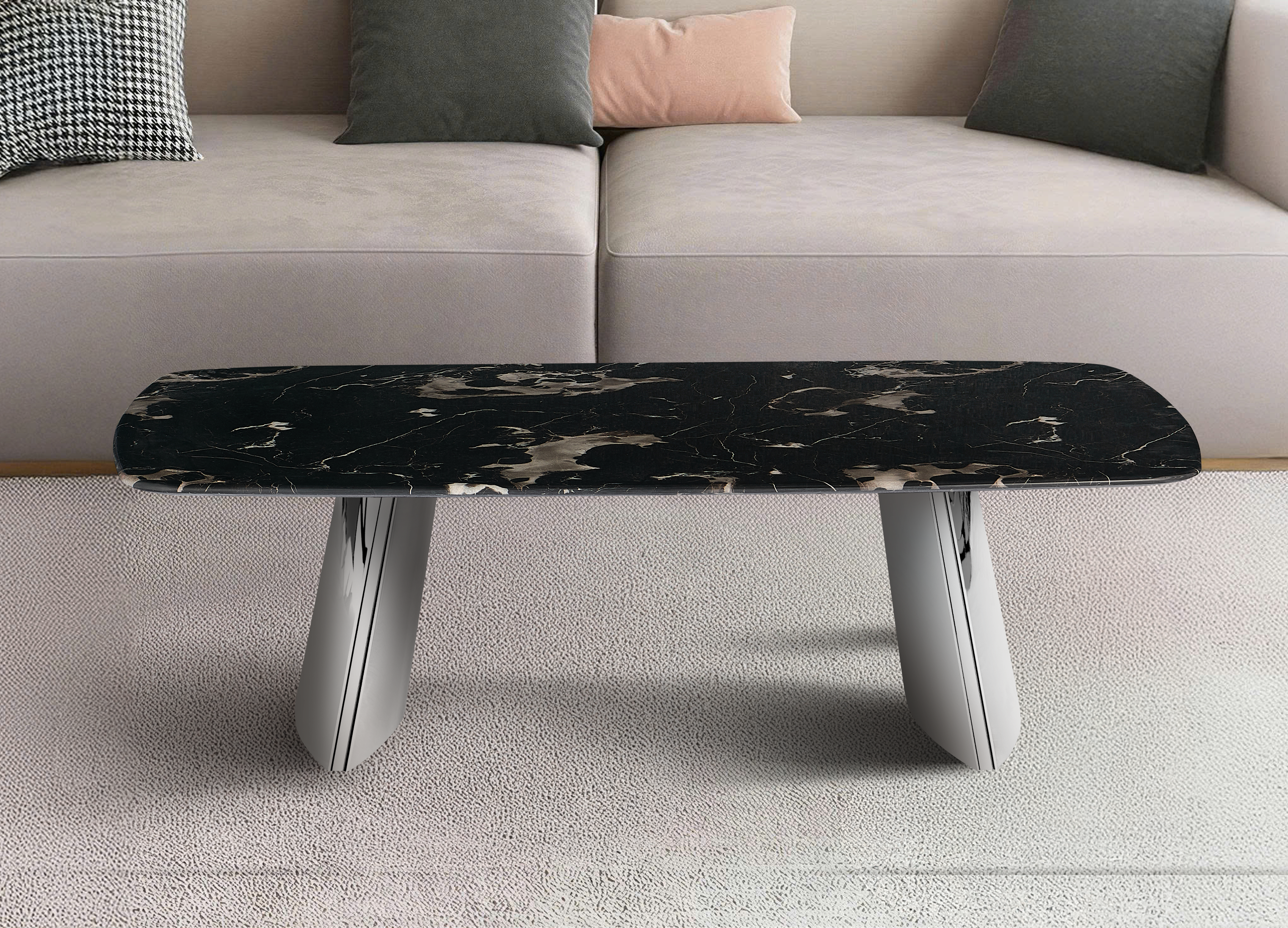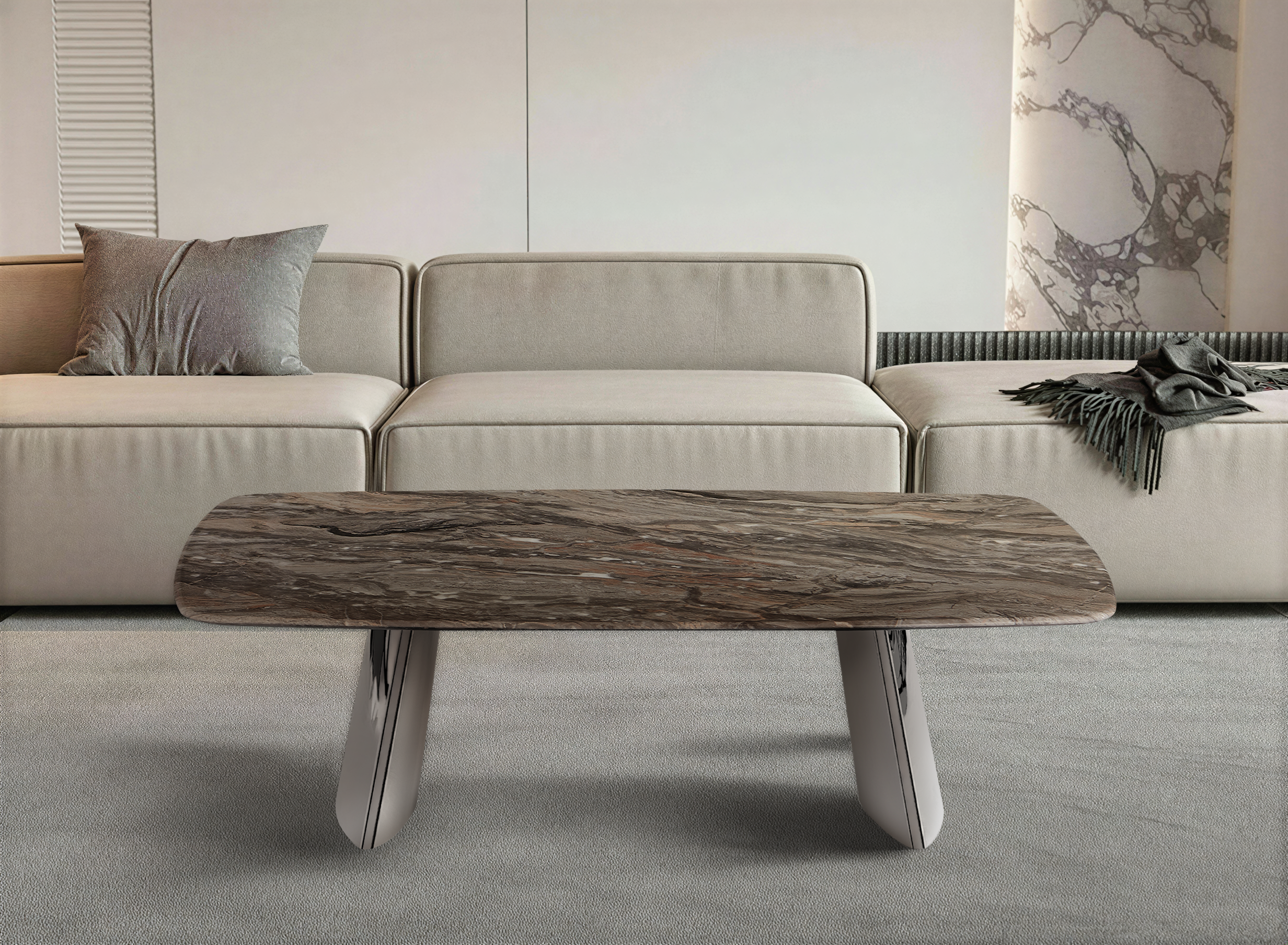 Nowoczesny stolik kawowy kamień naturalny 130x80 – Brązowy marmur i nogi inox chromowany