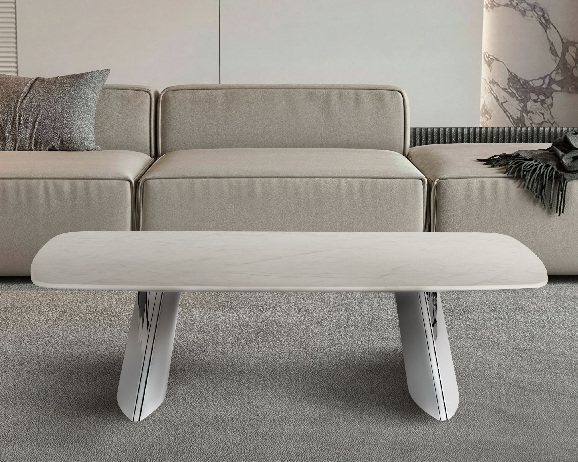 - Stolik Kawowy Prostokątny Marmur Naturalny 130x80 Nogi Inox Munich