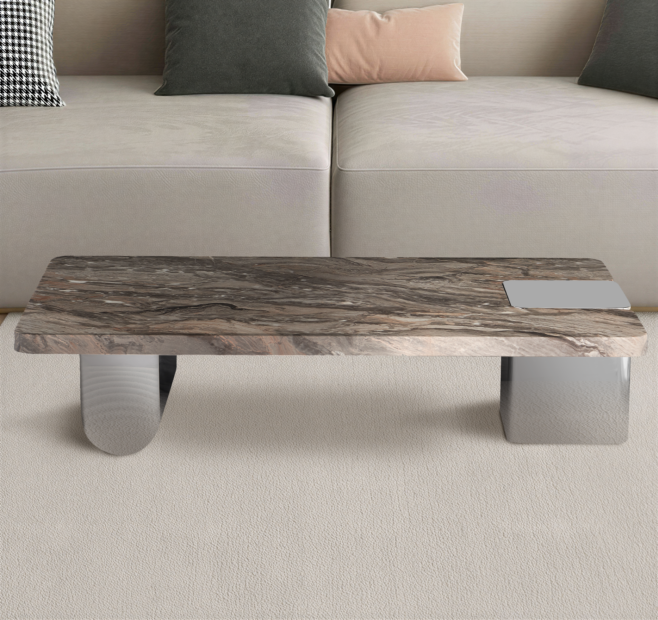 - Stolik Kawowy Prostokątny Marmur Naturalny 140x80 Nogi Inox Unity