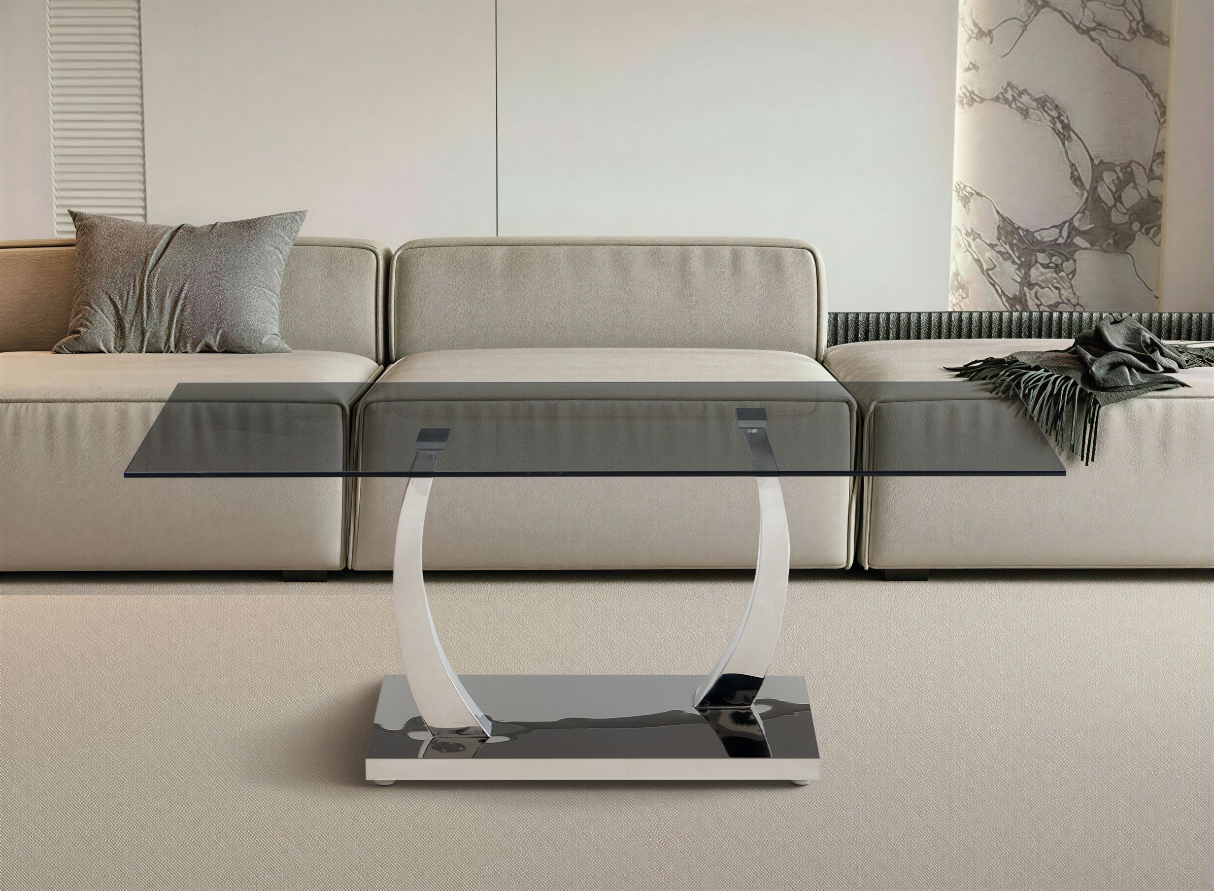 Stolik kawowy GLOW to nowoczesny mebel o prostokątnej formie, zaprojektowany z myślą o uniwersalnym zastosowaniu oraz różnorodnych aranżacjach wnętrz. Prosta linia blatu w połączeniu z eleganckim, chromowanym stelażem nadaje całości lekkości i ponadczasowego charakteru.