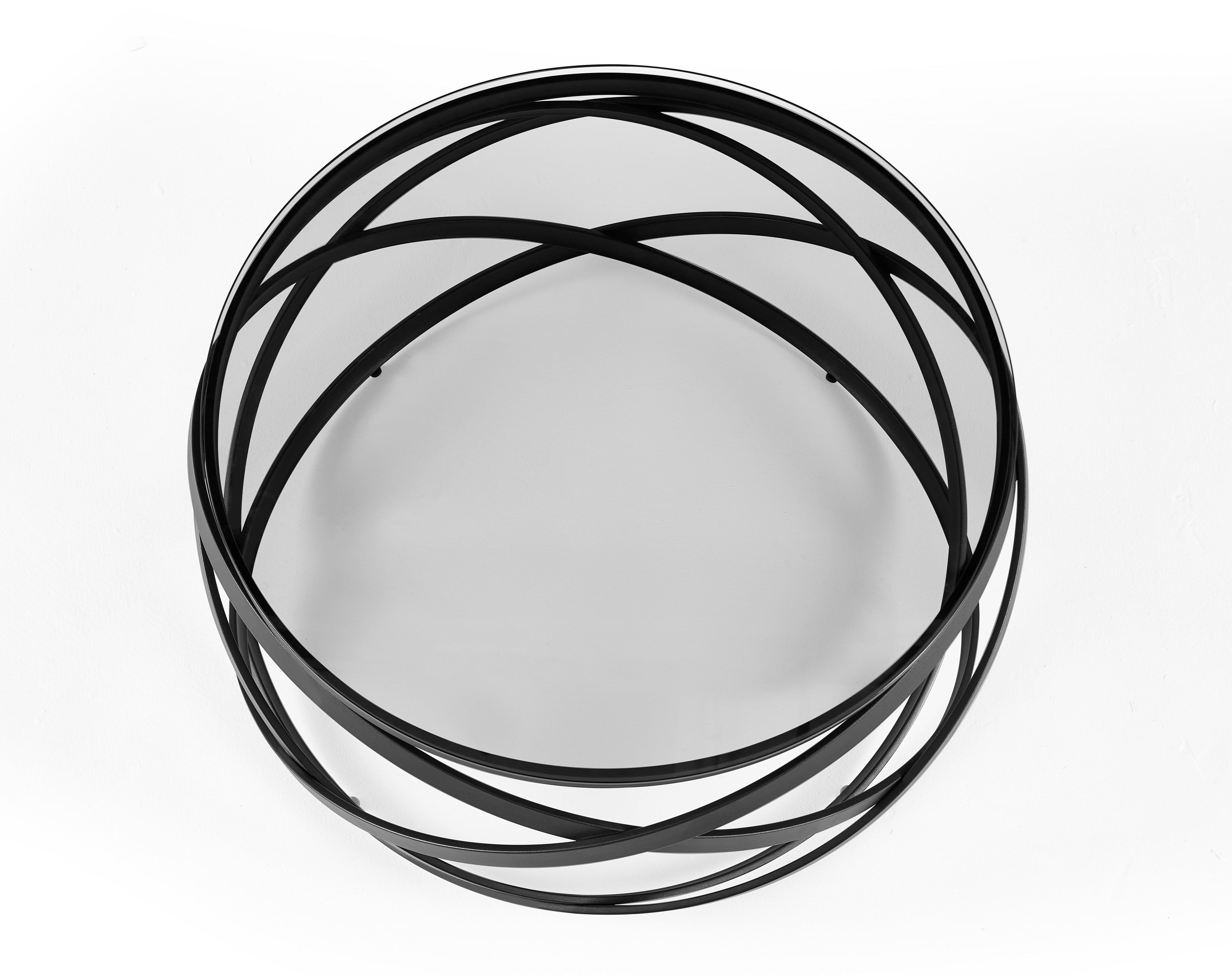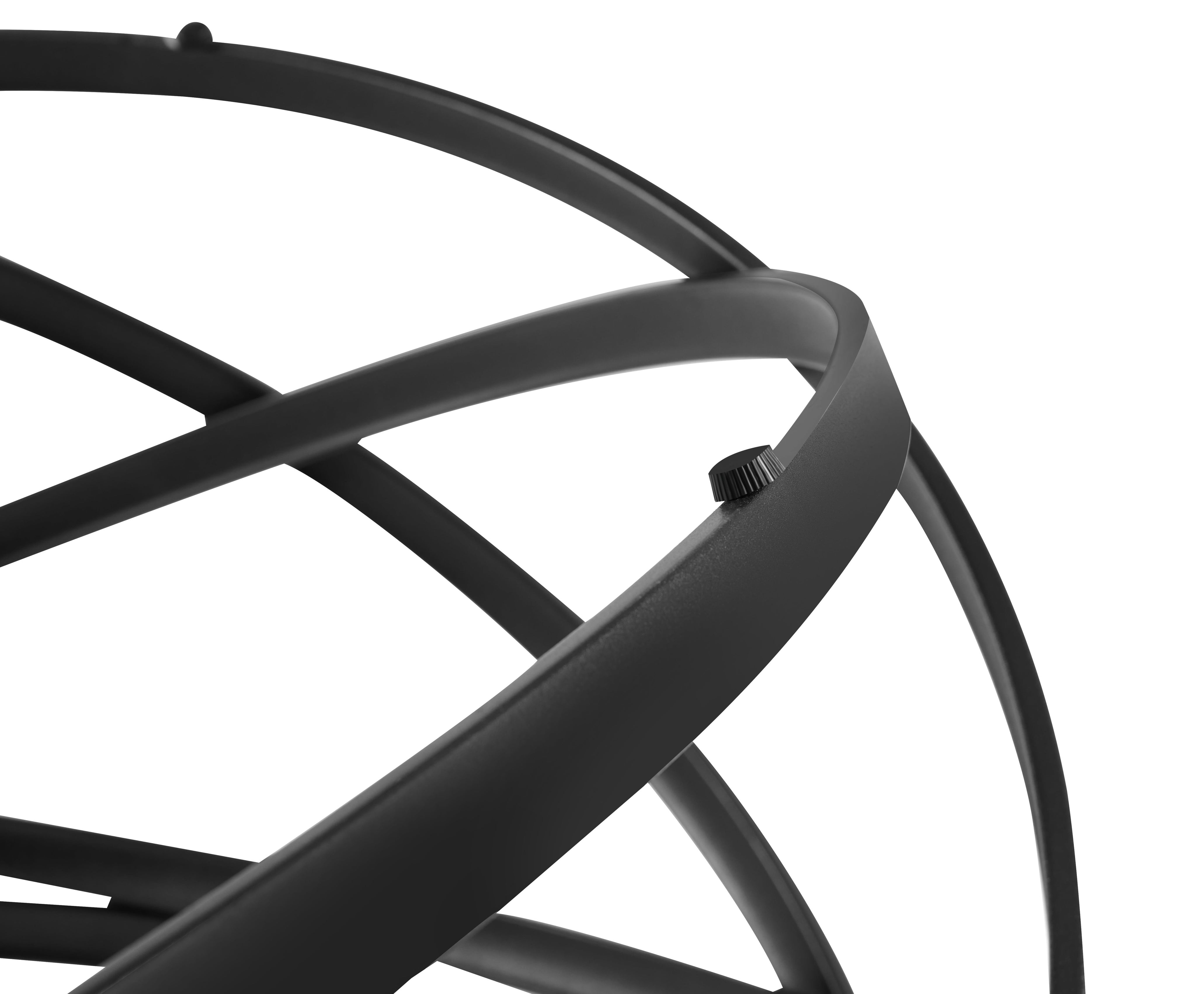 - Geometryczna podstawa z zakrzywionych metalowych pasów w formie kuli