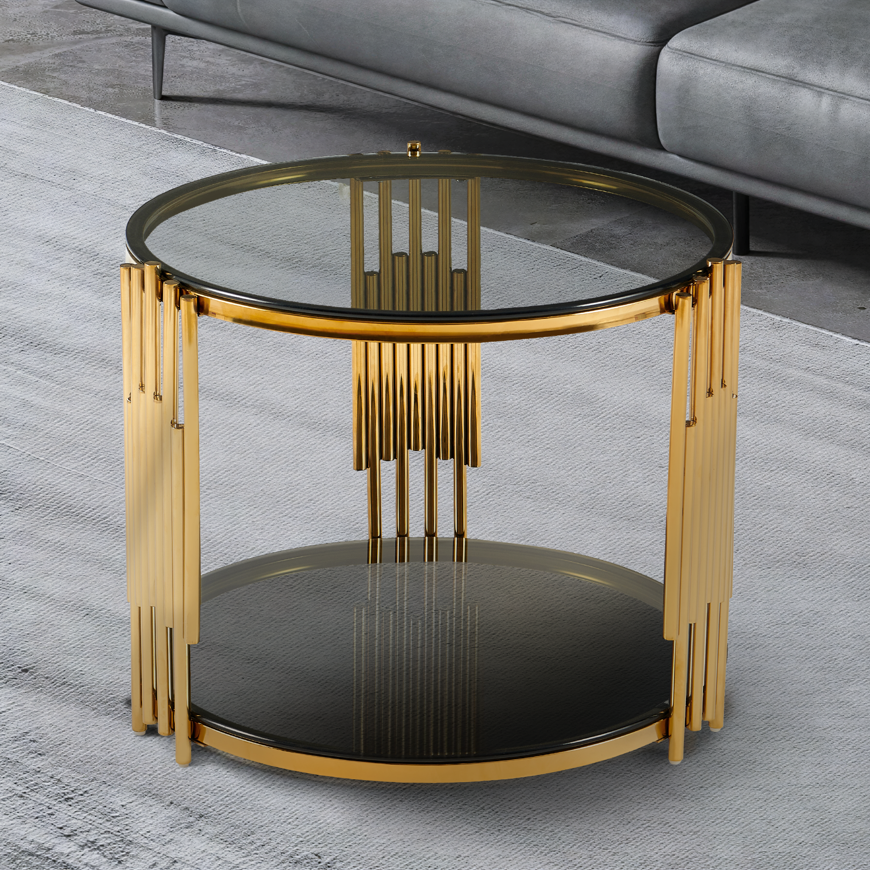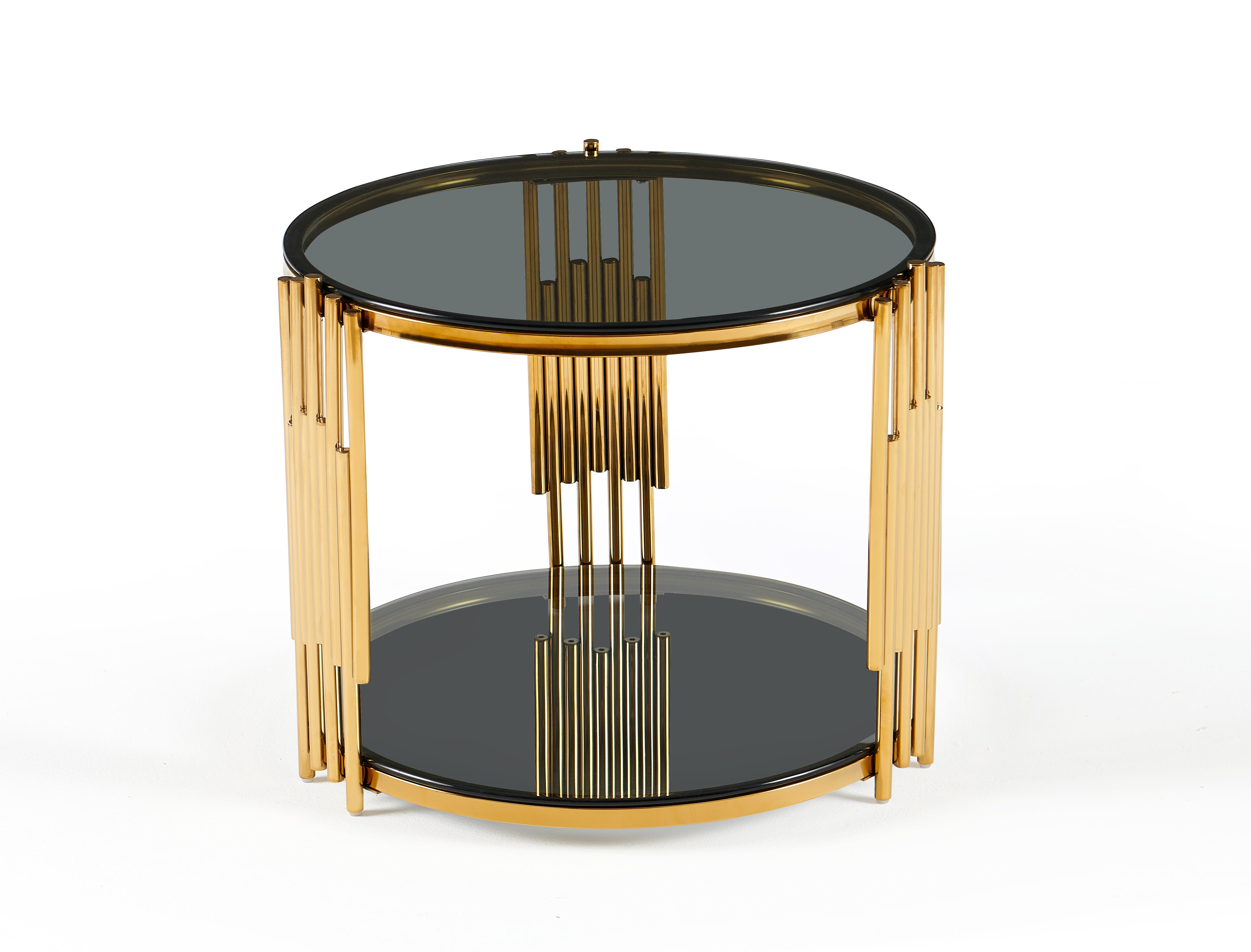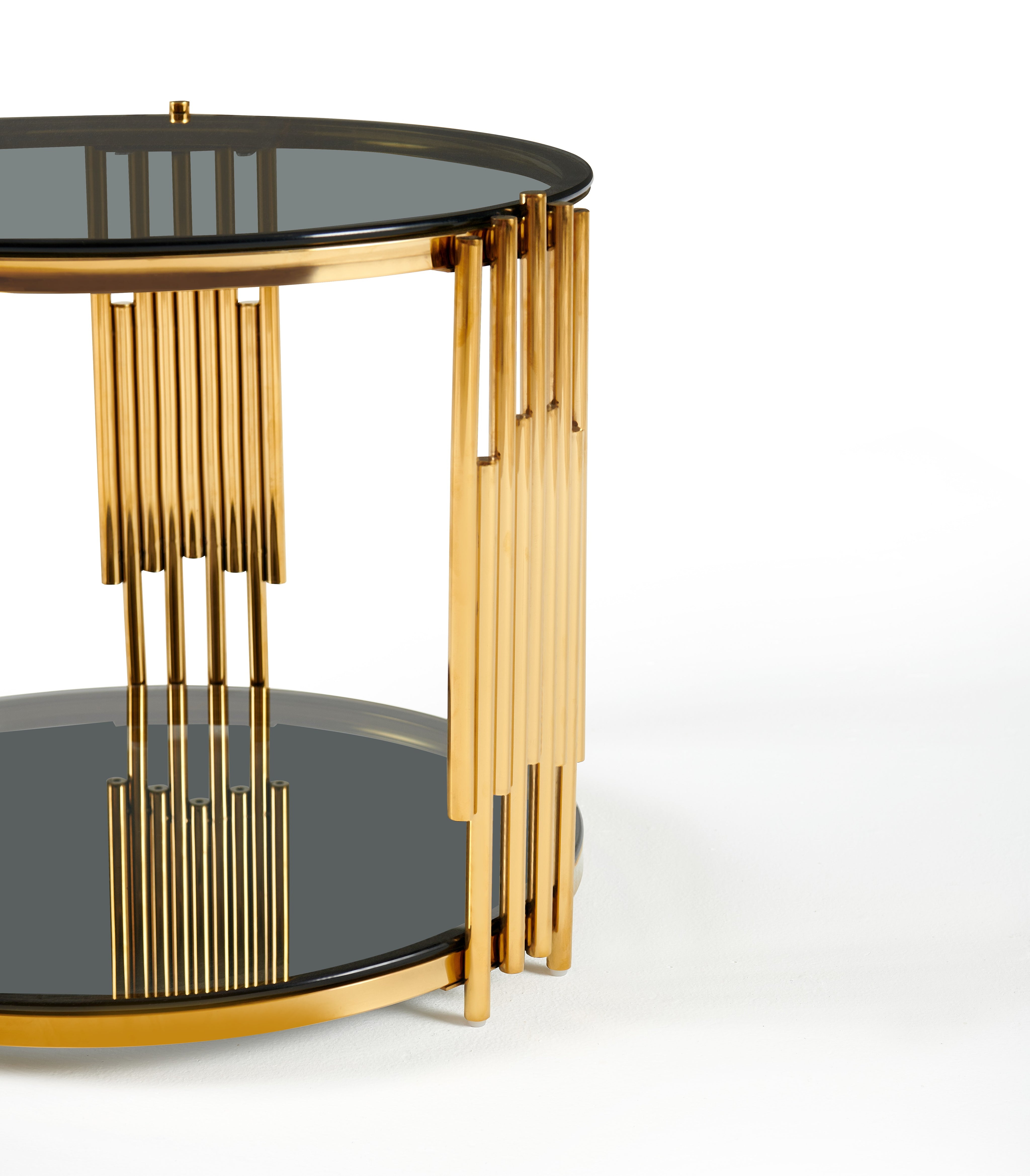 Stolik Kawowy Okrągły Szkło Hartowane Złote Nogi Ze Stali Nierdzewnej 60 cm Vision
