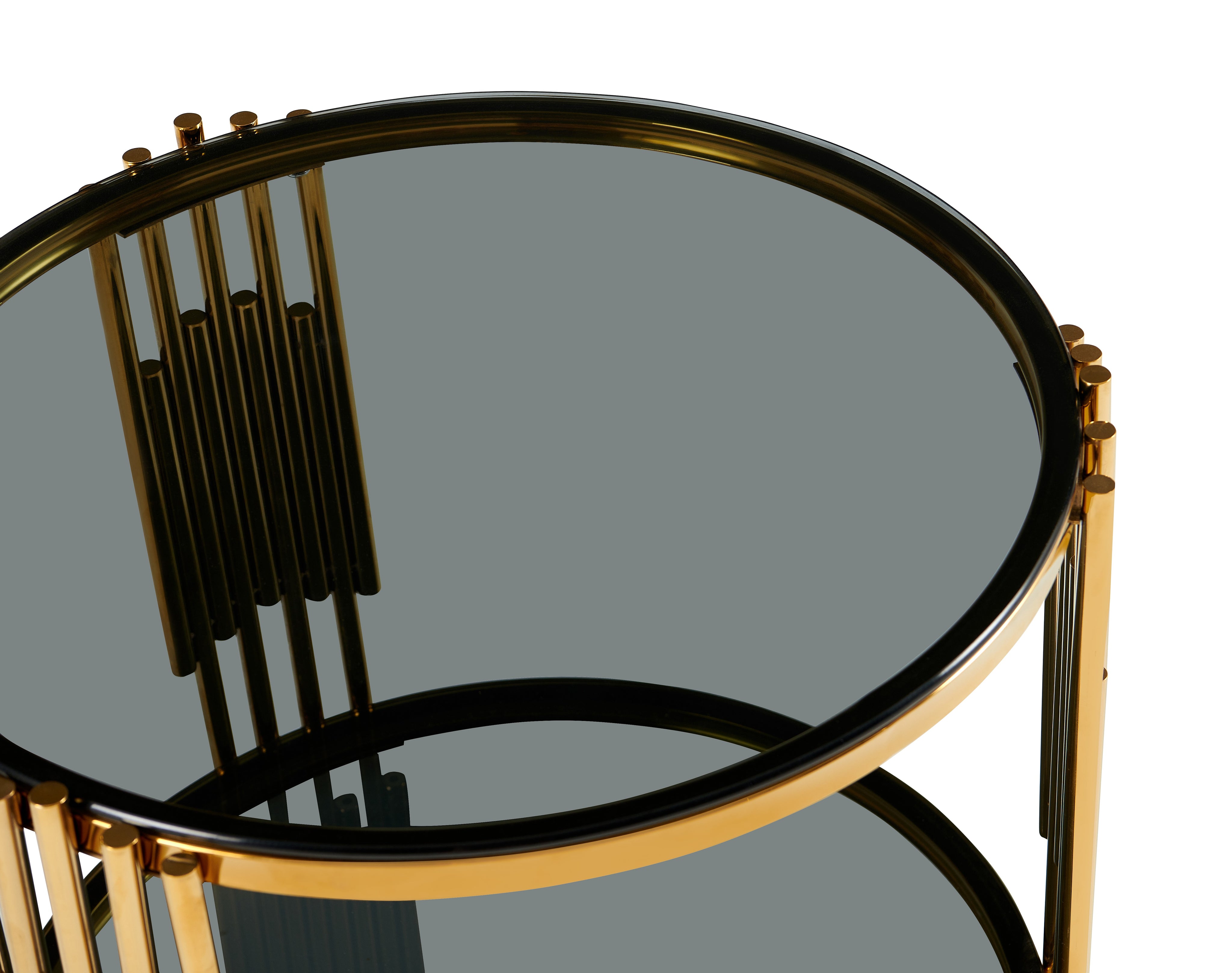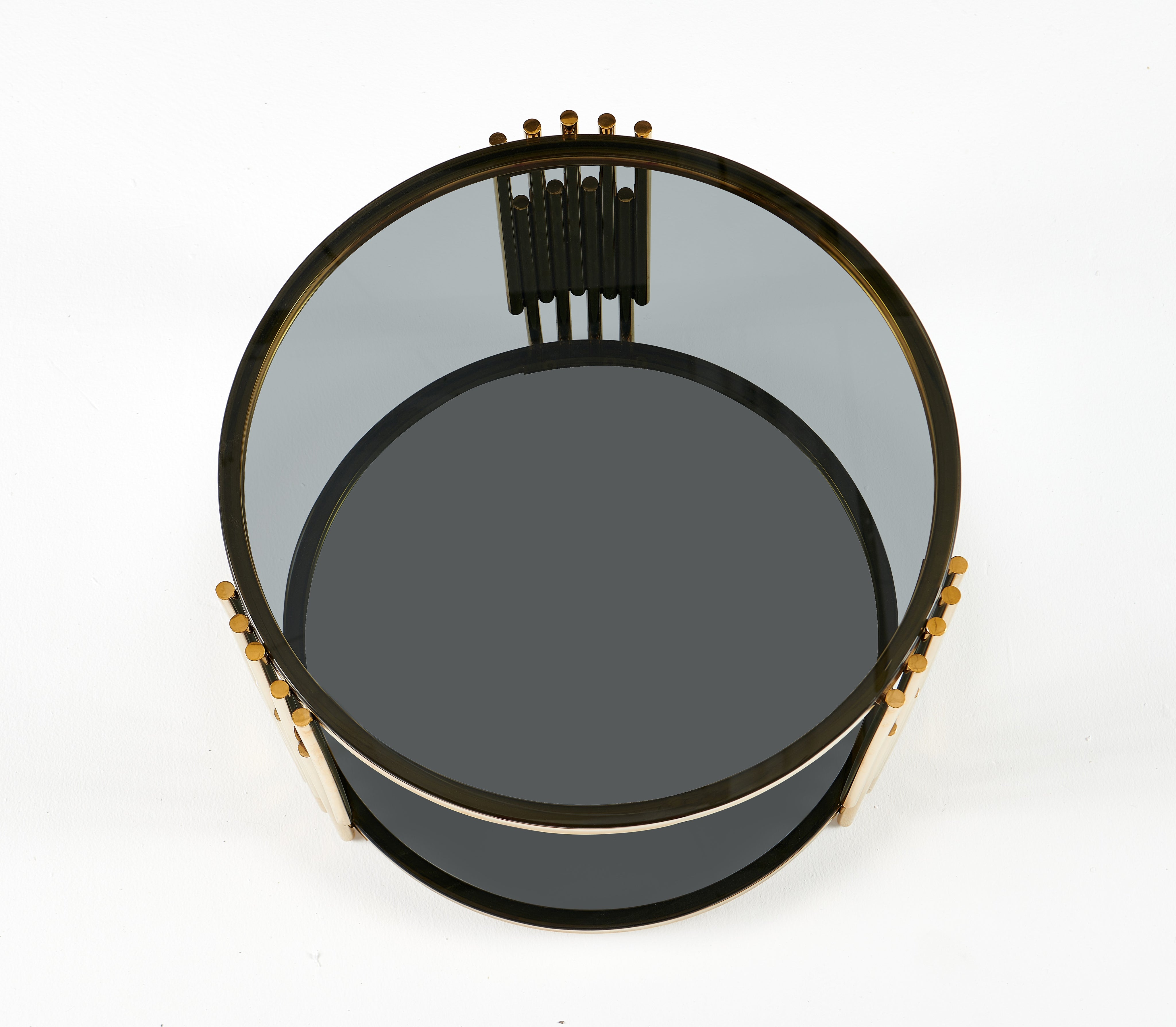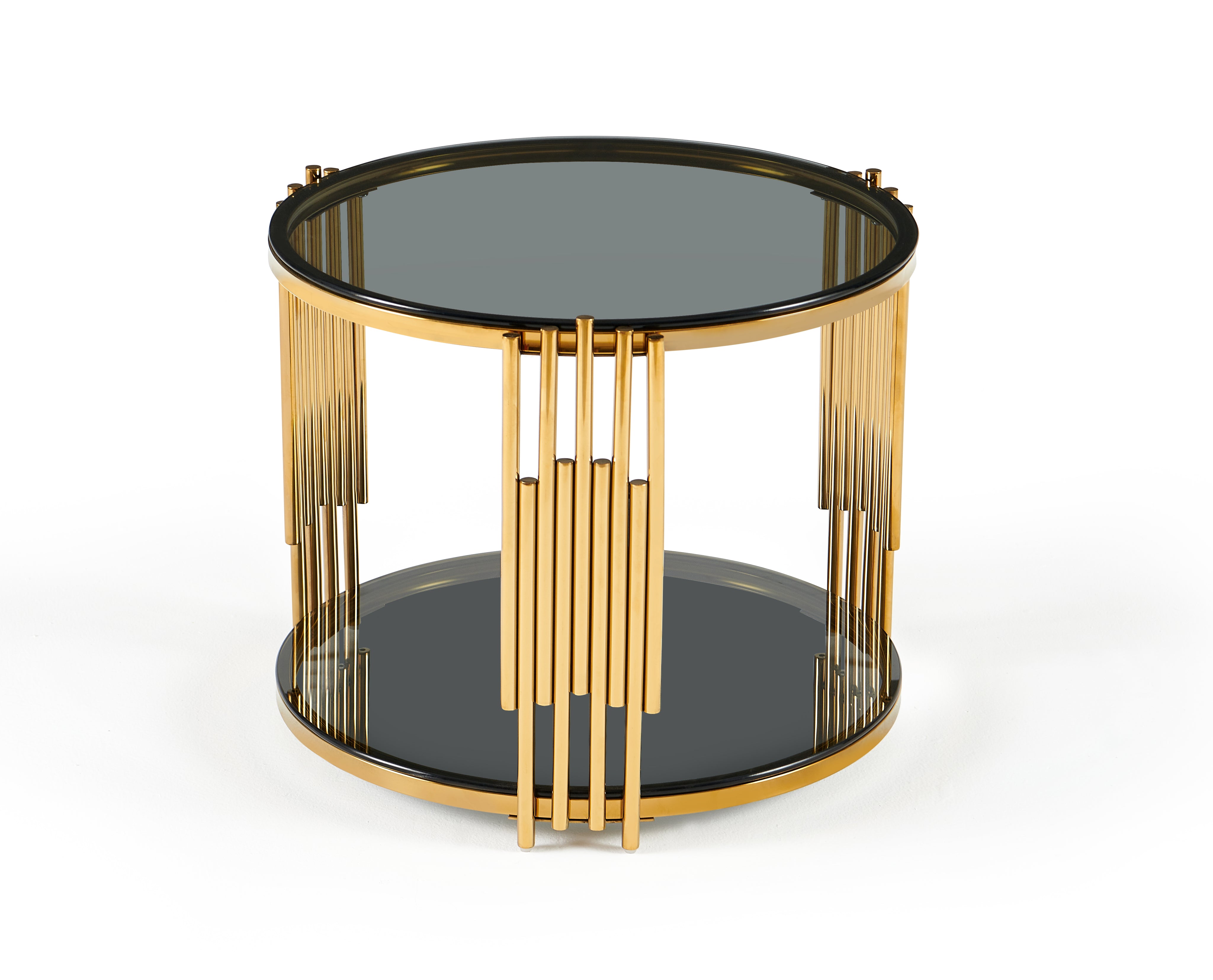 Stolik Kawowy Okrągły Szkło Hartowane Złote Nogi Ze Stali Nierdzewnej 60 cm Vision