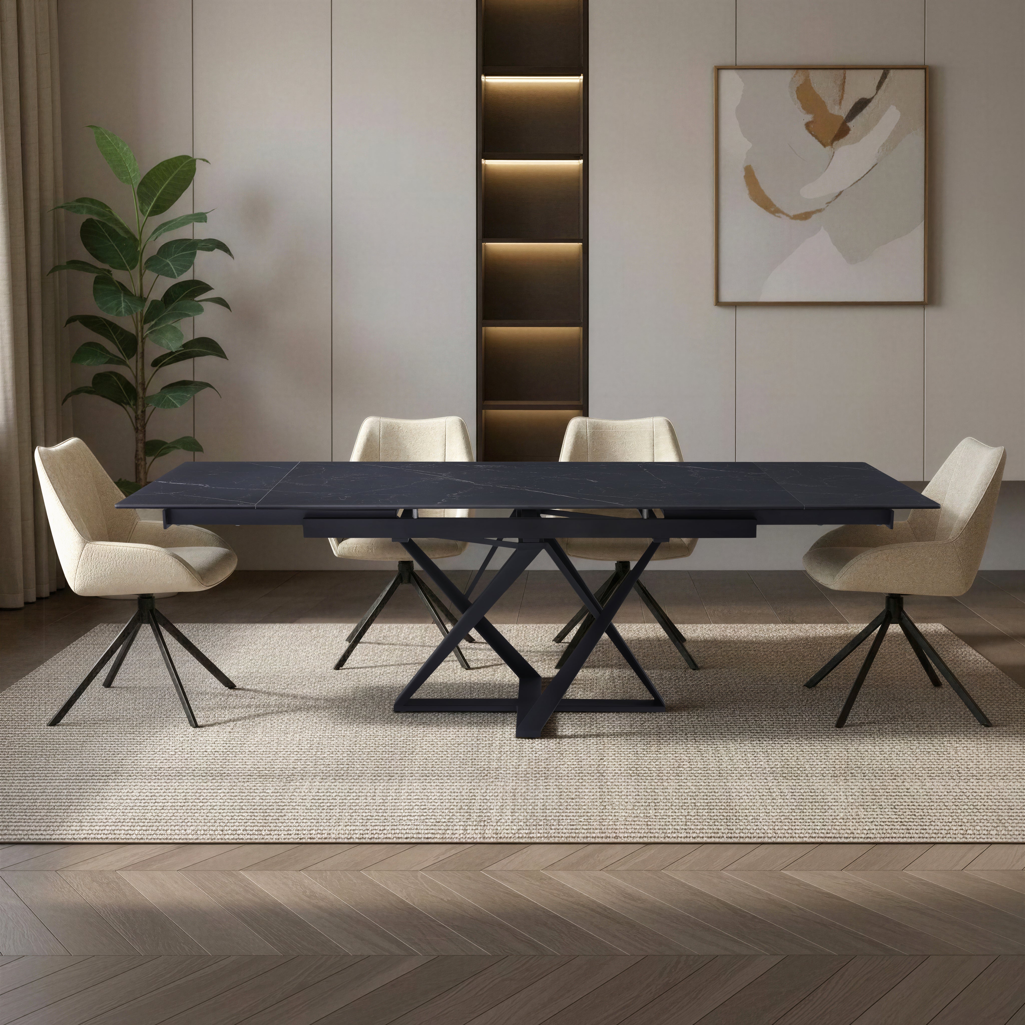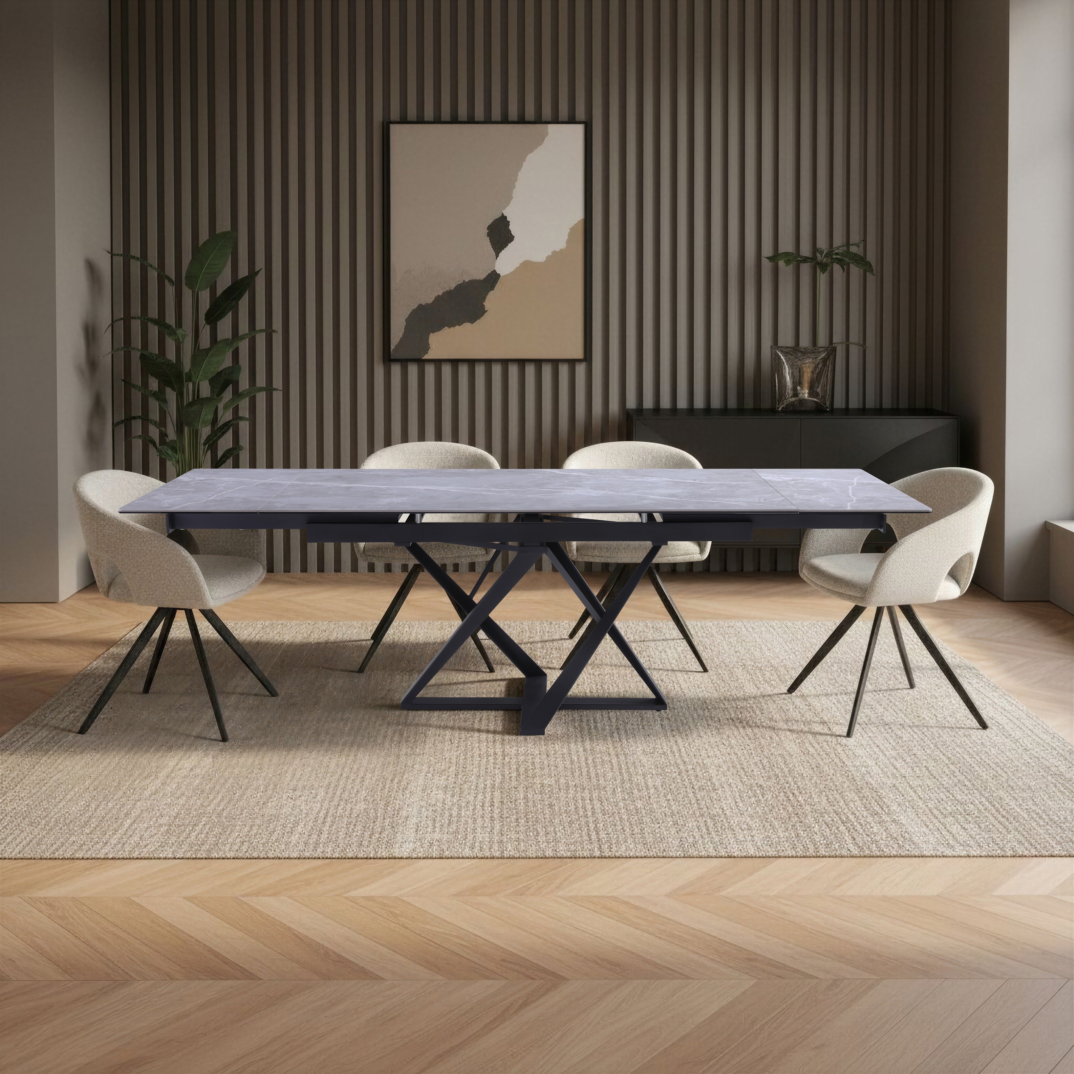 Rozsuwany prostokątny stół jadalny ceramiczny Portovenere łączy nowoczesny design z funkcjonalnością. Ceramiczny blat na hartowanym szkle o efekcie marmuru z unikalnym układem żył sprawia, że każdy egzemplarz jest wyjątkowy. Praktyczny stół do codziennego użytku w jadalni lub kuchni. Wygodna przestrzeń do wspólnych posiłków i spotkań. Ceramika odporna na zarysowania, wysoką temperaturę i plamy - łatwa w utrzymaniu czystości. Nowoczesna konstrukcja ceramiki na hartowanym szkle łączy piękno i wytrzymałość ceramiki z lekkością i bezpieczeństwem szkła hartowanego - stół jest znacznie lżejszy od tradycyjnych stołów ceramicznych, co ułatwia transport i przestawianie. Rozsuwany mechanizm pozwala rozłożyć stół z 160cm do 240cm. Wystarczy przetrzeć wilgotną szmatką - ceramiczny blat zachowa piękny wygląd na lata. Solidna stalowa konstrukcja zapewnia stabilność i długowieczność na lata użytkowania.