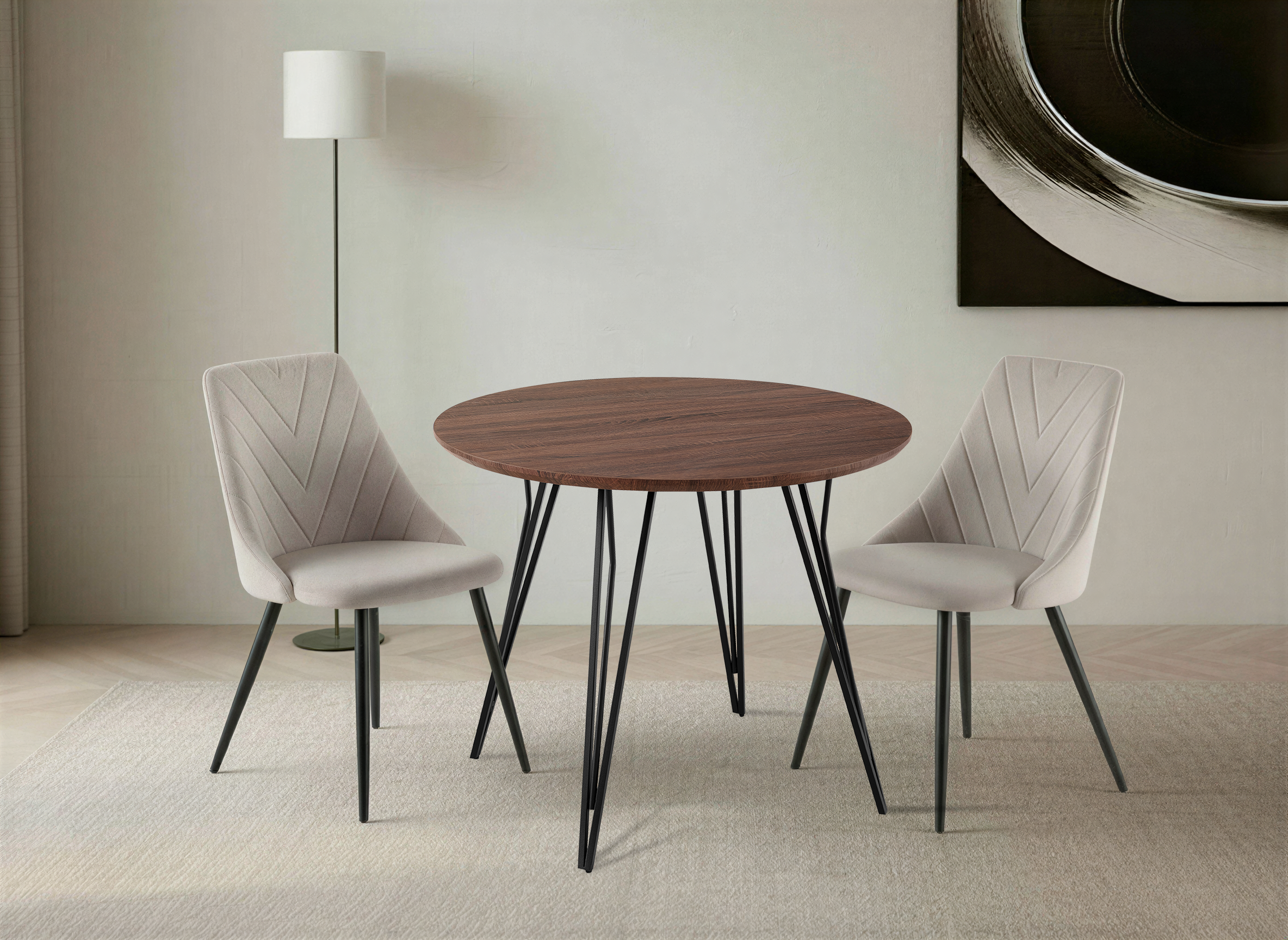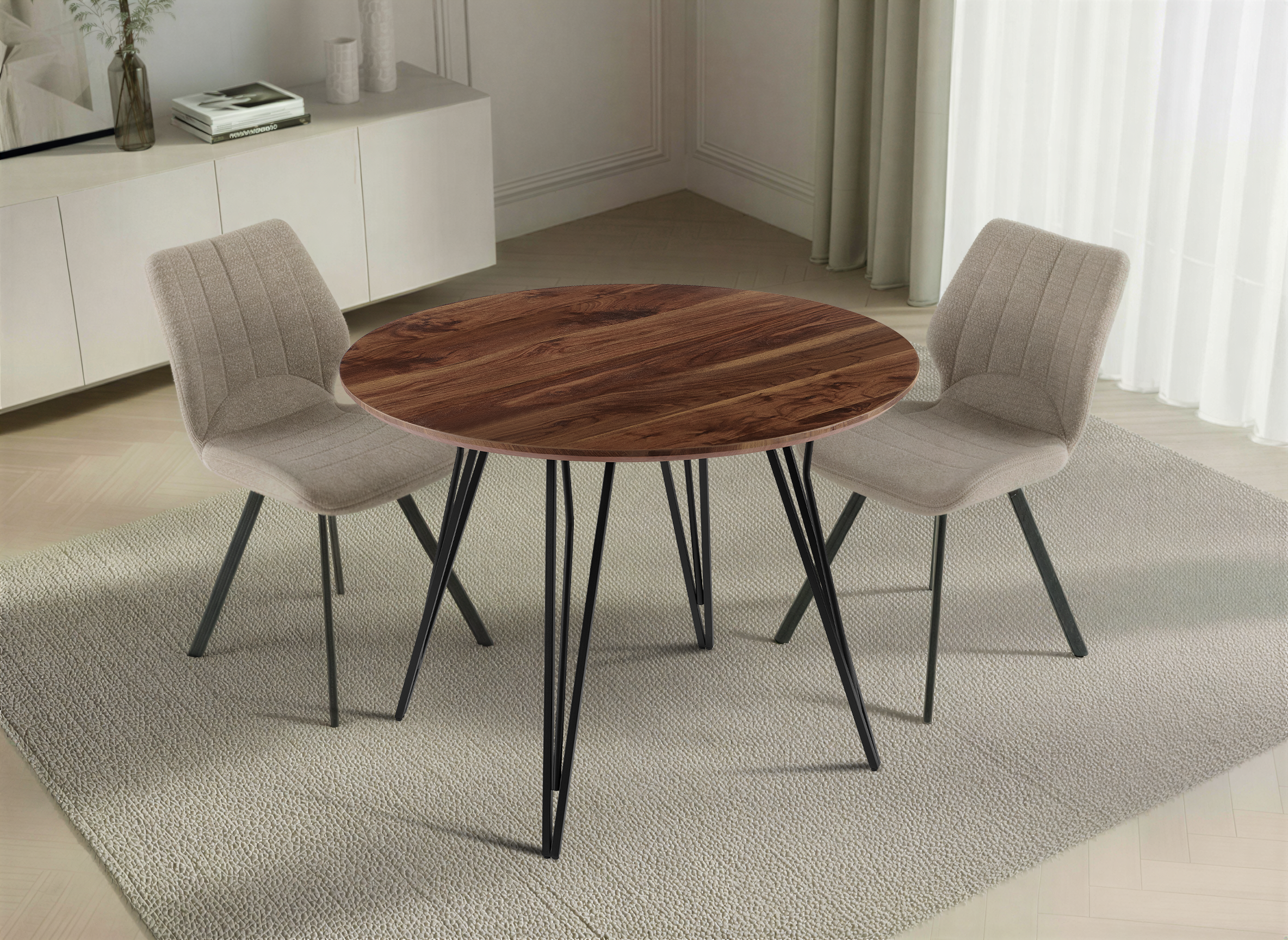 Stół Okrągły 100x100 w Kolorze Orzech Brązowy na Nogach Metalowych – Idealny do Jadalni – VENICE