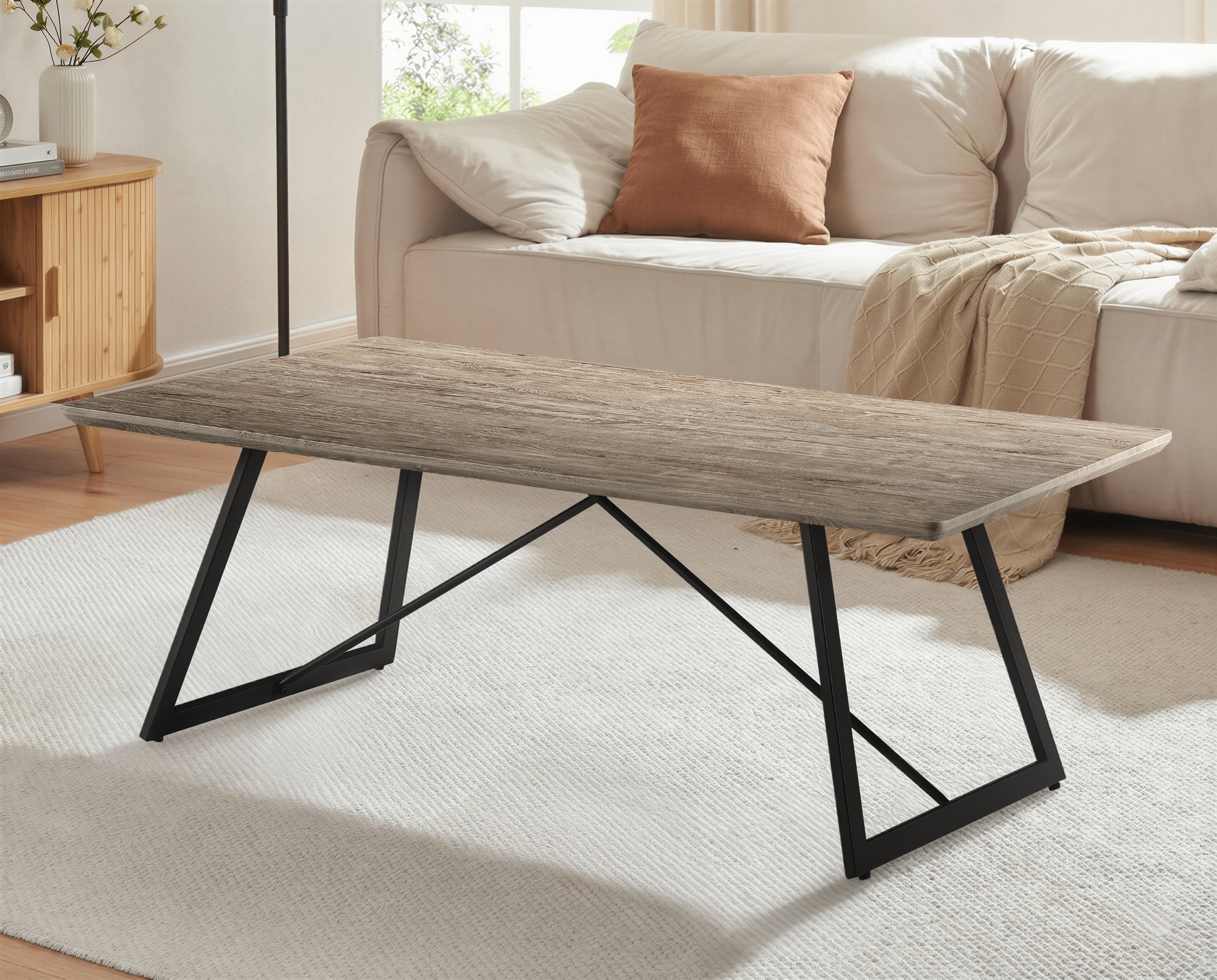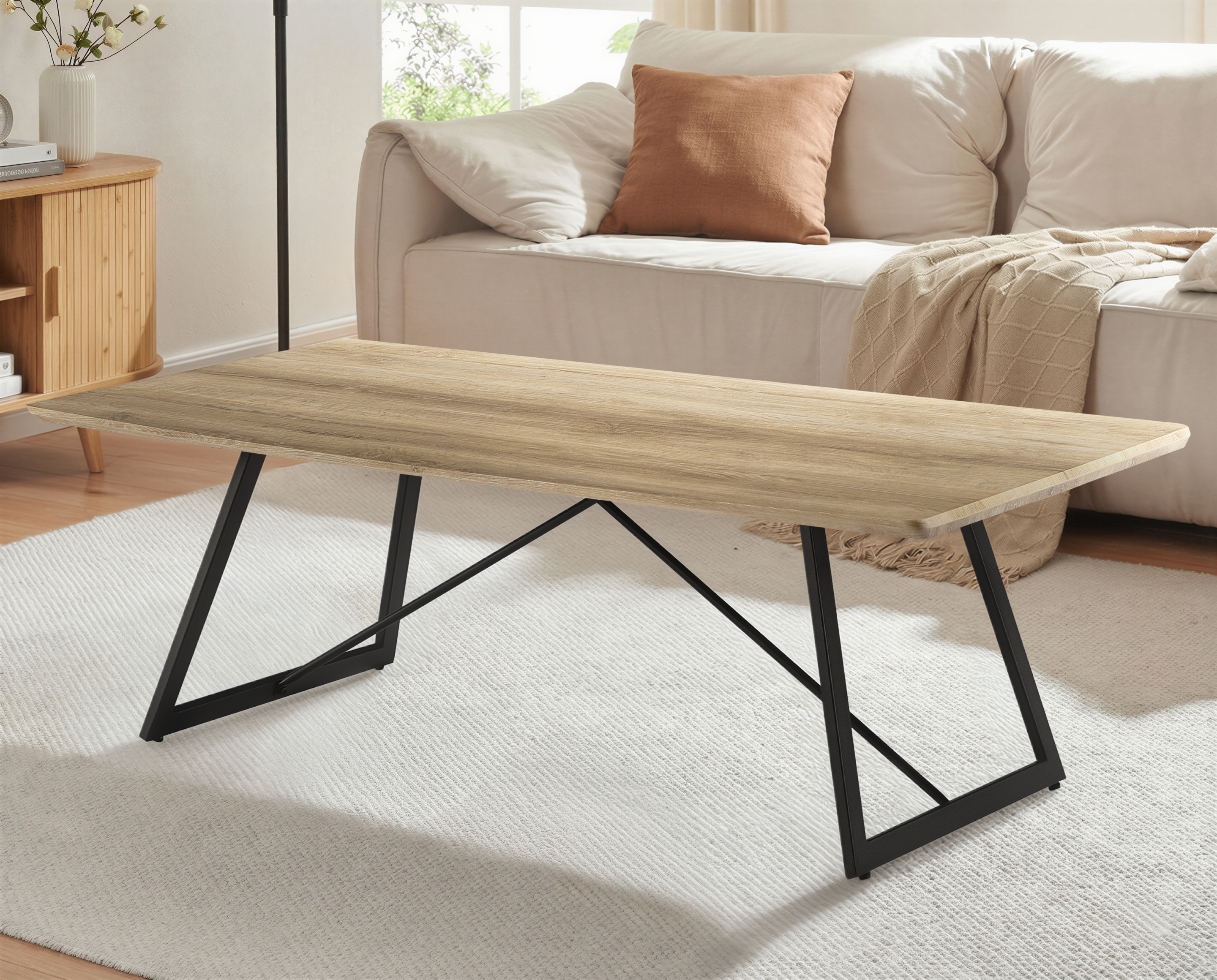 Dzięki kompaktowym wymiarom 110×60 cm stolik doskonale znajdzie miejsce w salonie, strefie wypoczynkowej, gabinecie lub pokoju dziennym. Może służyć jako stolik kawowy, pomocniczy lub dekoracyjny — idealny do ekspozycji roślin, książek czy akcentów industrialnych.