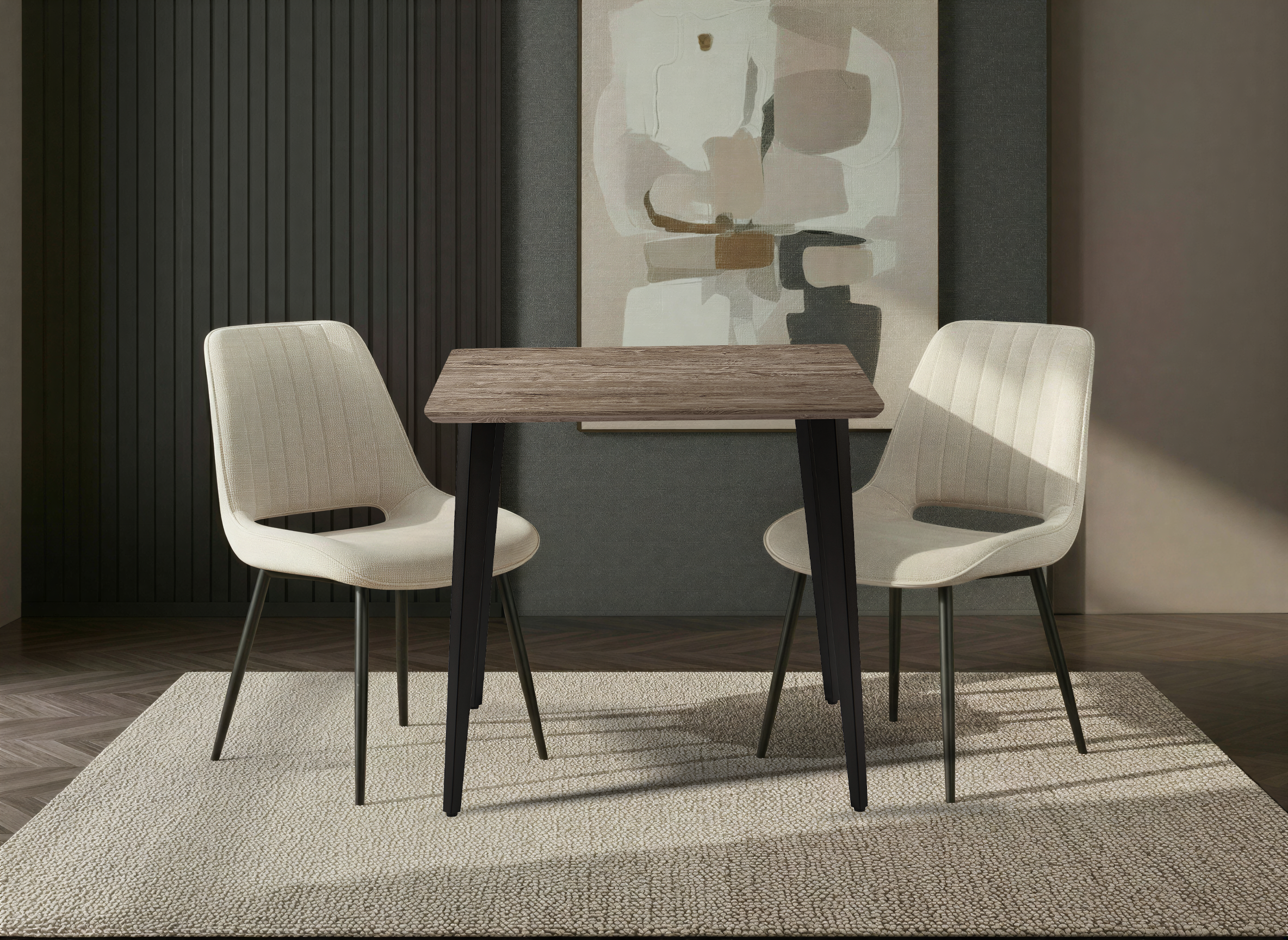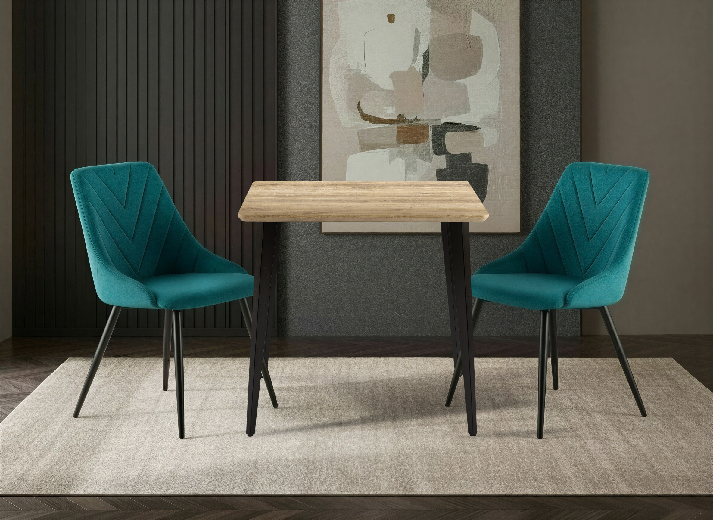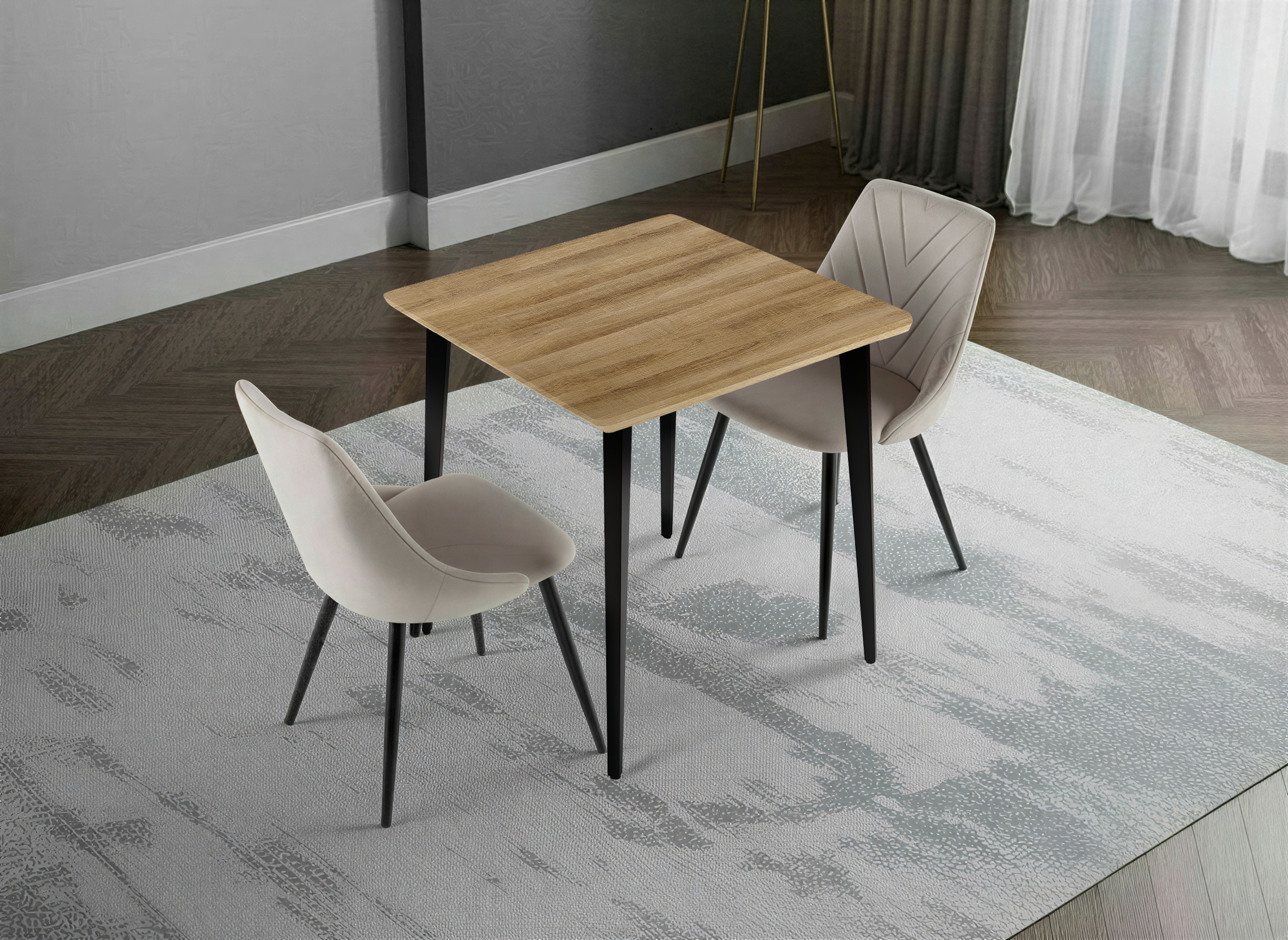 Ten kwadratowy stół 80×80 cm to idealny wybór do nowoczesnych i skandynawskich wnętrz. Blat w kolorze Dąb Jasny rozświetla przestrzeń, podkreślając naturalną strukturę drewna. Matowa, gładka powierzchnia blatu jest odporna na codzienne użytkowanie i łatwa w czyszczeniu.