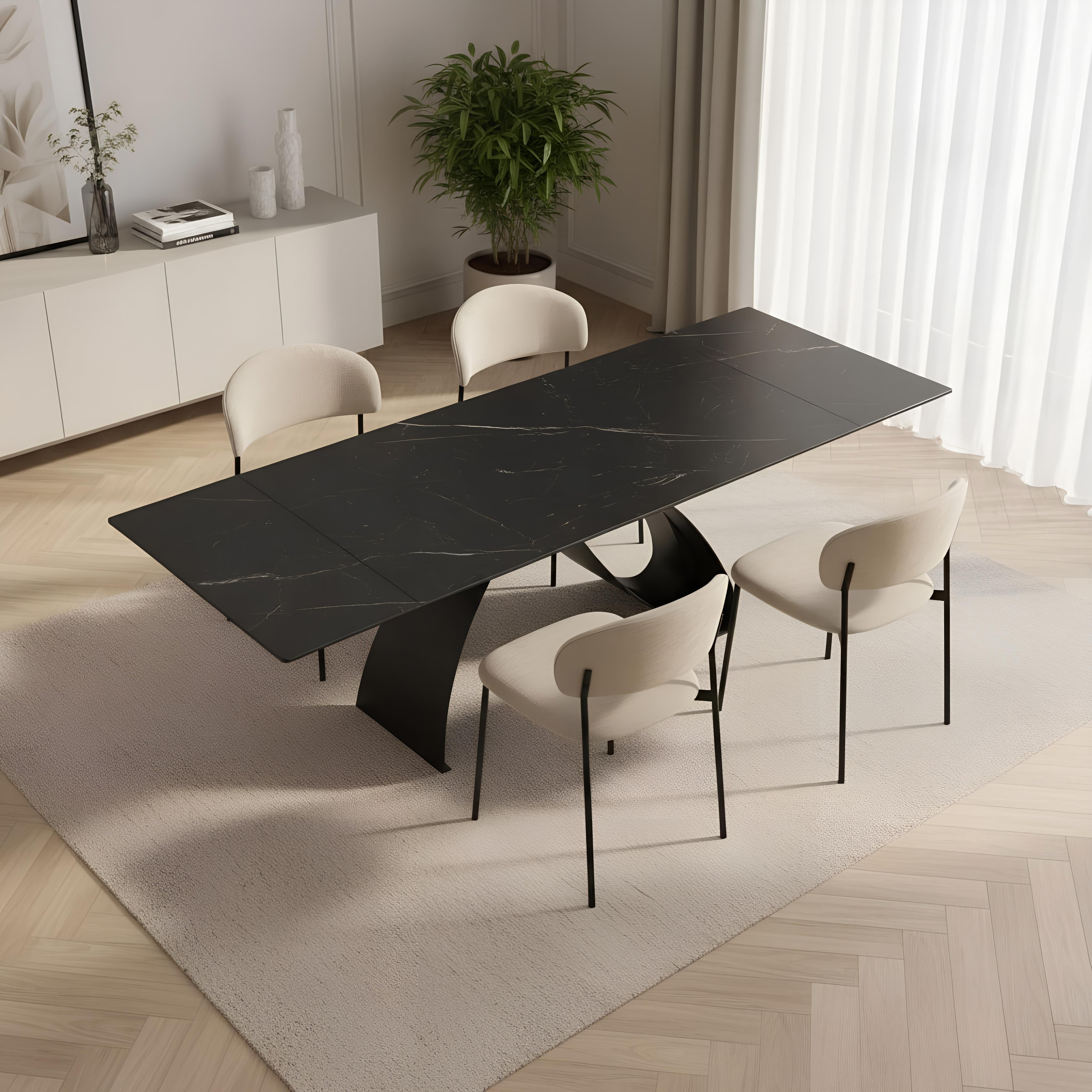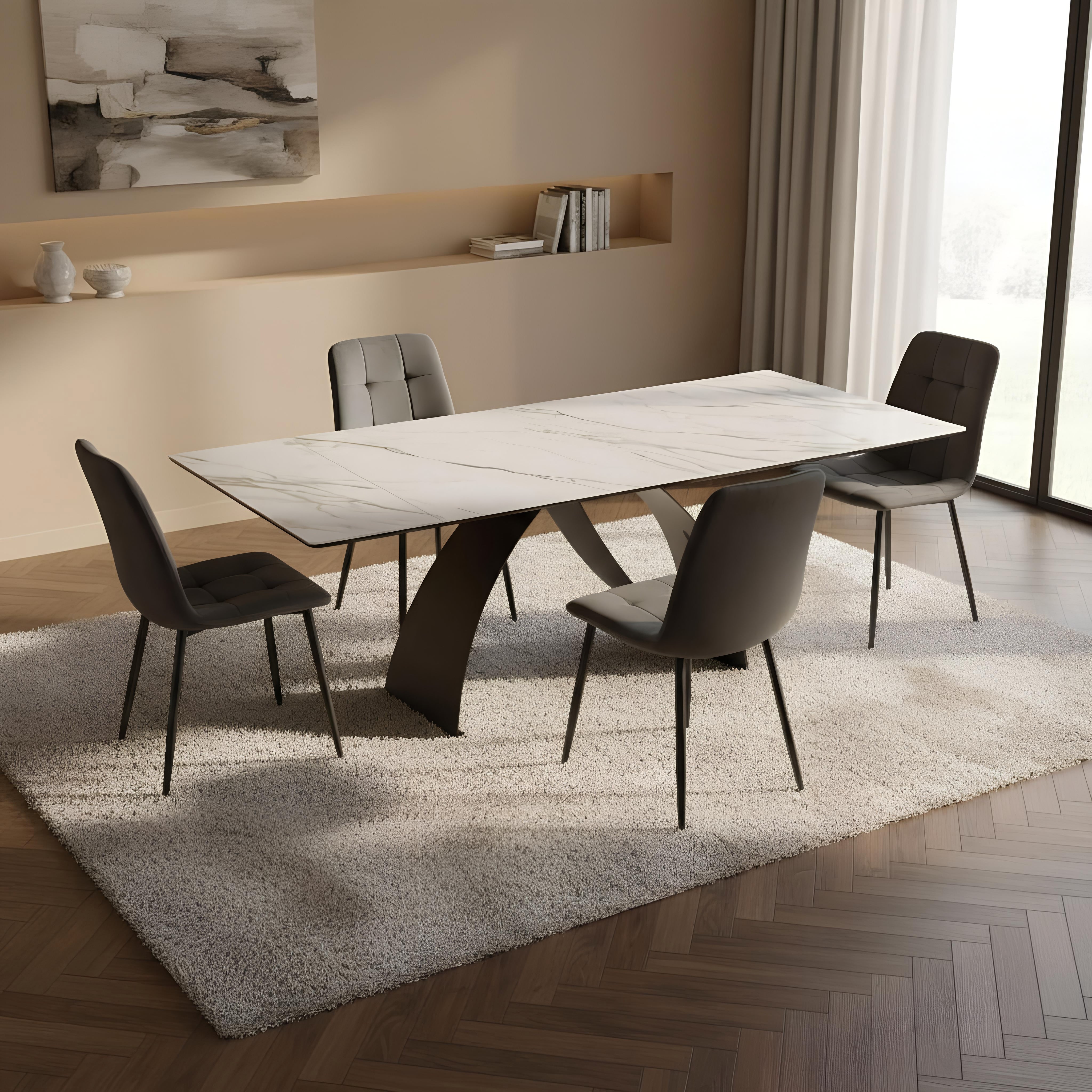 Rozsuwany prostokątny stół jadalny ceramiczny Camogli łączy nowoczesny design z funkcjonalnością. Ceramiczny blat na hartowanym szkle o efekcie marmuru z unikalnym układem żył sprawia, że każdy egzemplarz jest wyjątkowy. Praktyczny stół do codziennego użytku w jadalni lub kuchni. Wygodna przestrzeń do wspólnych posiłków i spotkań. Ceramika odporna na zarysowania, wysoką temperaturę i plamy - łatwa w utrzymaniu czystości. Nowoczesna konstrukcja ceramiki na hartowanym szkle łączy piękno i wytrzymałość ceramiki z lekkością i bezpieczeństwem szkła hartowanego - stół jest znacznie lżejszy od tradycyjnych stołów ceramicznych, co ułatwia transport i przestawianie. Rozsuwany mechanizm pozwala rozłożyć stół z 160cm do 240cm. Wystarczy przetrzeć wilgotną szmatką - ceramiczny blat zachowa piękny wygląd na lata. Solidna stalowa konstrukcja zapewnia stabilność i długowieczność na lata użytkowania.