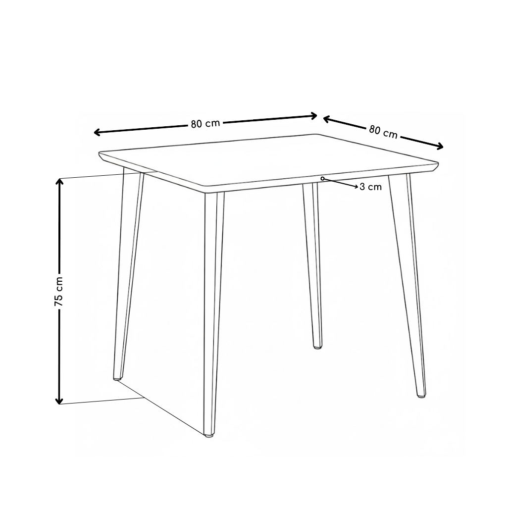 Wymiary 80×80 cm sprawiają, że stół idealnie nadaje się dla 2–4 osób — świetnie pasuje do codziennych posiłków, pracy lub nauki, szczególnie w bardziej kompaktowych wnętrzach. To praktyczny i łatwy do wkomponowania element wyposażenia, który podkreśli przytulny klimat pomieszczenia.