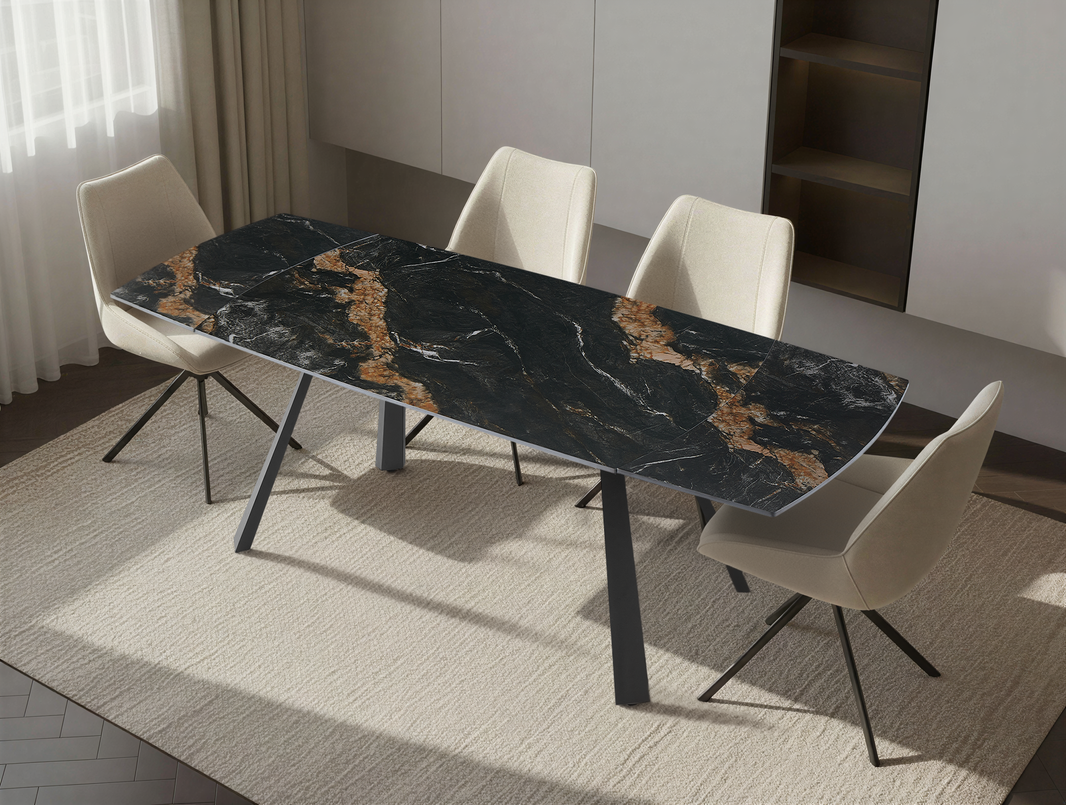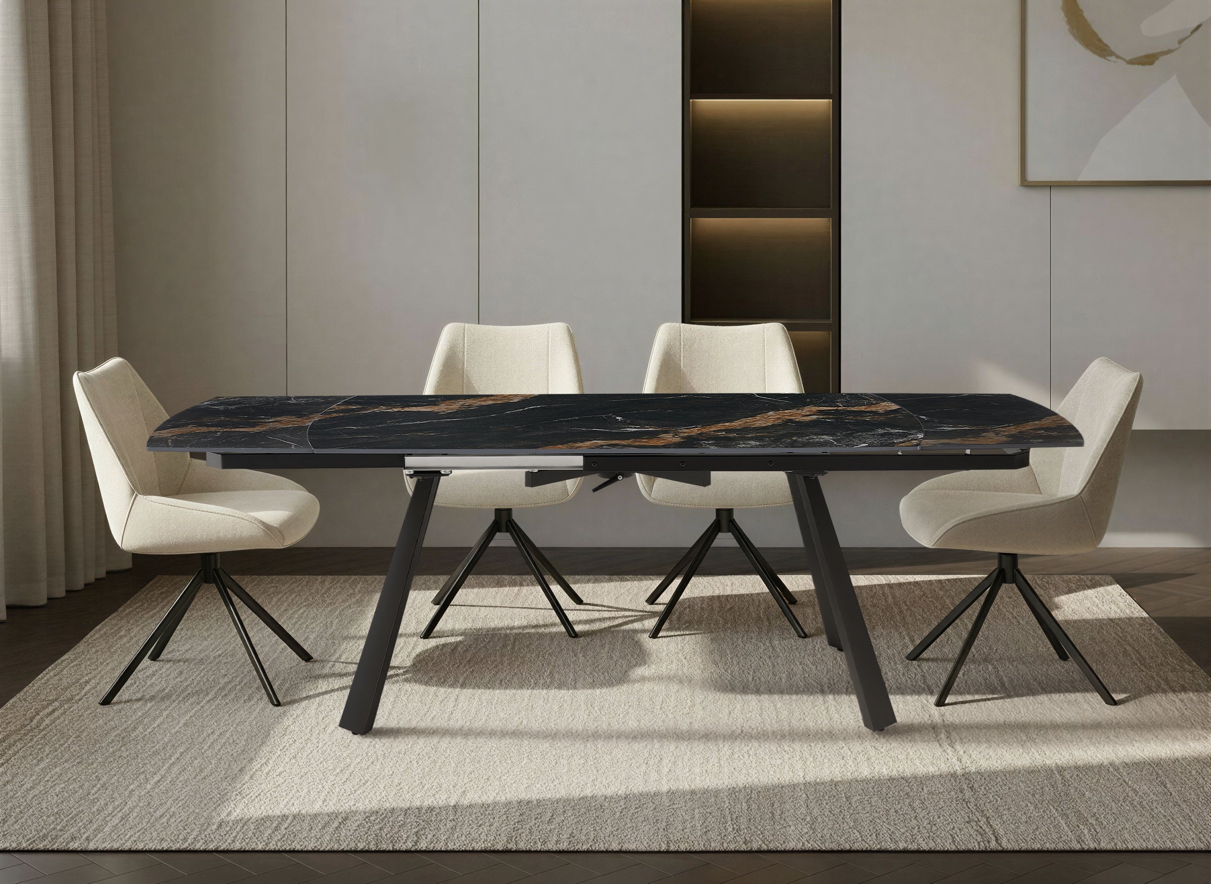 Nowoczesny stół ceramiczny Light do jadalni – rozkładany, w czarnym marmurze