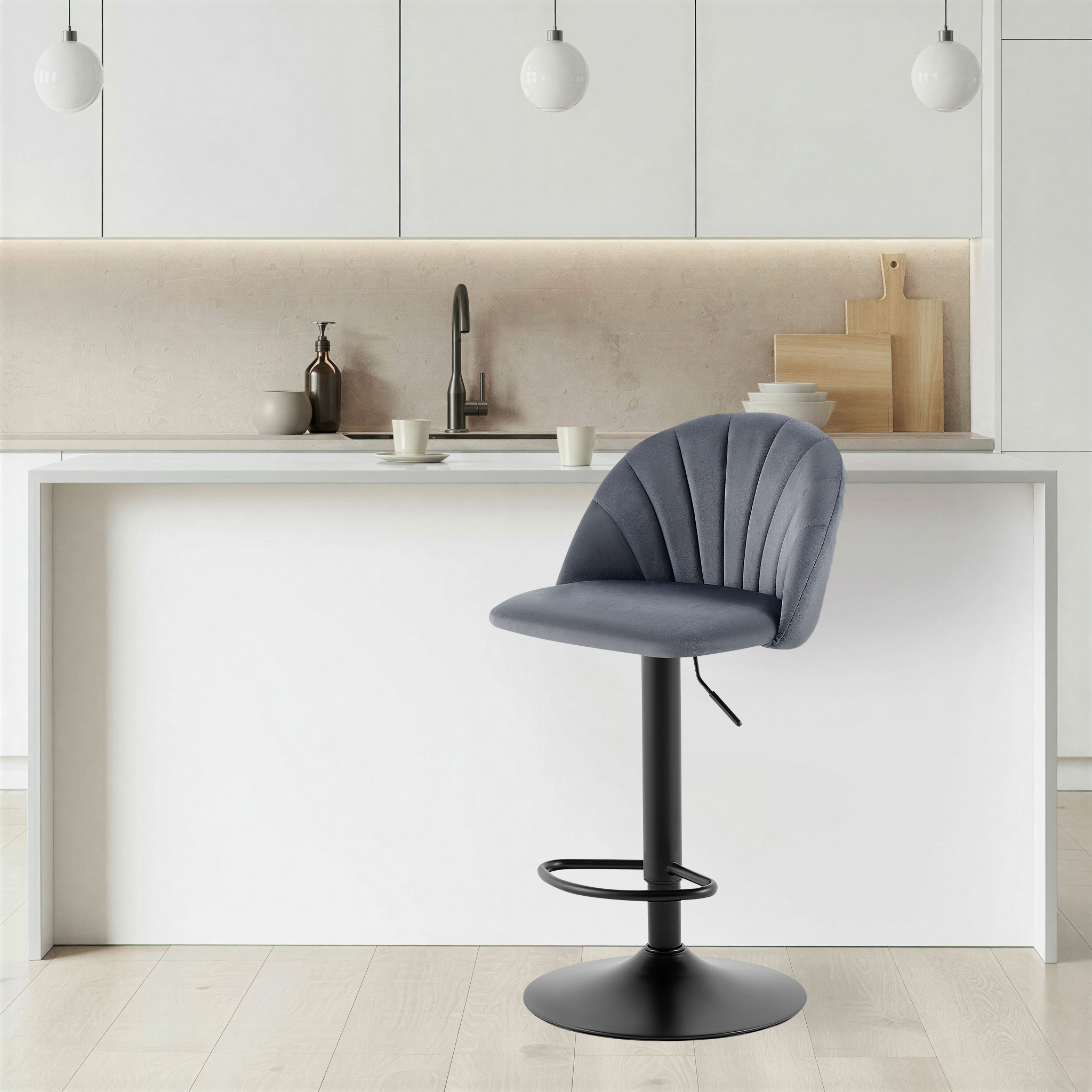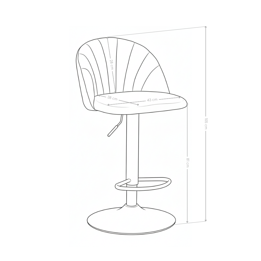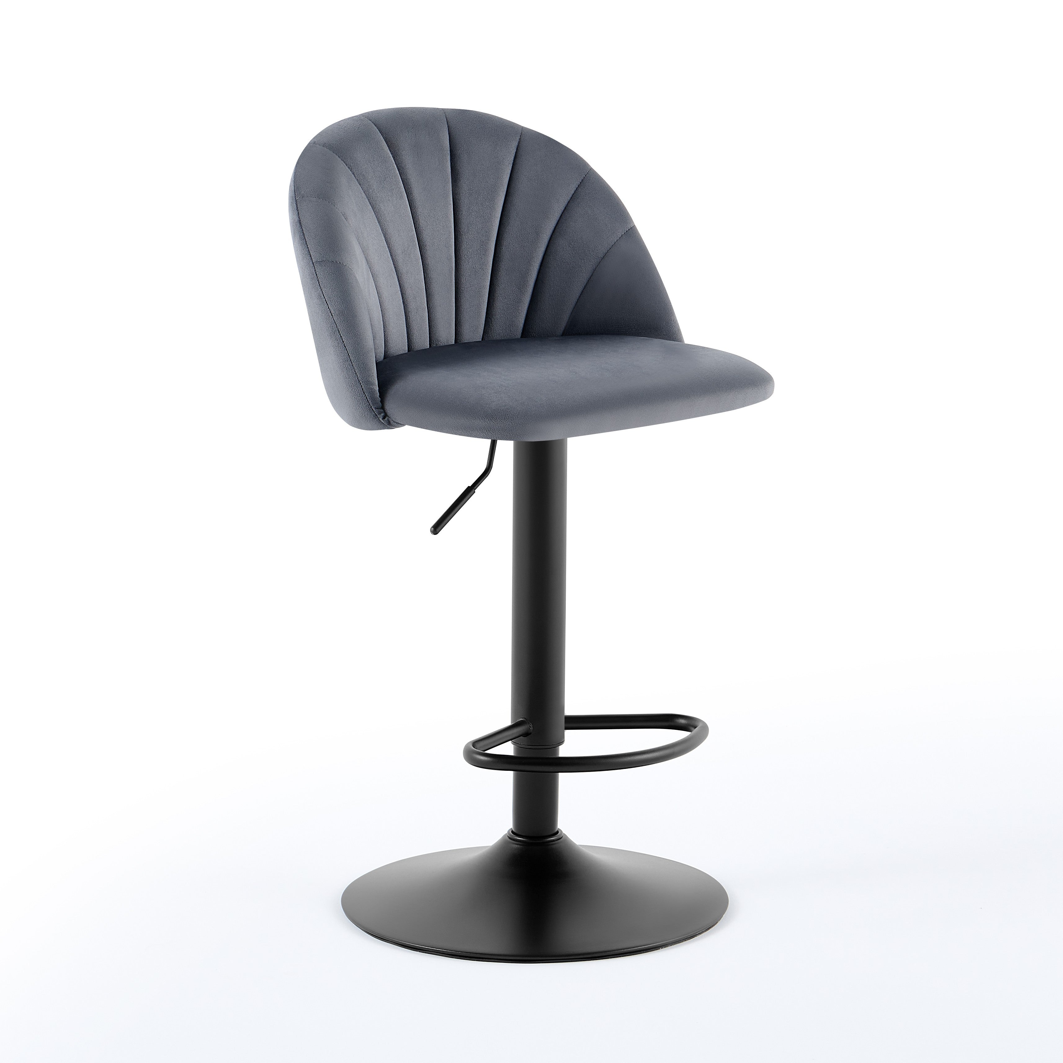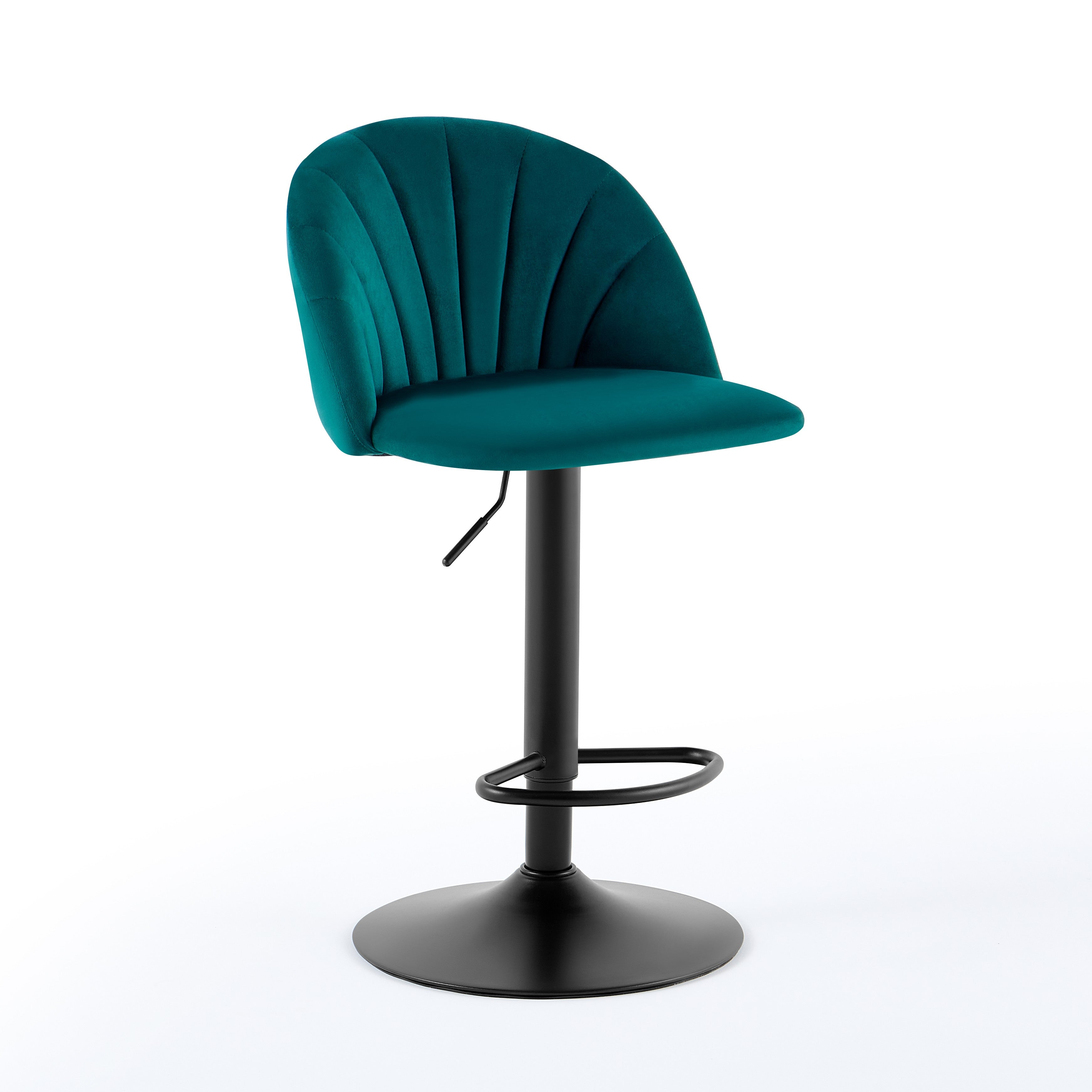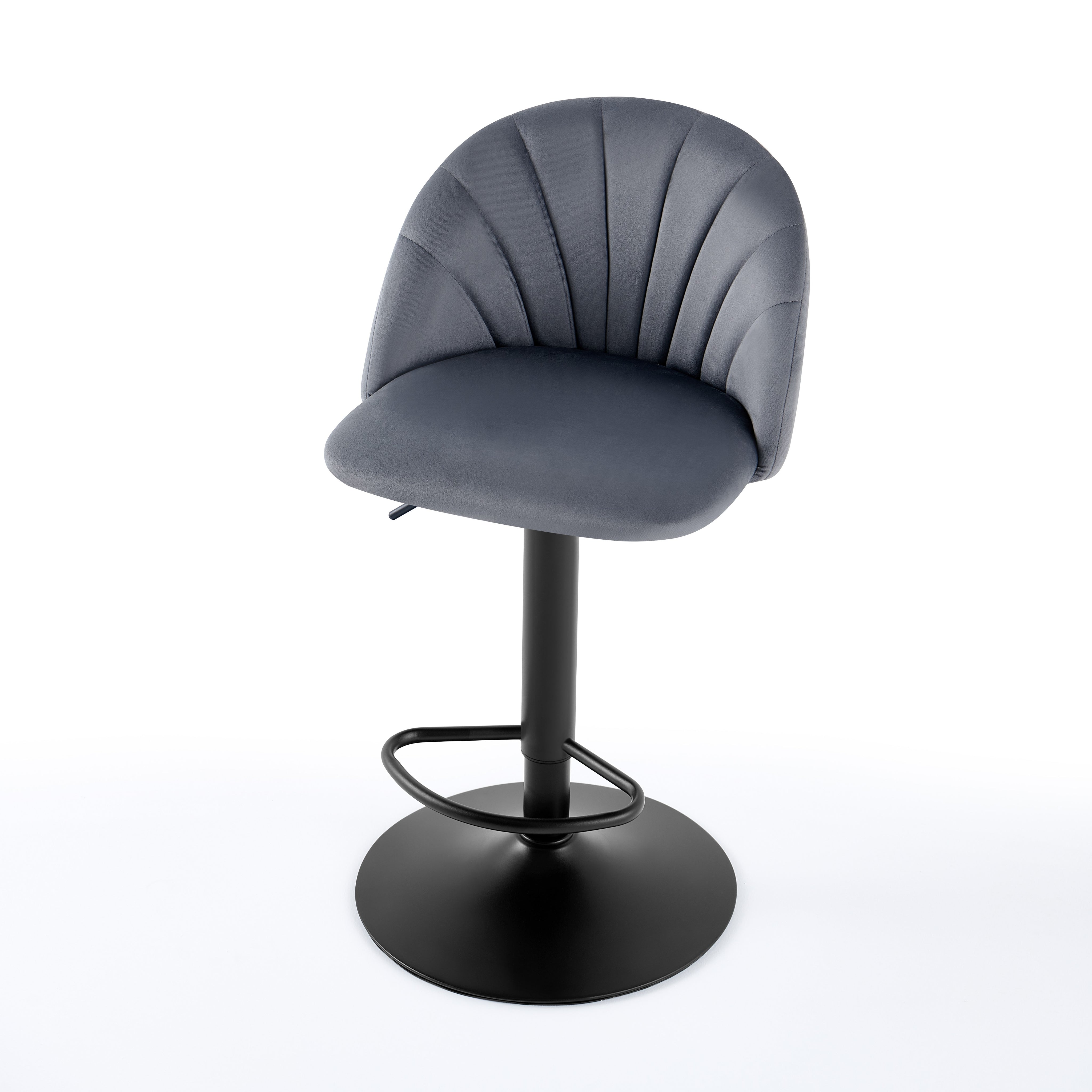 - Krzesło Barowe Obrotowe Welurowe Regulowane Stylowe Nogi Stalowe Quasar