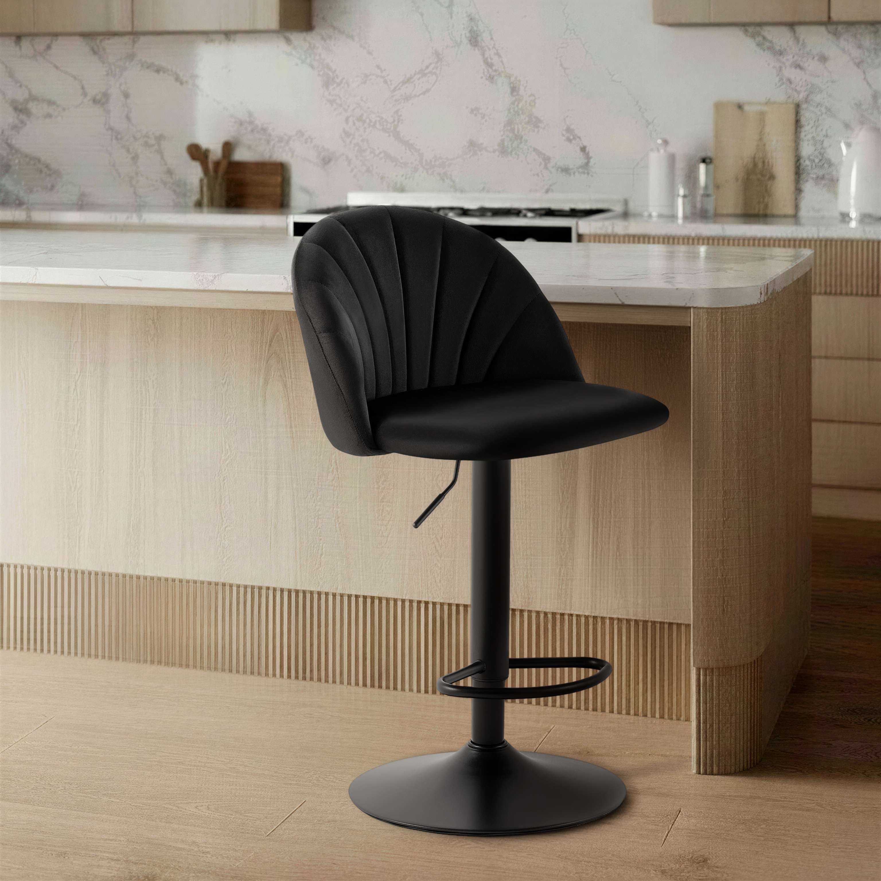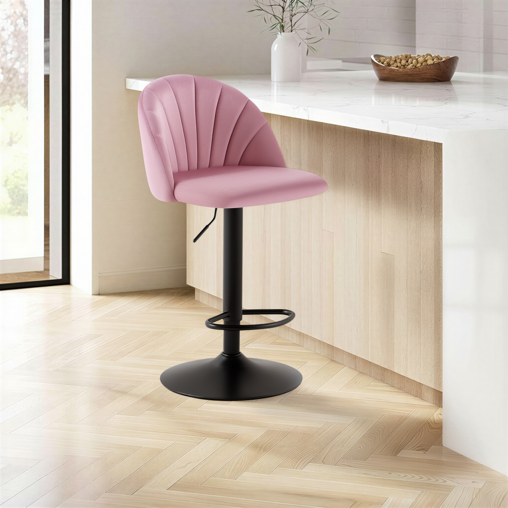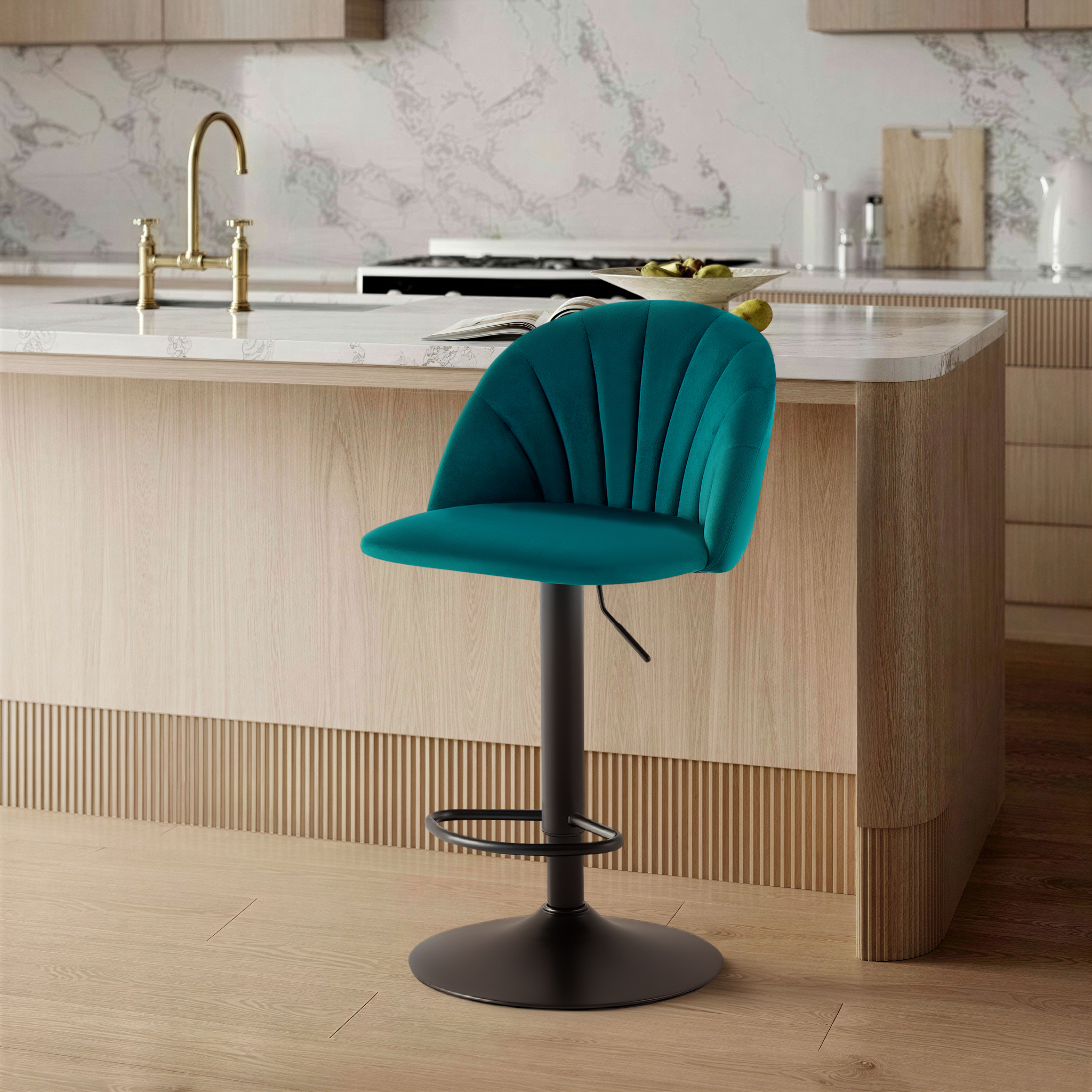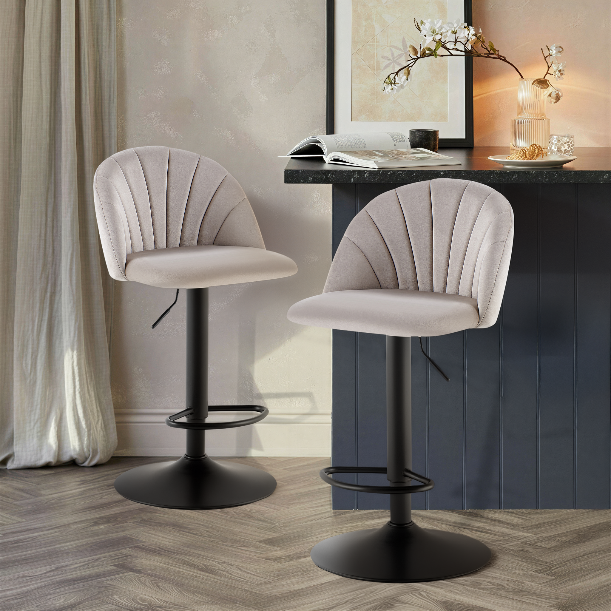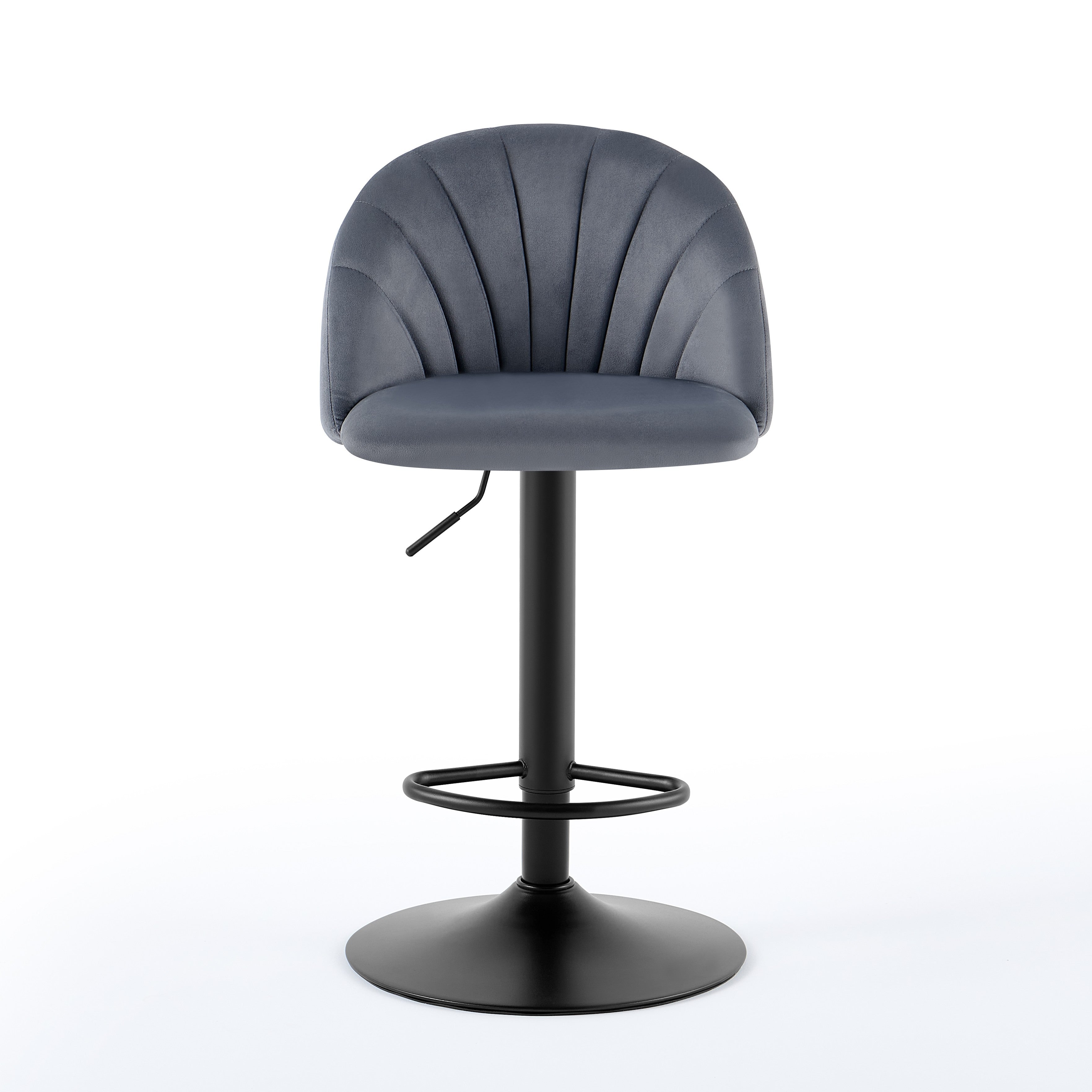 - Krzesło Barowe Obrotowe Welurowe Regulowane Stylowe Nogi Stalowe Quasar