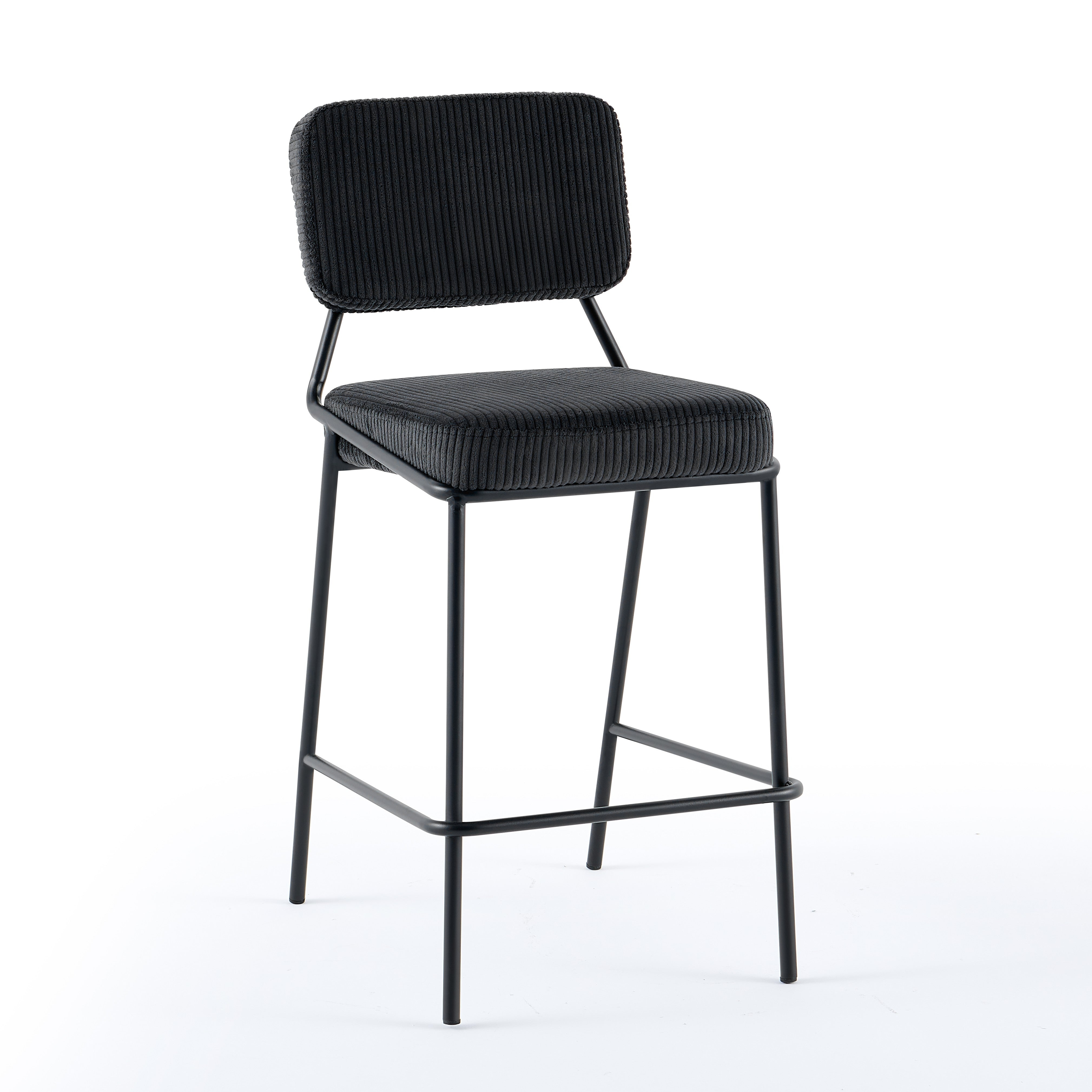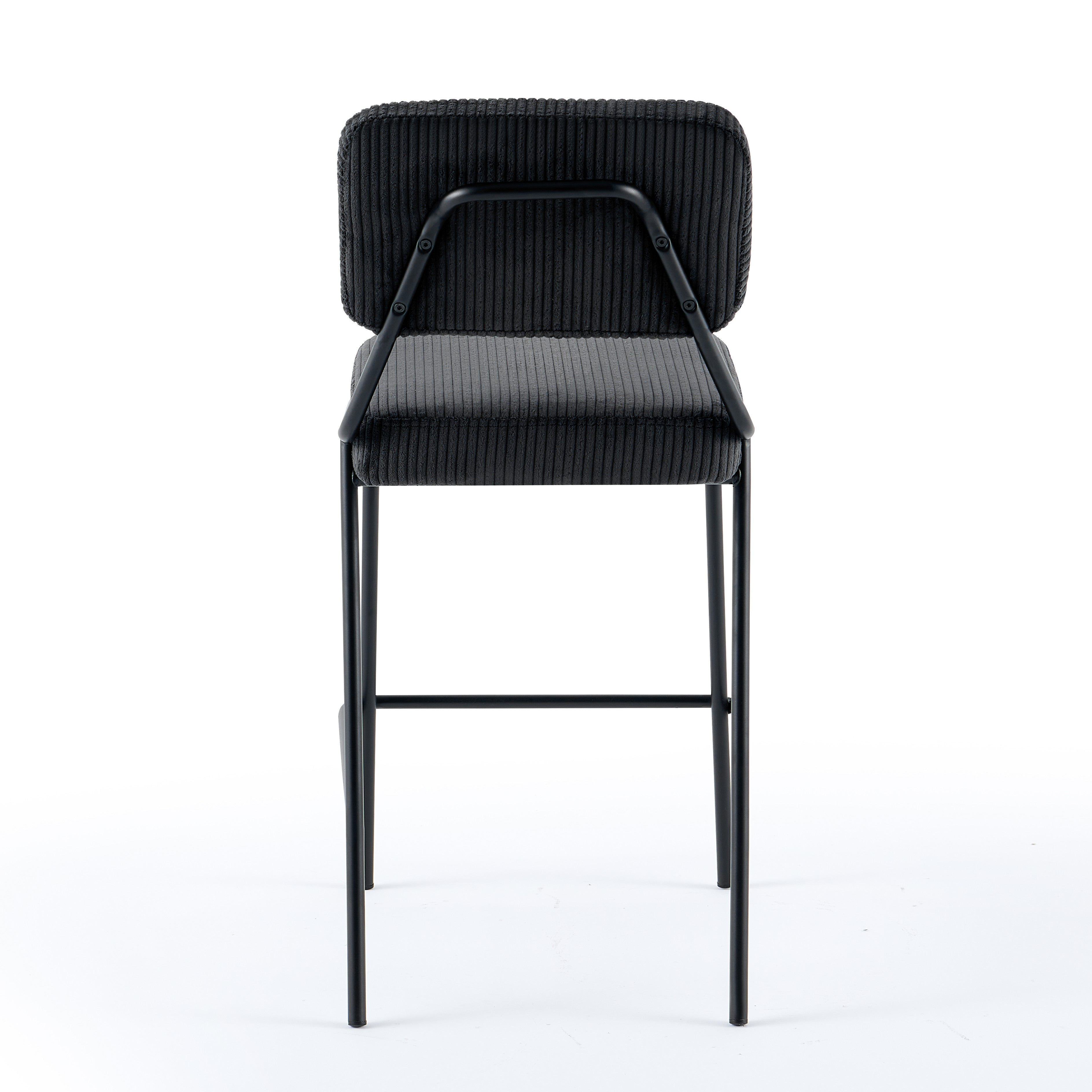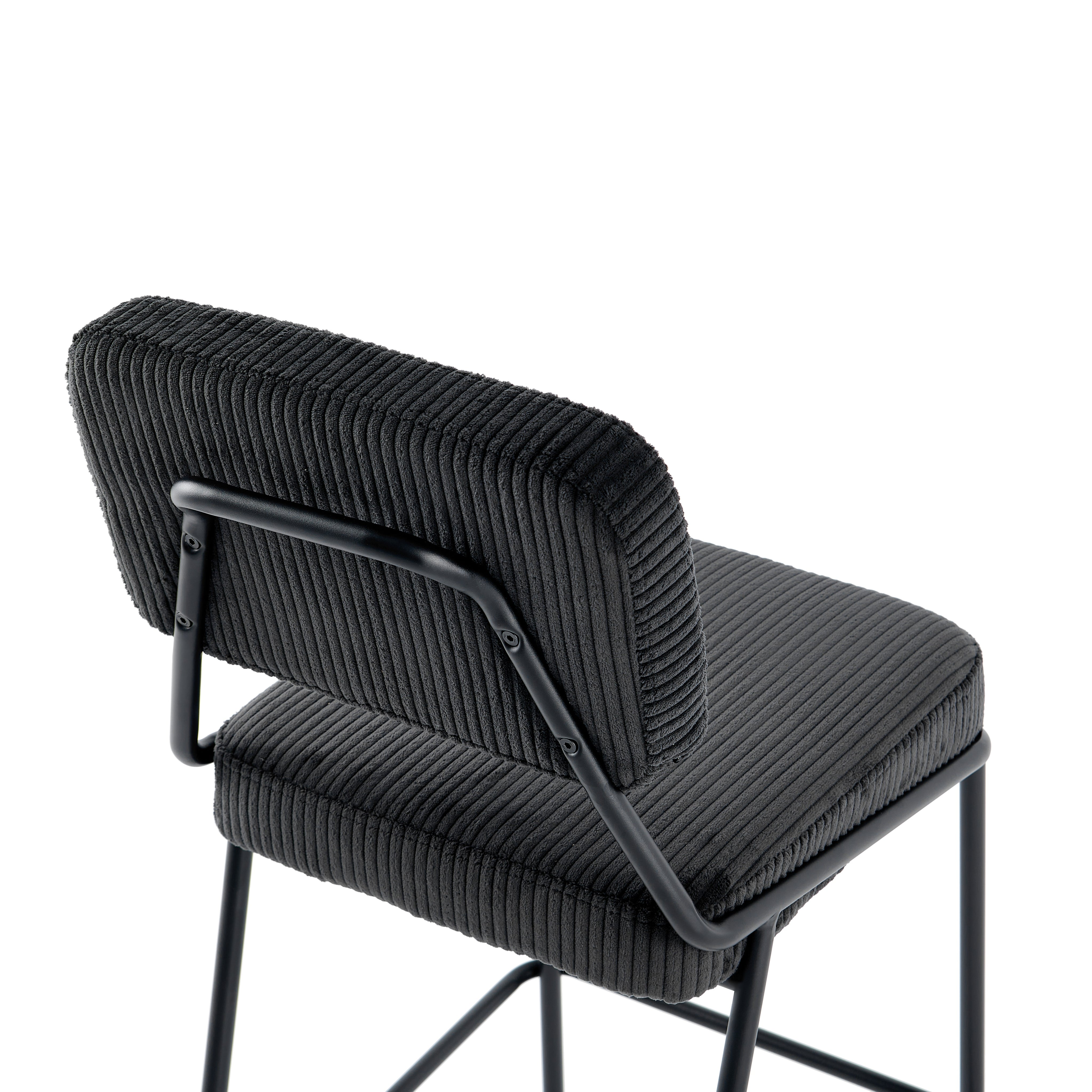 - Krzesło Barowe Welurowe Prążkowane Loft Nogi Stalowe Czarne Plush Noir