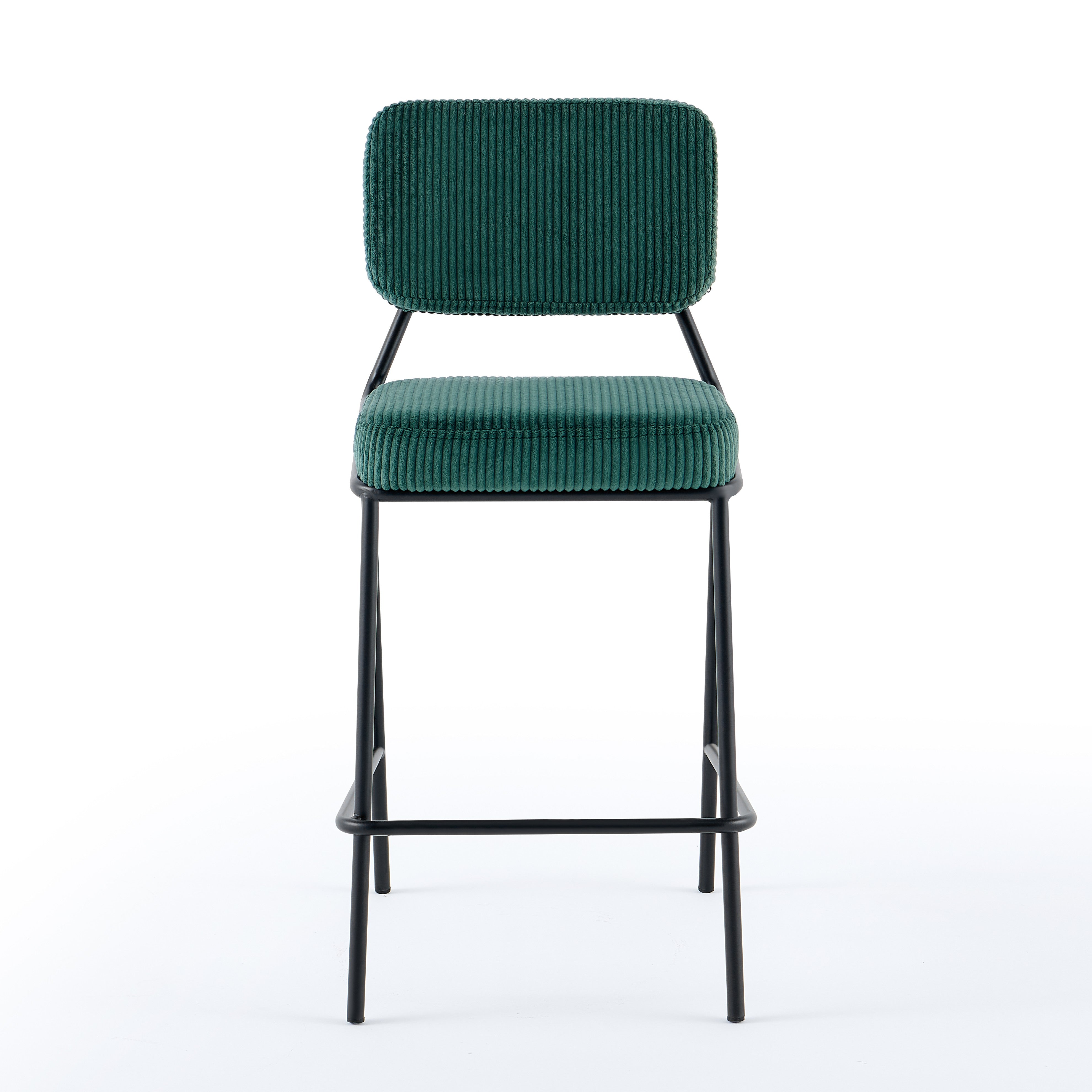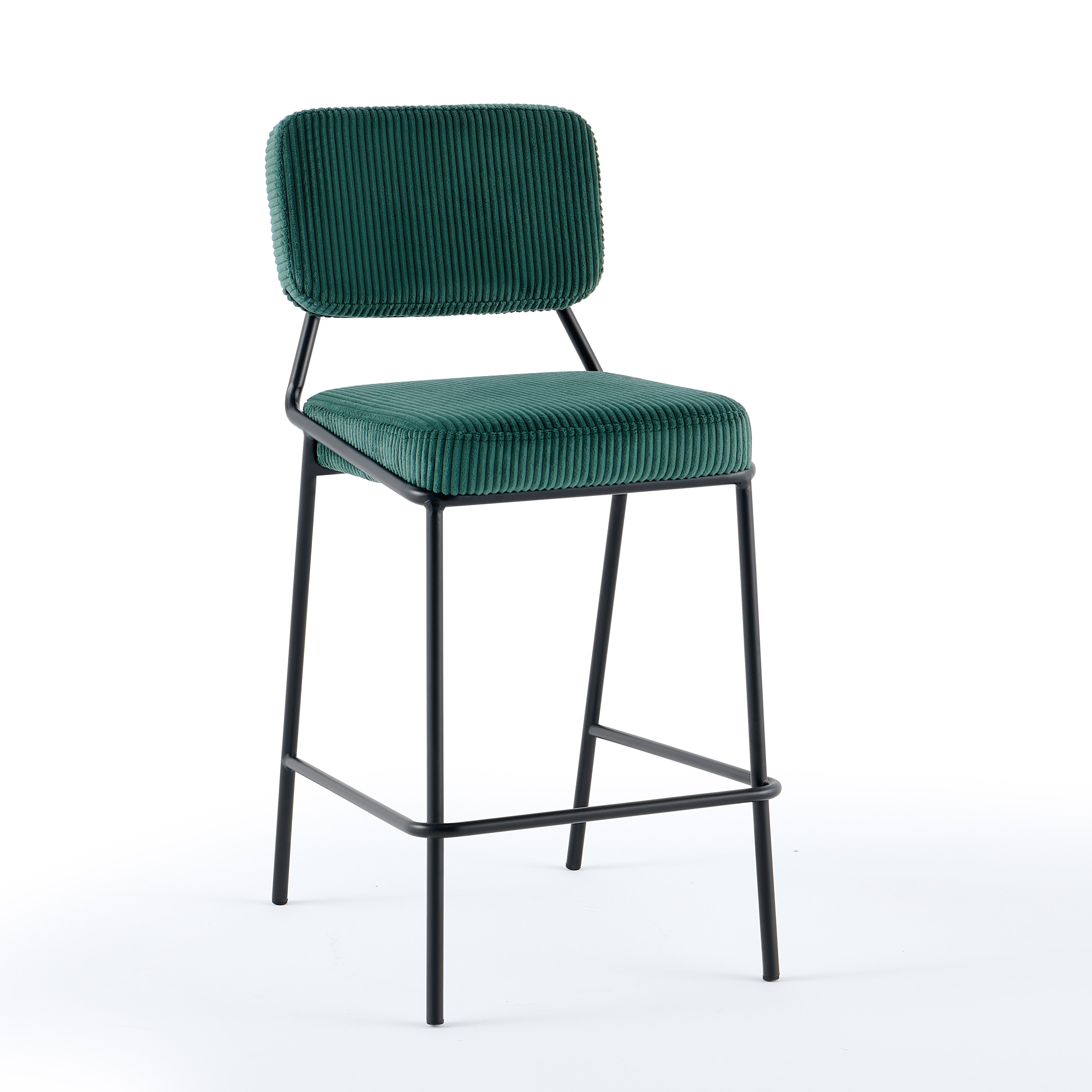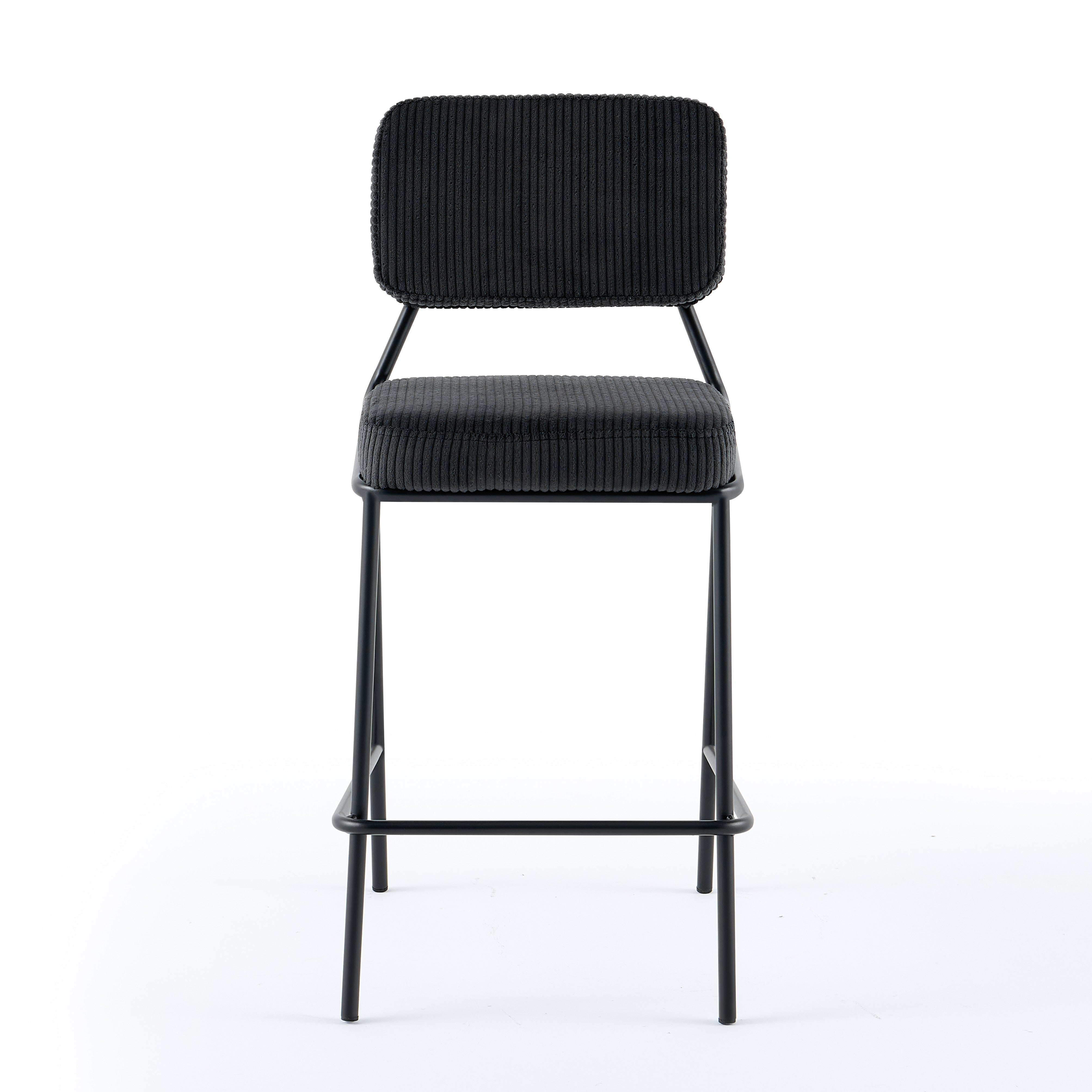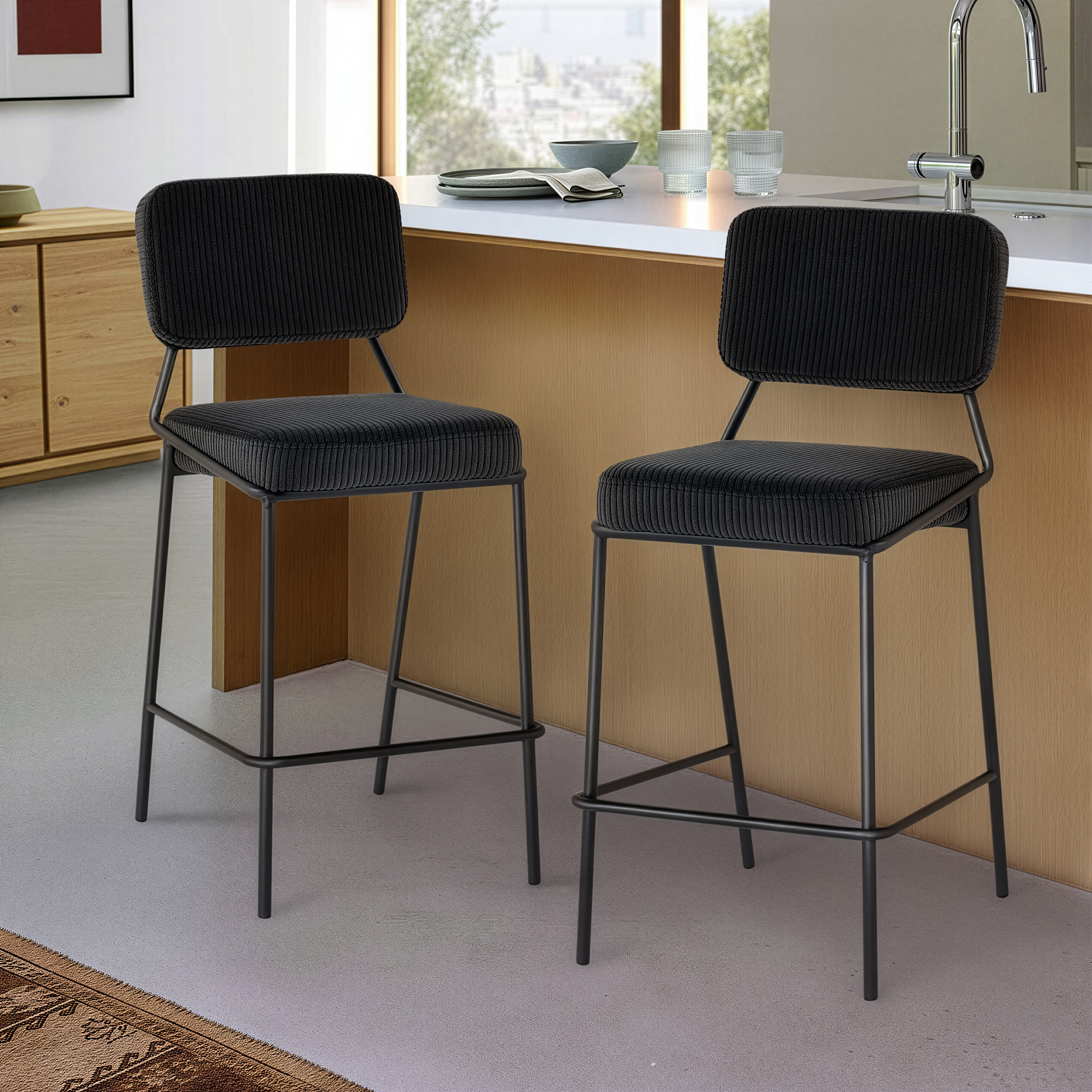 - Krzesło Barowe Welurowe Prążkowane Loft Nogi Stalowe Czarne Plush Noir