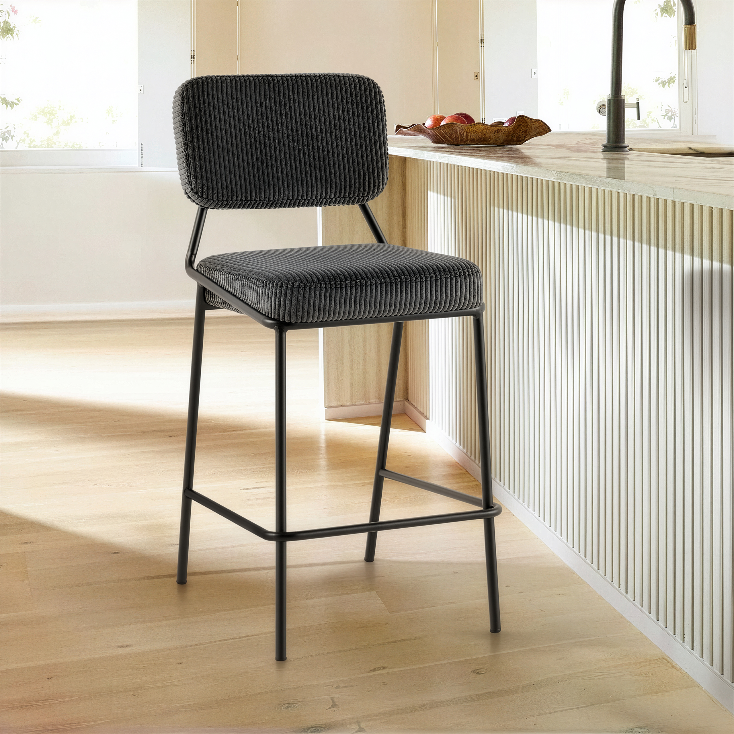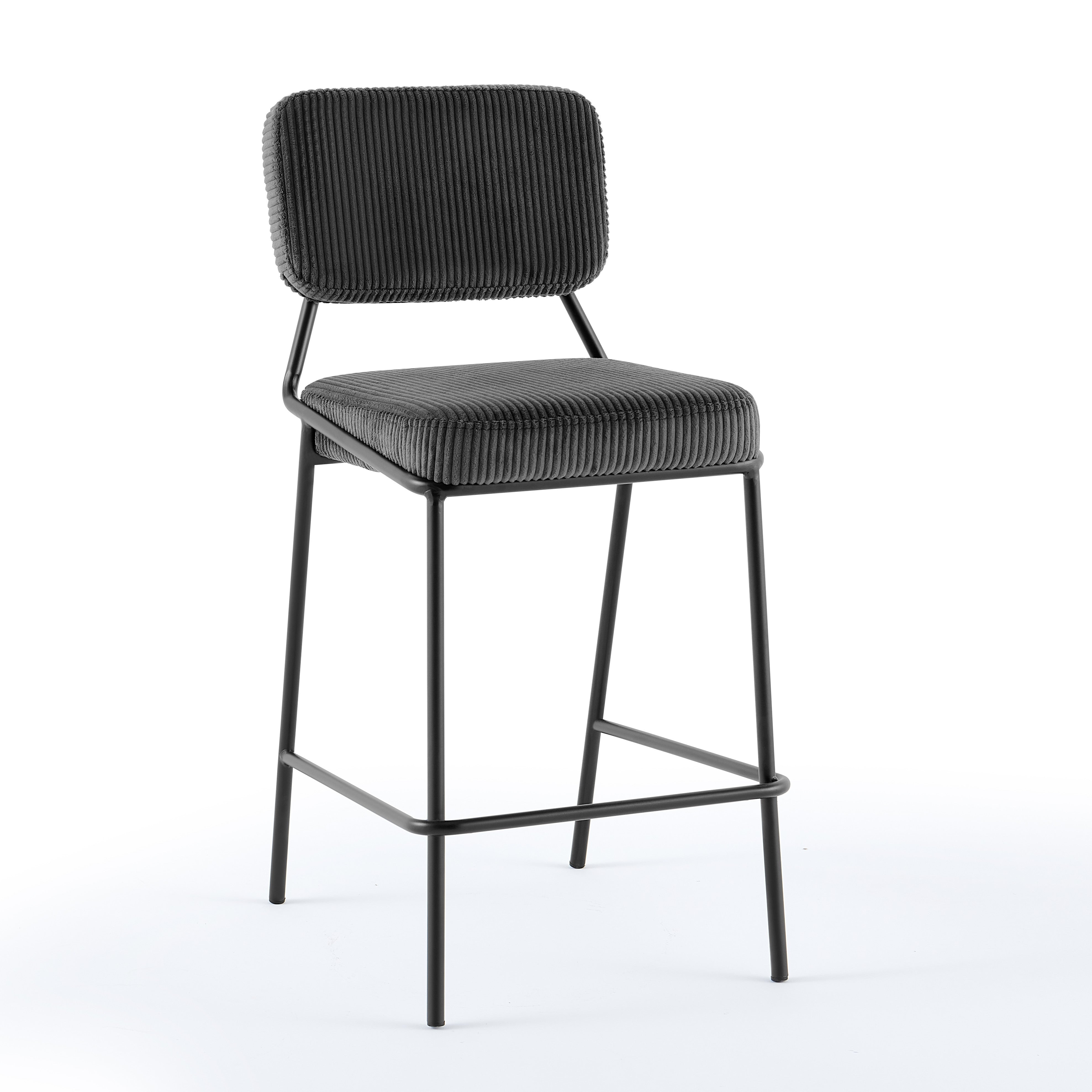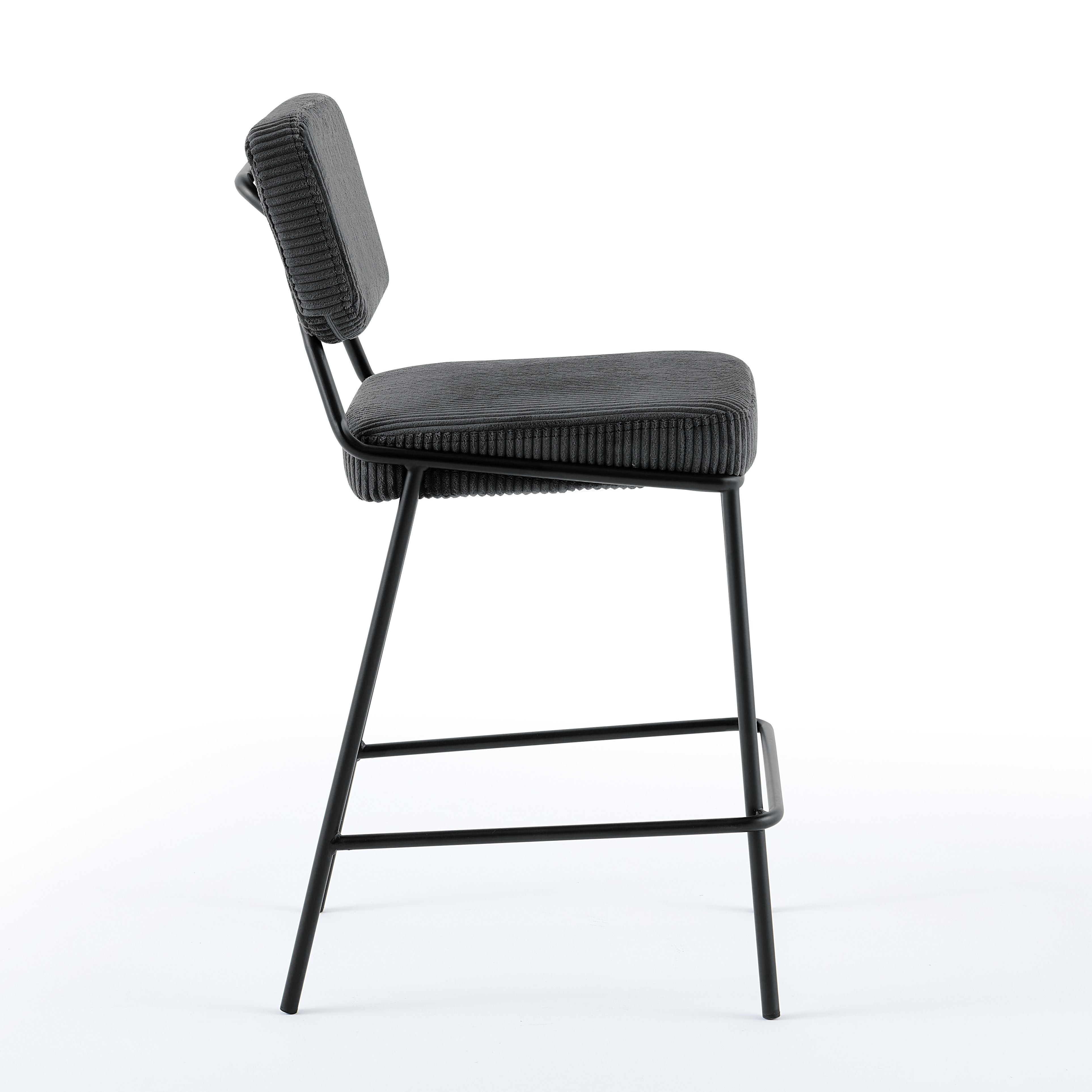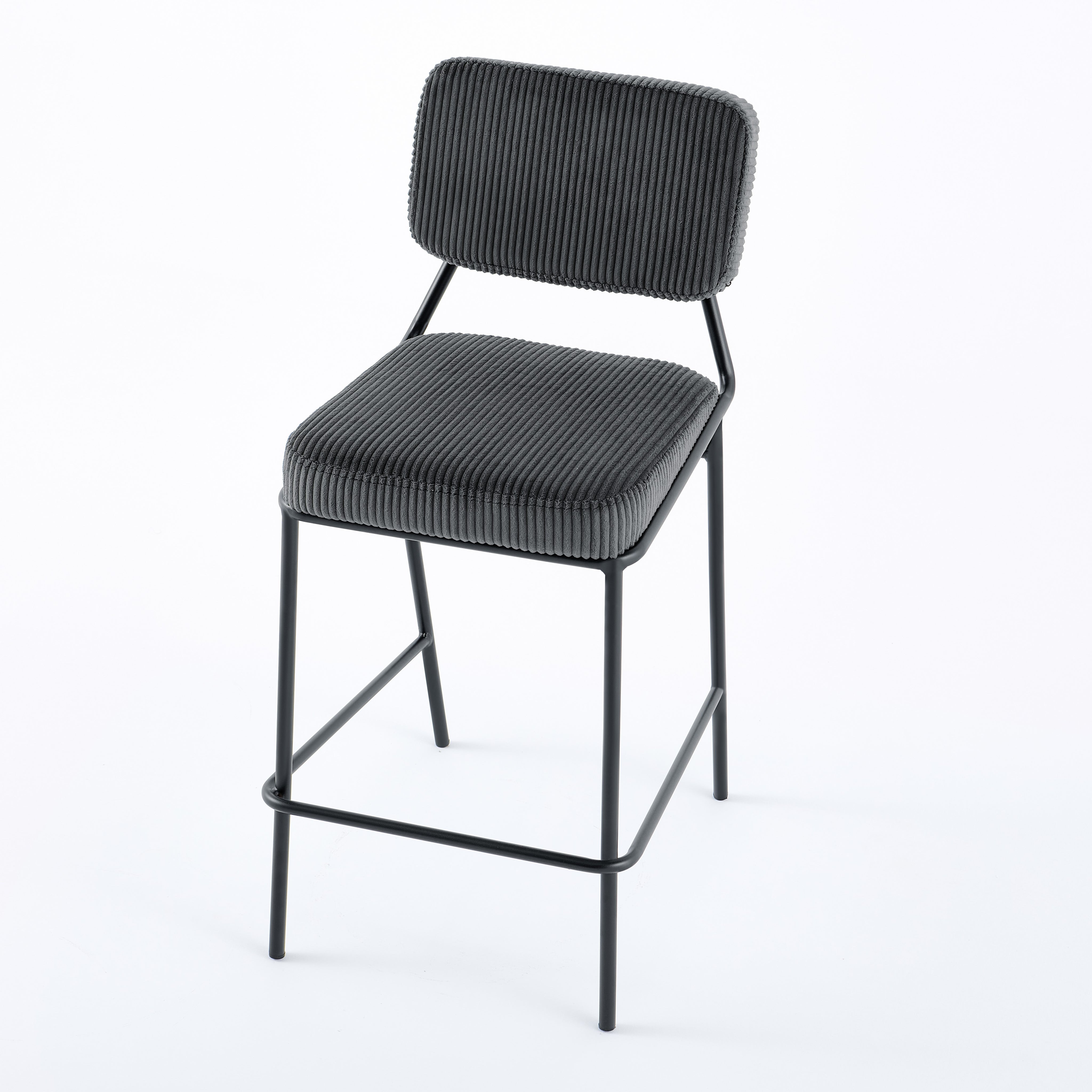Krzesło barowe Plush Noir Szary to połączenie minimalistycznego designu, elegancji oraz funkcjonalności. Tapicerka z miękkiego, prążkowanego sztruksu w szarym kolorze nadaje meblowi wyrazistego, luksusowego charakteru.