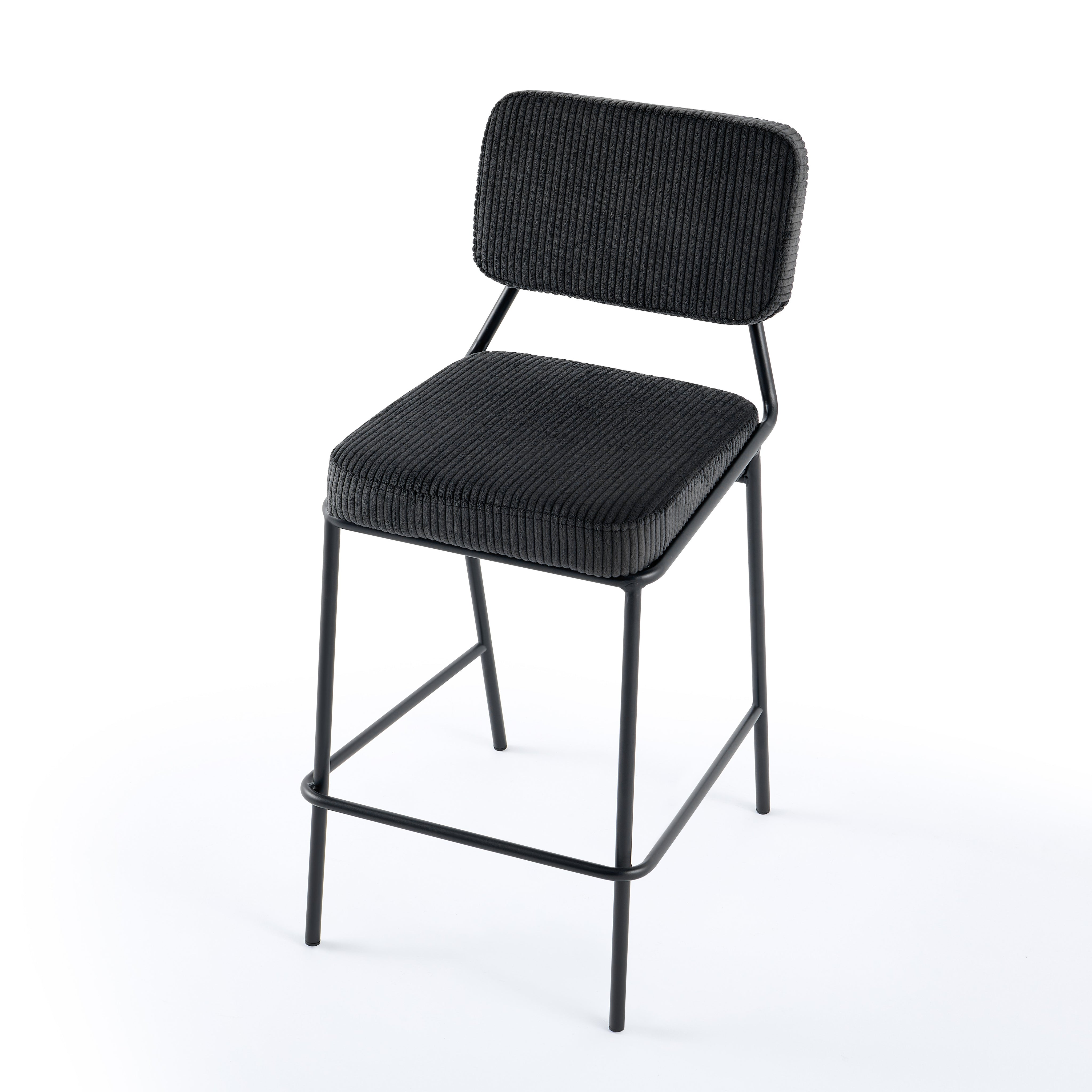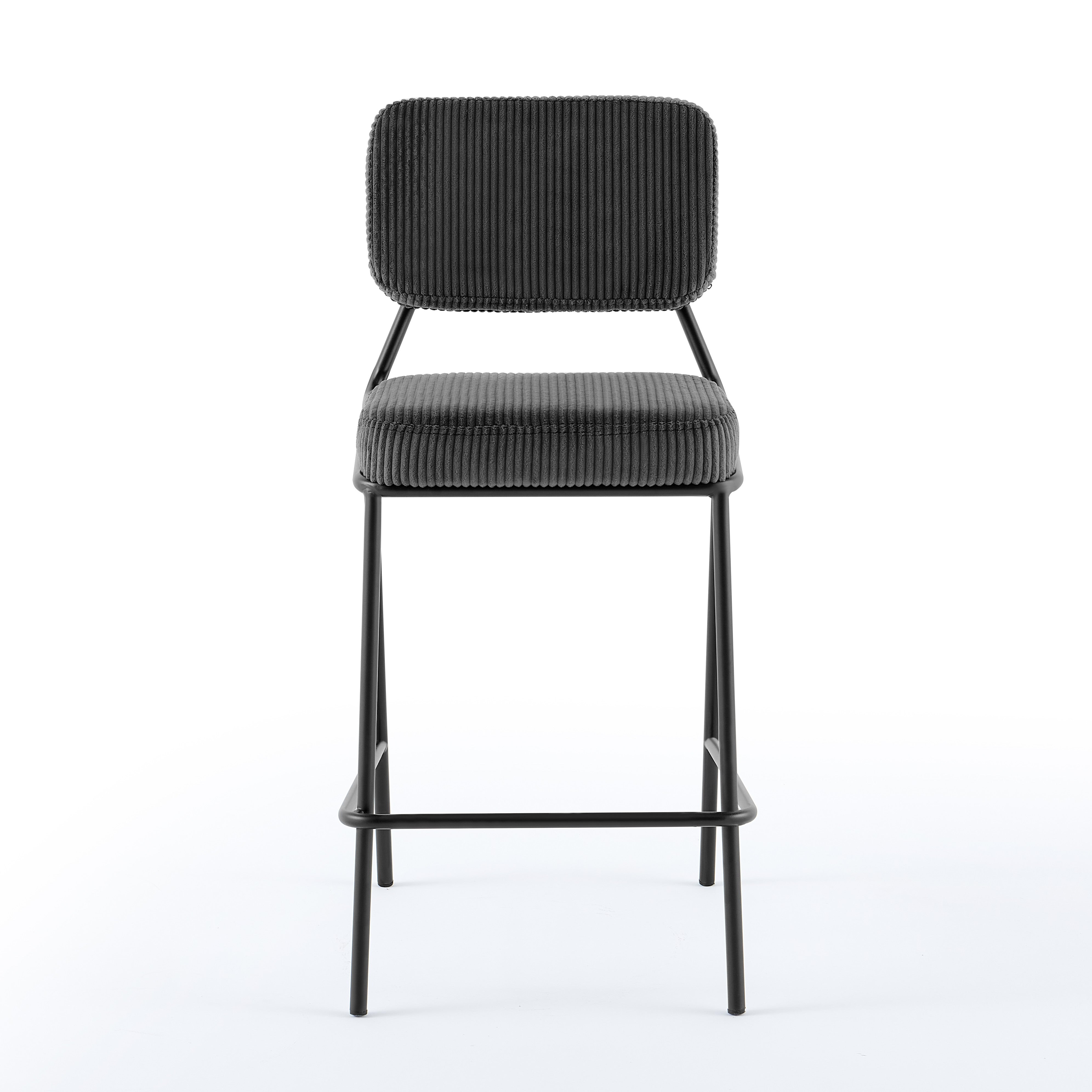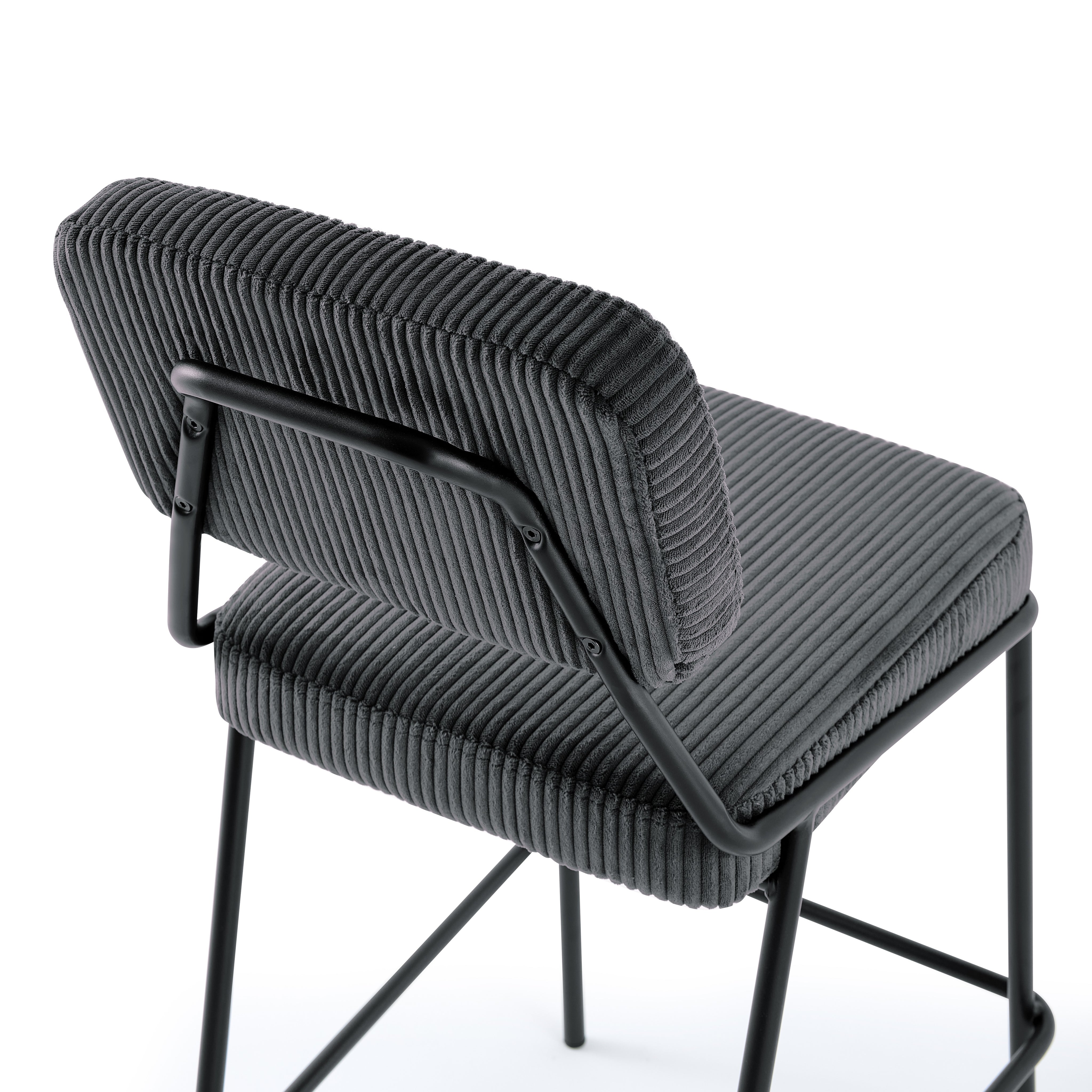 Krzesło barowe Plush Noir Szary to połączenie minimalistycznego designu, elegancji oraz funkcjonalności. Tapicerka z miękkiego, prążkowanego sztruksu w szarym kolorze nadaje meblowi wyrazistego, luksusowego charakteru.