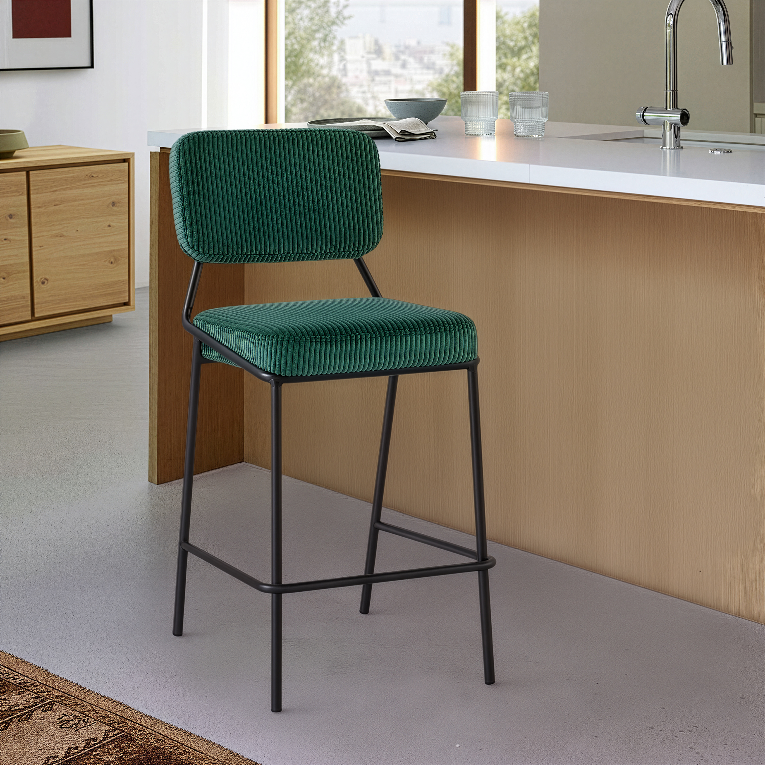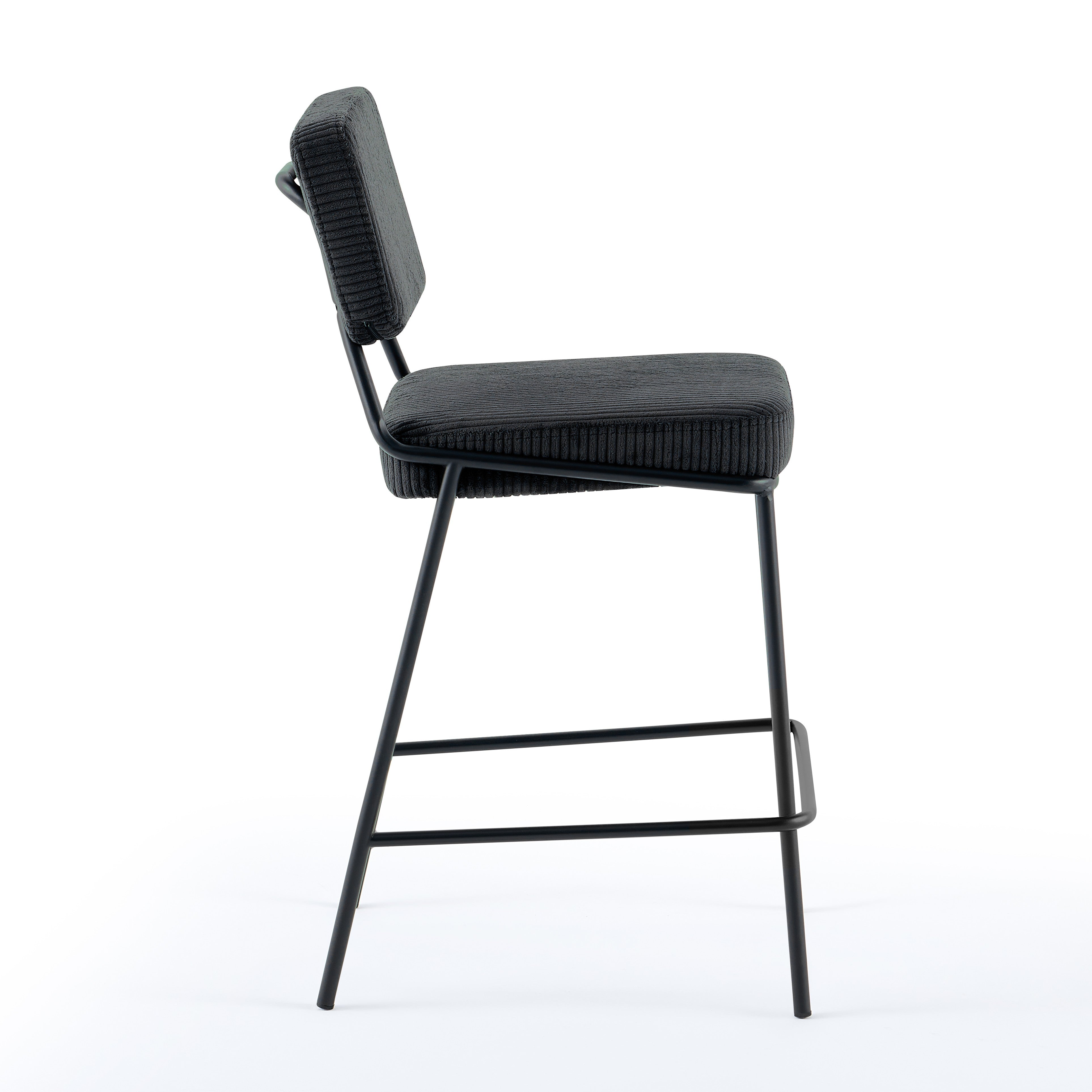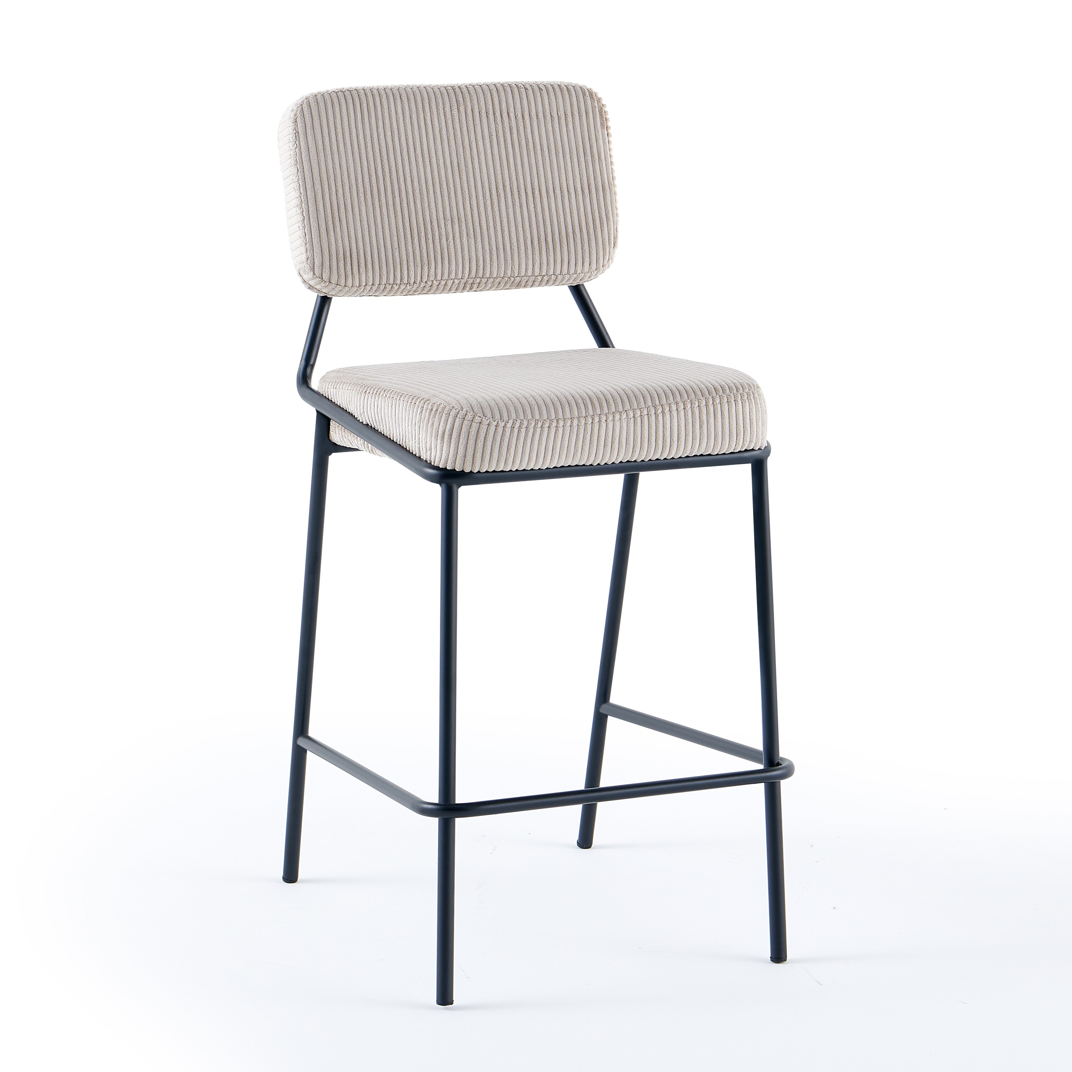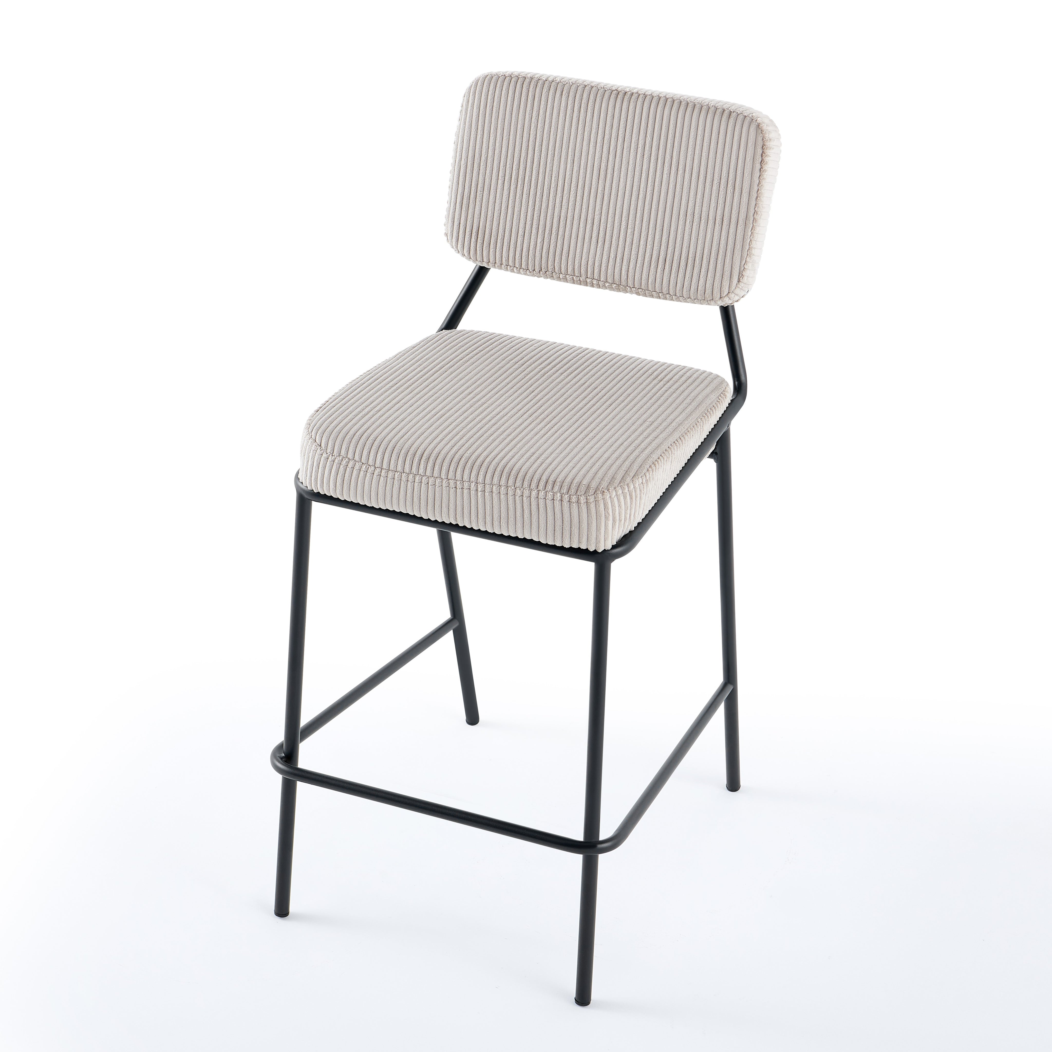 Krzesło barowe Plush Noir Szary to połączenie minimalistycznego designu, elegancji oraz funkcjonalności. Tapicerka z miękkiego, prążkowanego sztruksu w szarym kolorze nadaje meblowi wyrazistego, luksusowego charakteru.