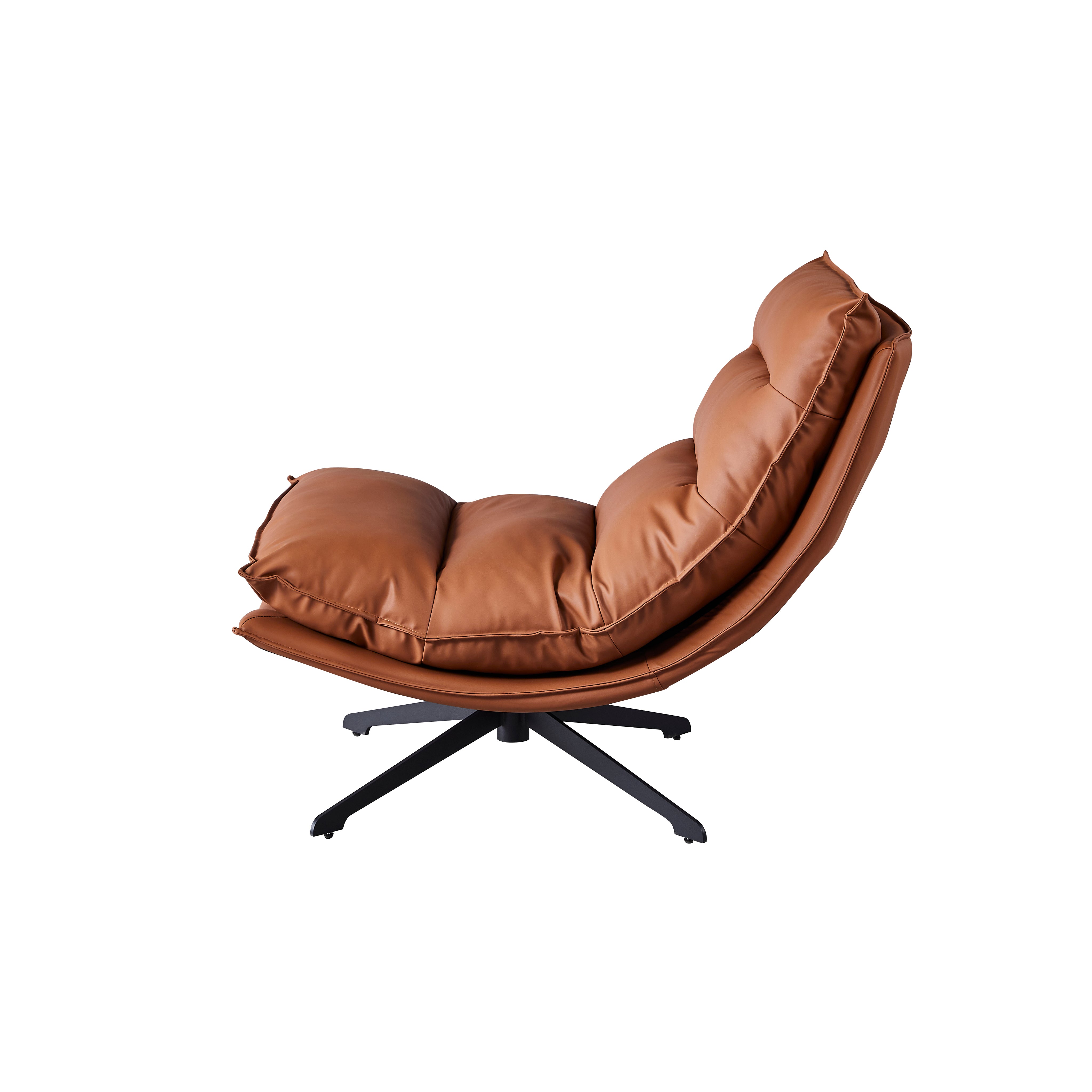 Fotel wypoczynkowy obrotowy został stworzony z myślą o codziennym komforcie i funkcjonalności we współczesnych wnętrzach. Górna część została wykonana z miękkiej, wysokogatunkowej eco leather w kolorze czarnym, która zapewnia przyjemne odczucie podczas siedzenia i elegancki wygląd. Dolna część fotela wykonana z eco leather w tym samym odcieniu dodaje spójności oraz ułatwia utrzymanie czystości. Model ten świetnie sprawdzi się w salonie, gabinecie, domowej strefie relaksu oraz jako stylowy element nowoczesnych kawiarni. Stabilna podstawa z czarnej stali malowanej proszkowo oraz szerokie, wygodne siedzisko podnoszą komfort podczas dłuższego odpoczynku. Jest to praktyczny, trwały i korzystny cenowo fotel do wielu aranżacji wnętrz.