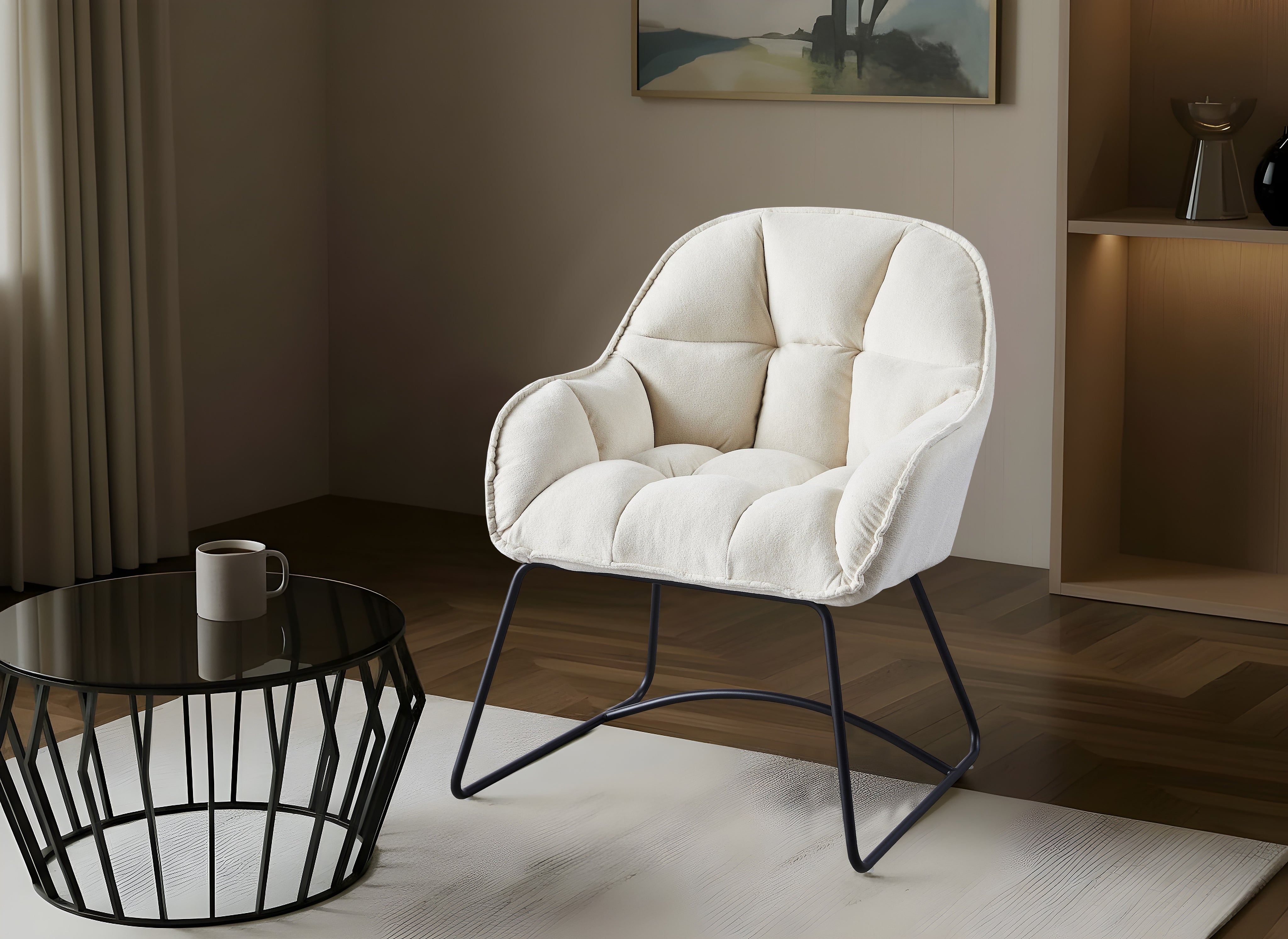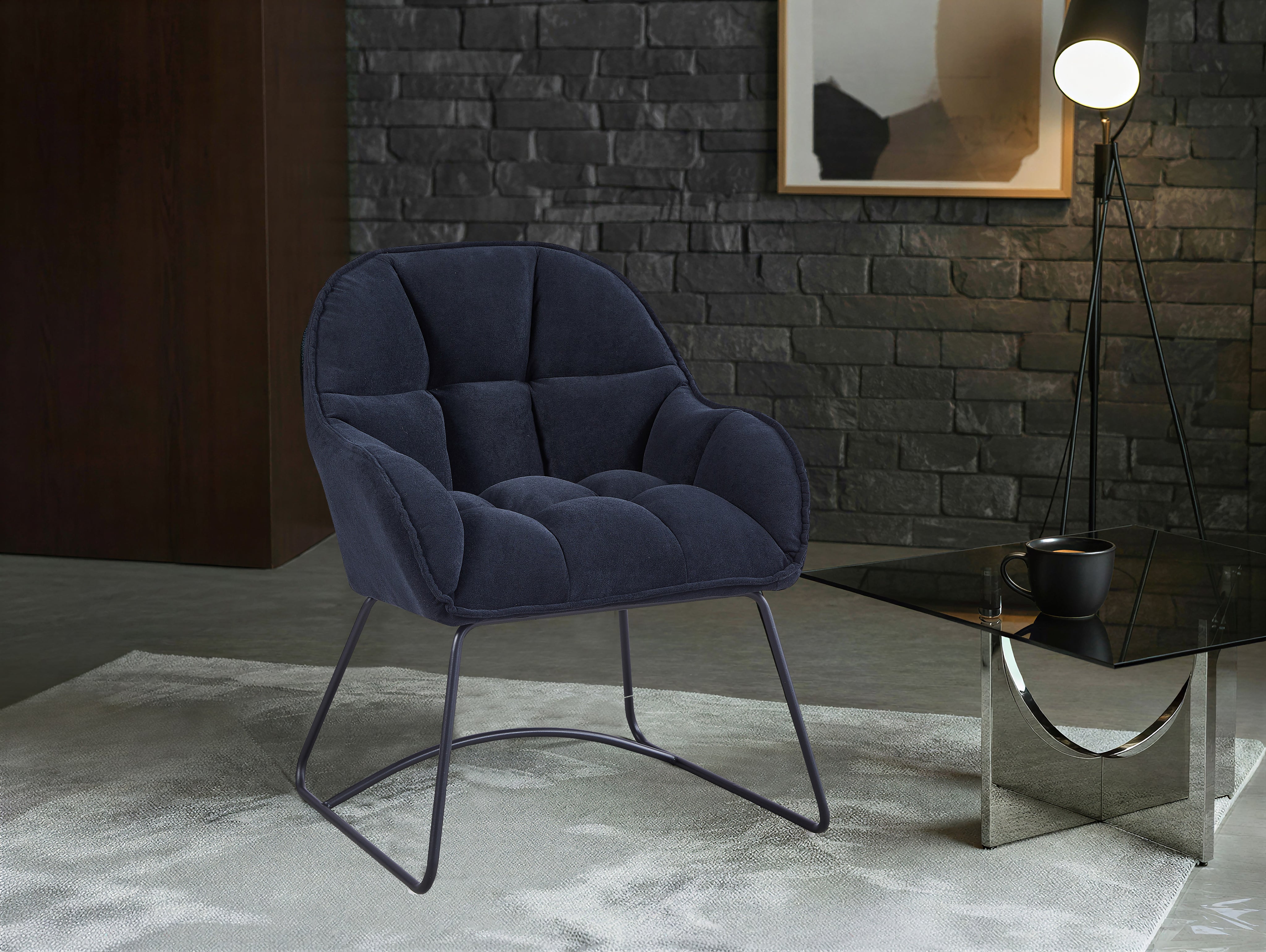 Lekka wizualnie, a zarazem solidna podstawa ze stali malowanej proszkowo w czarnym kolorze doskonale kontrastuje z ciepłą barwą tapicerki, tworząc mebel o unikalnym charakterze, który łączy funkcjonalność z niebanalną estetyką.