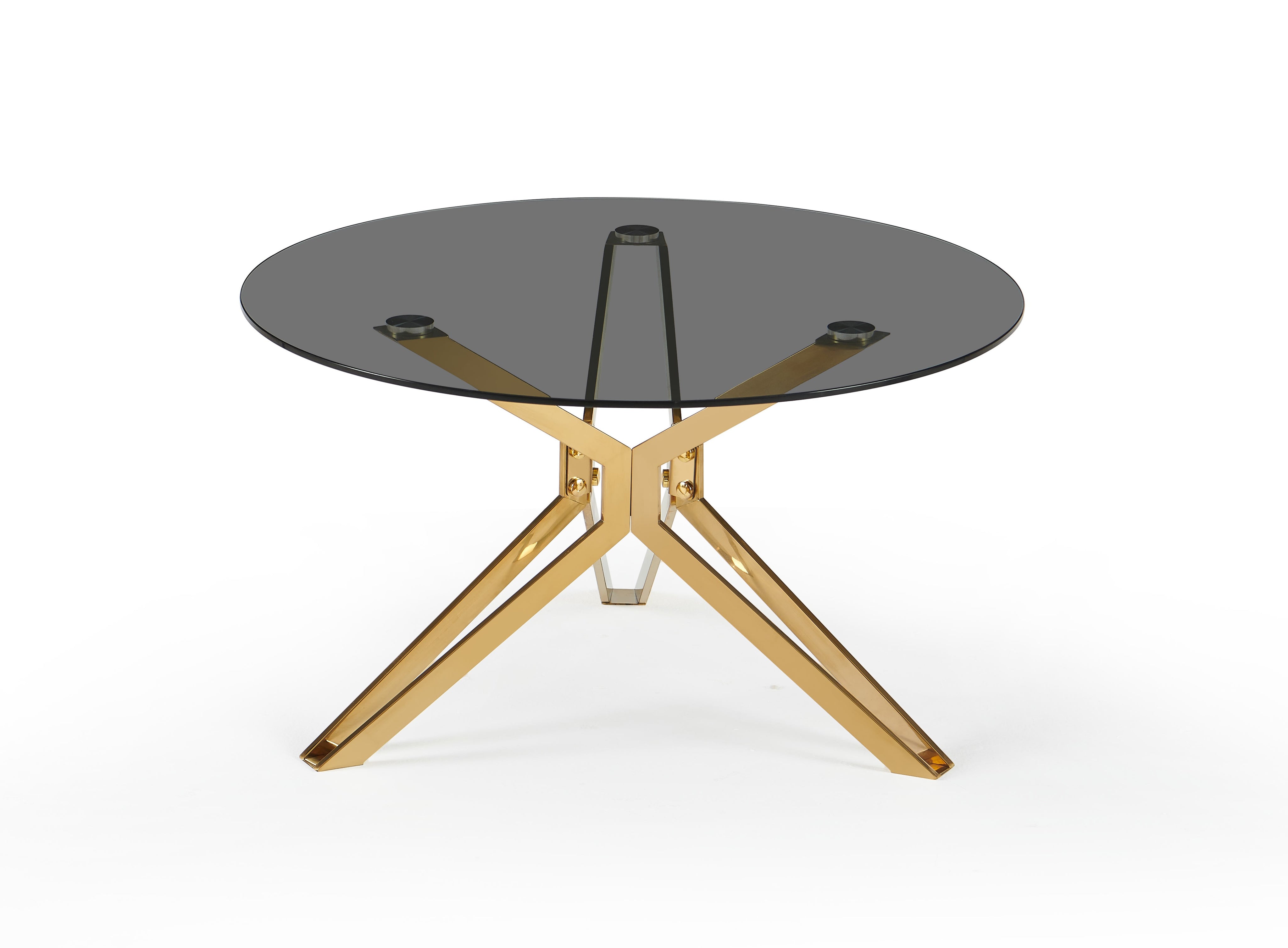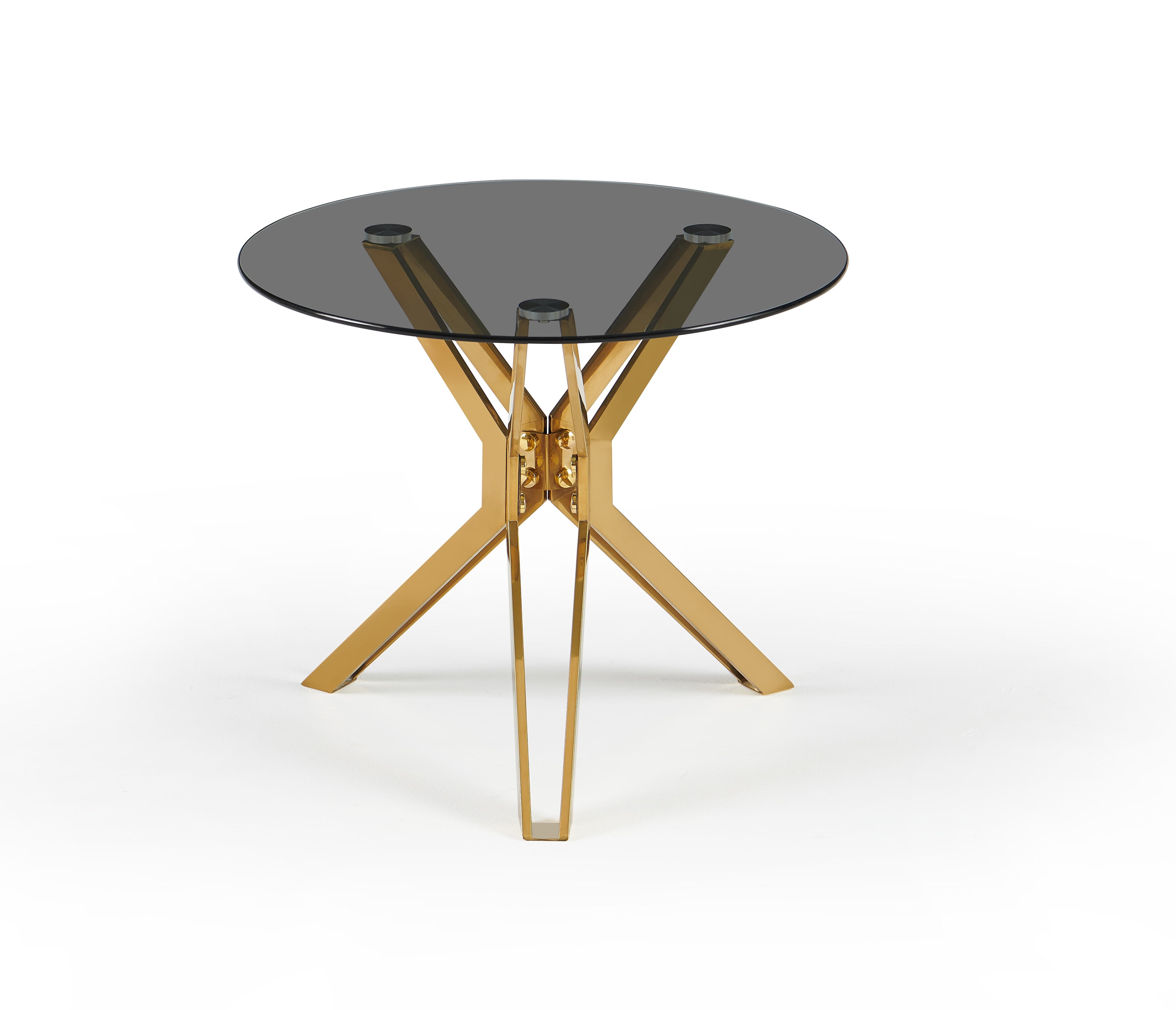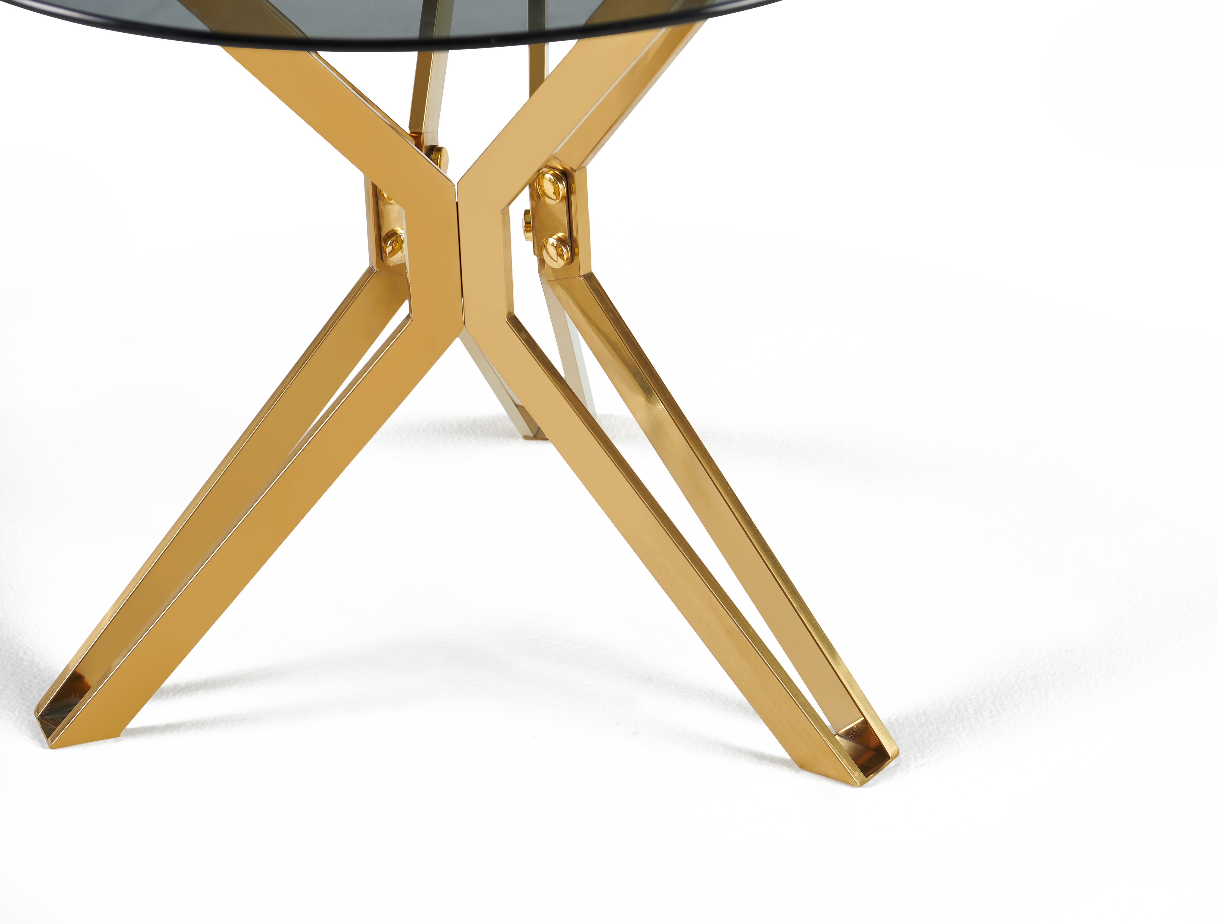 - Przezroczysta kolumna łącząca blat ze złotą metalową bazą