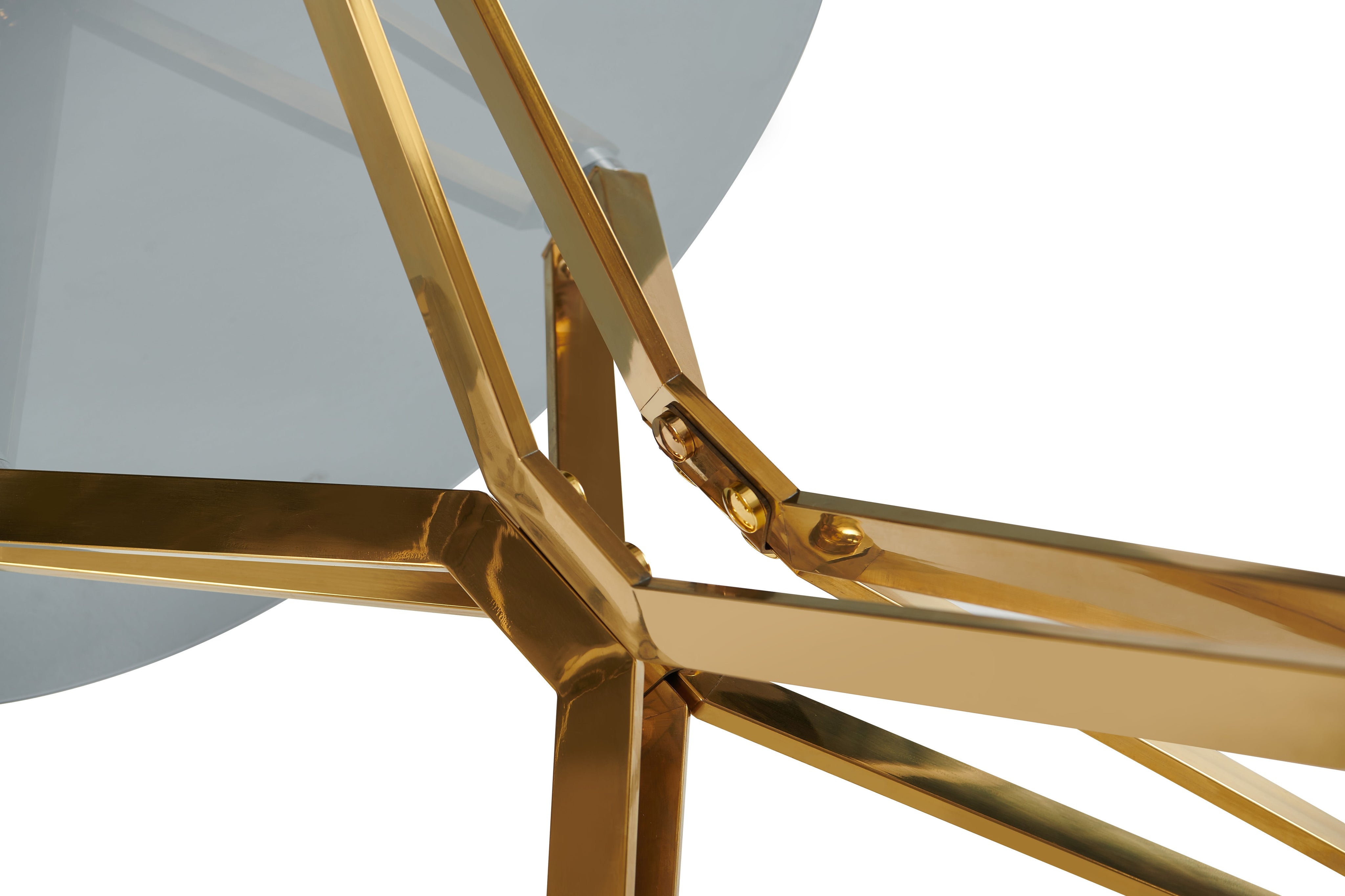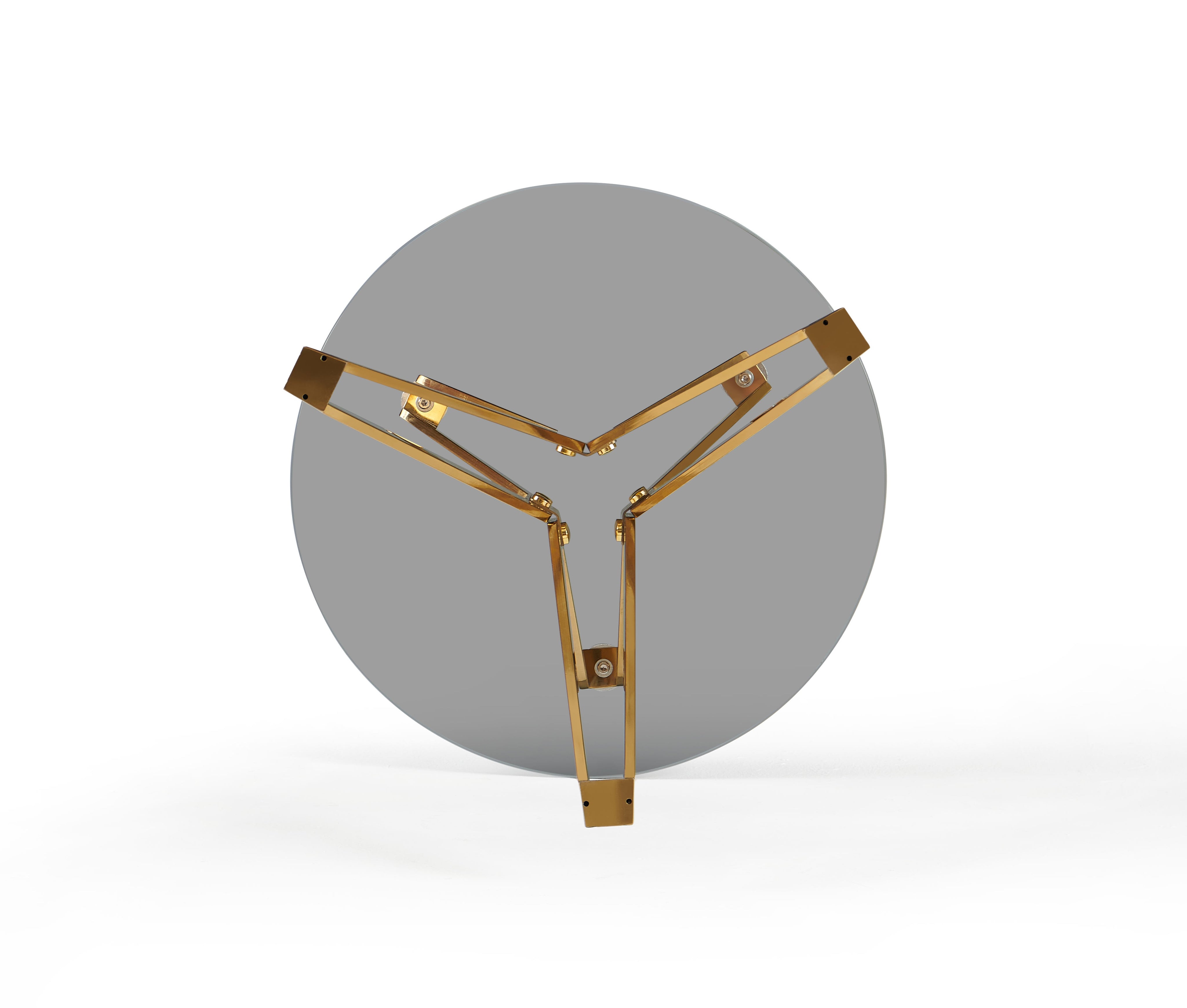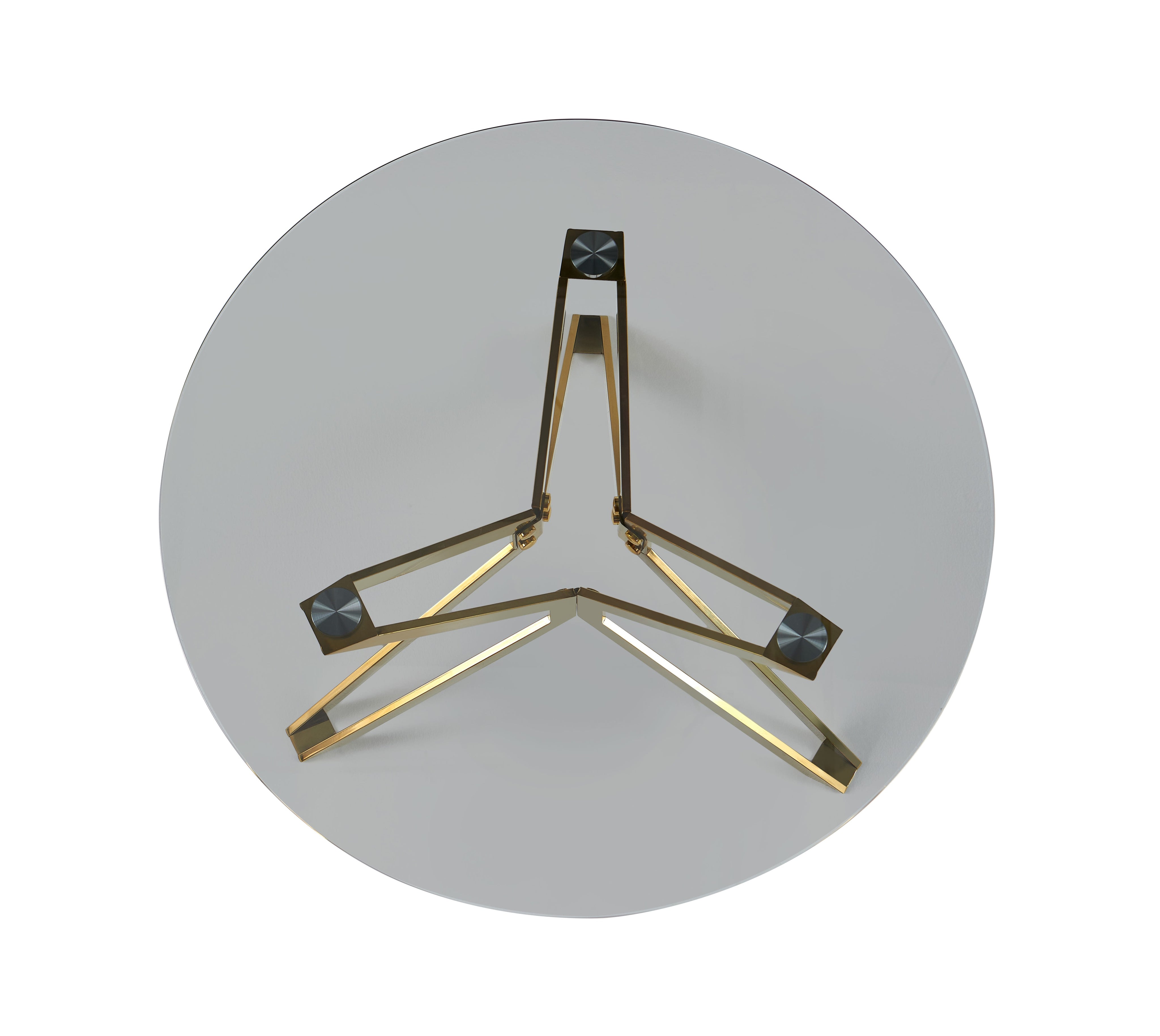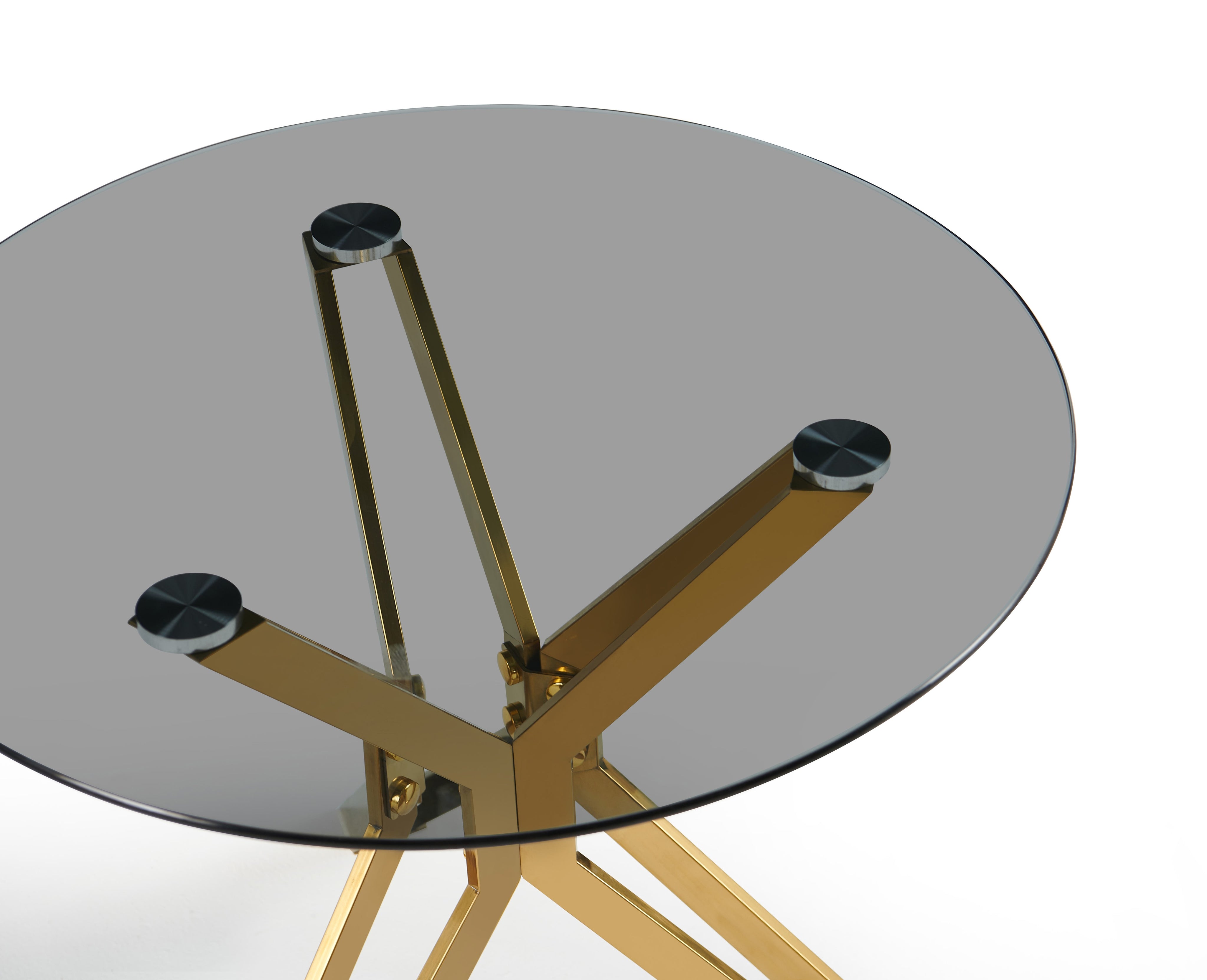 - Przezroczysta kolumna łącząca blat ze złotą metalową bazą