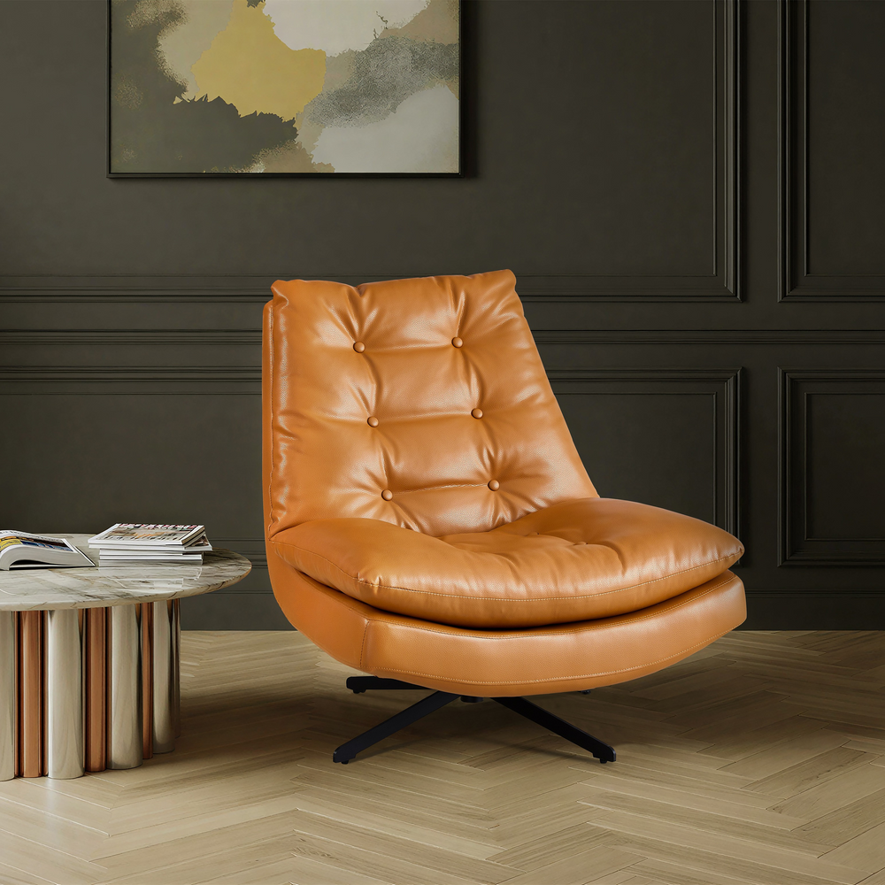Fotel Wypoczynkowy Obrotowy Eco Skóra Loft Nogi Stalowe Czarne Roma
