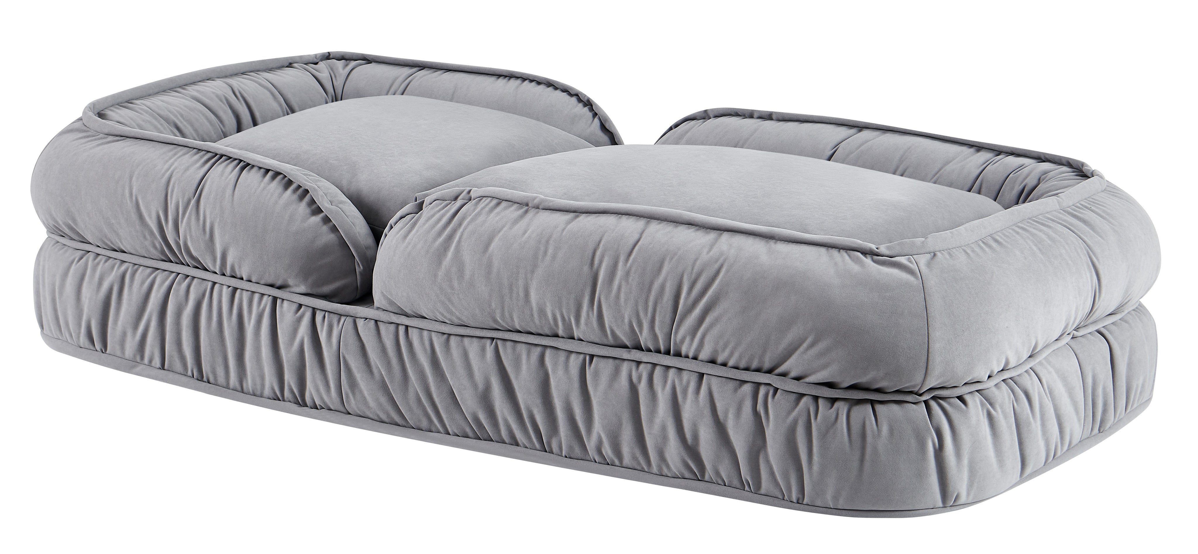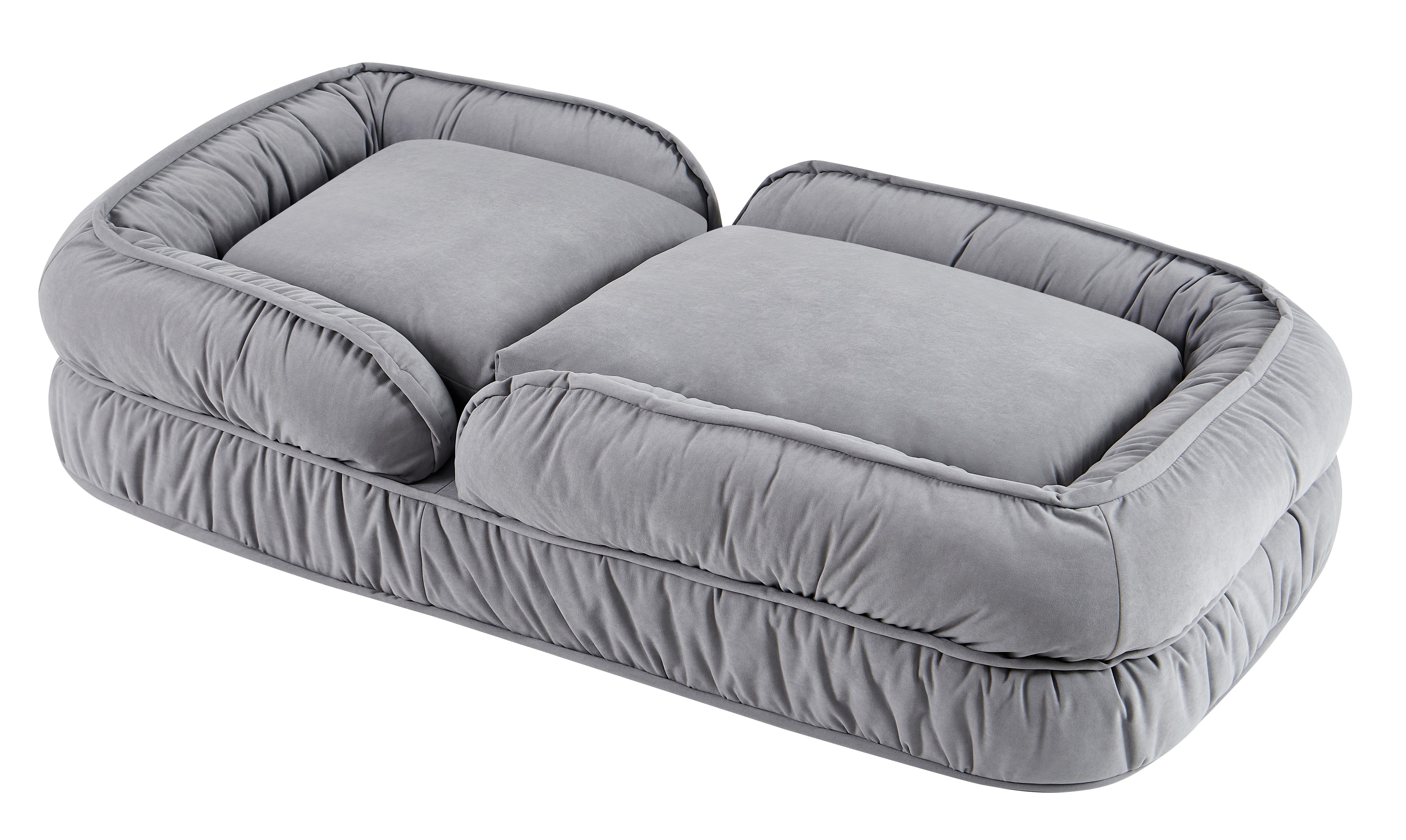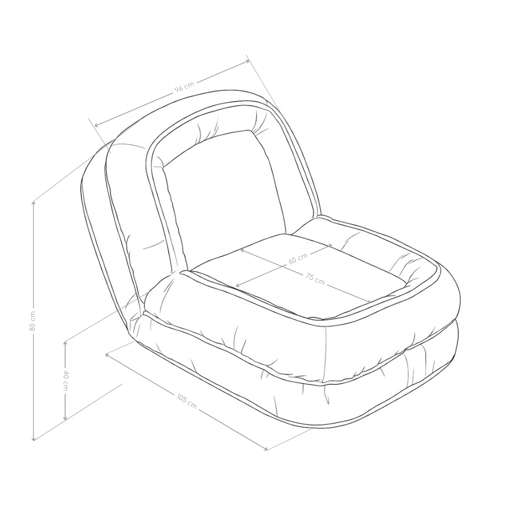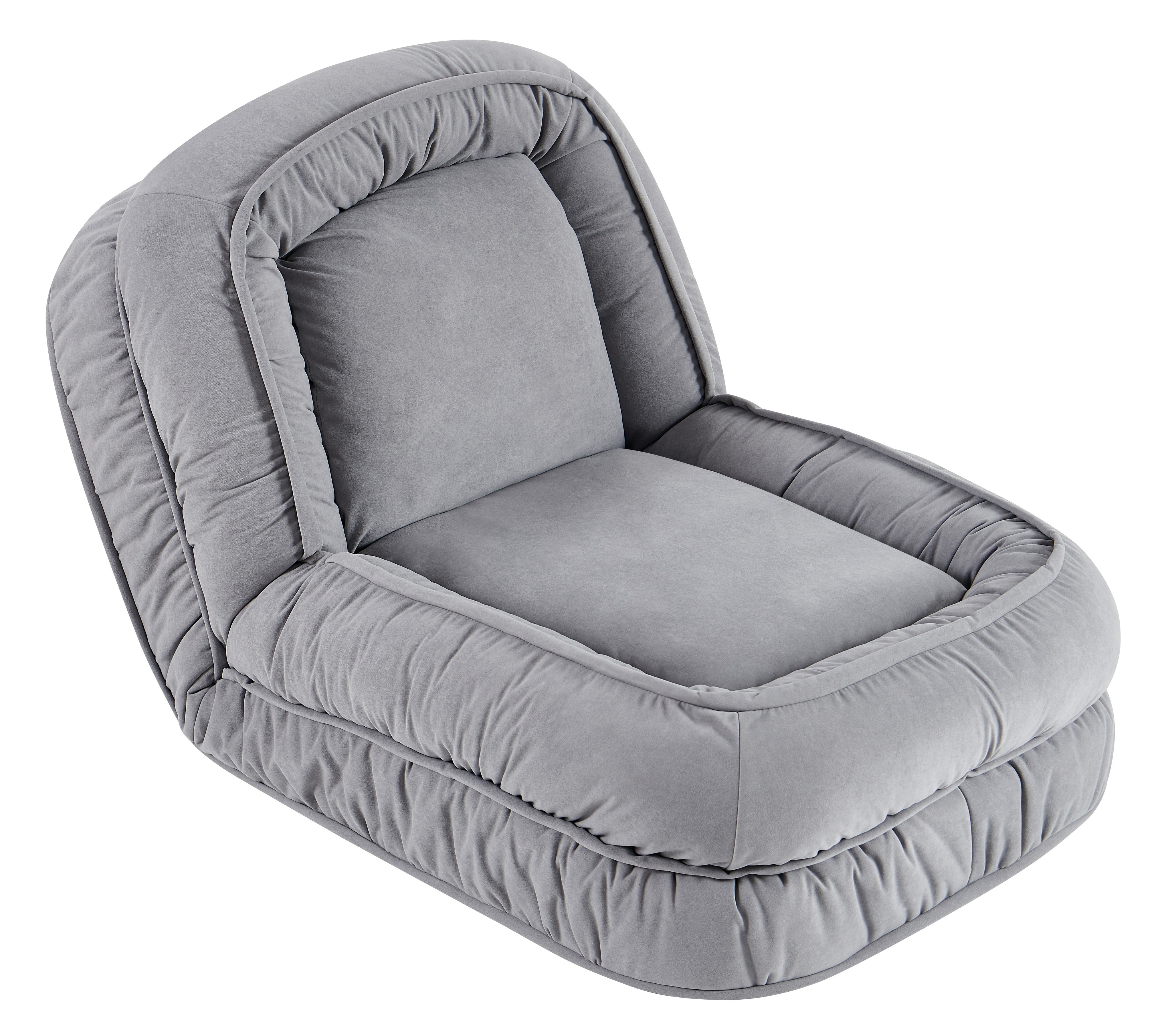 Model został wyposażony w miękką, tapicerowaną formę z możliwością rozkładania. Oparcie i siedzisko tworzą jednolitą bryłę, która umożliwia zmianę pozycji użytkowania w zależności od potrzeb – od siedzenia po półleżący relaks.