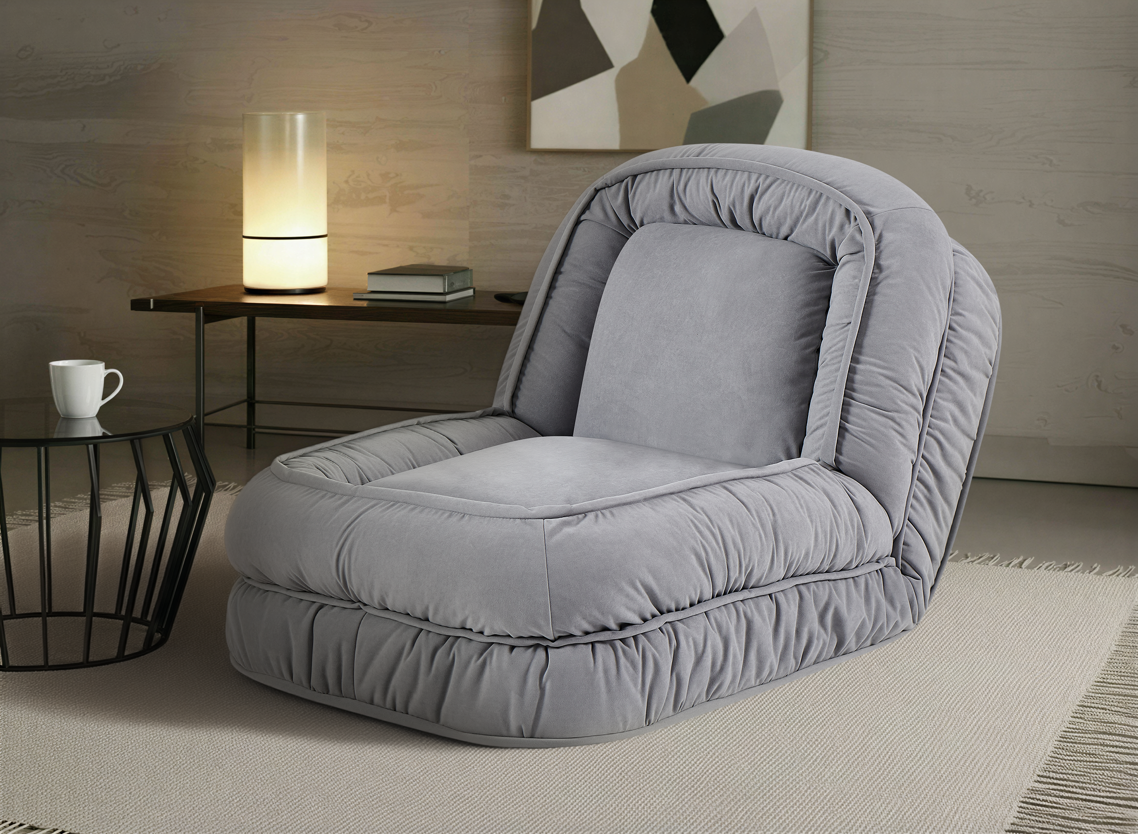 Fotel podłogowy rozkładany miękko tapicerowany nowoczesny szary – ELYSIUM