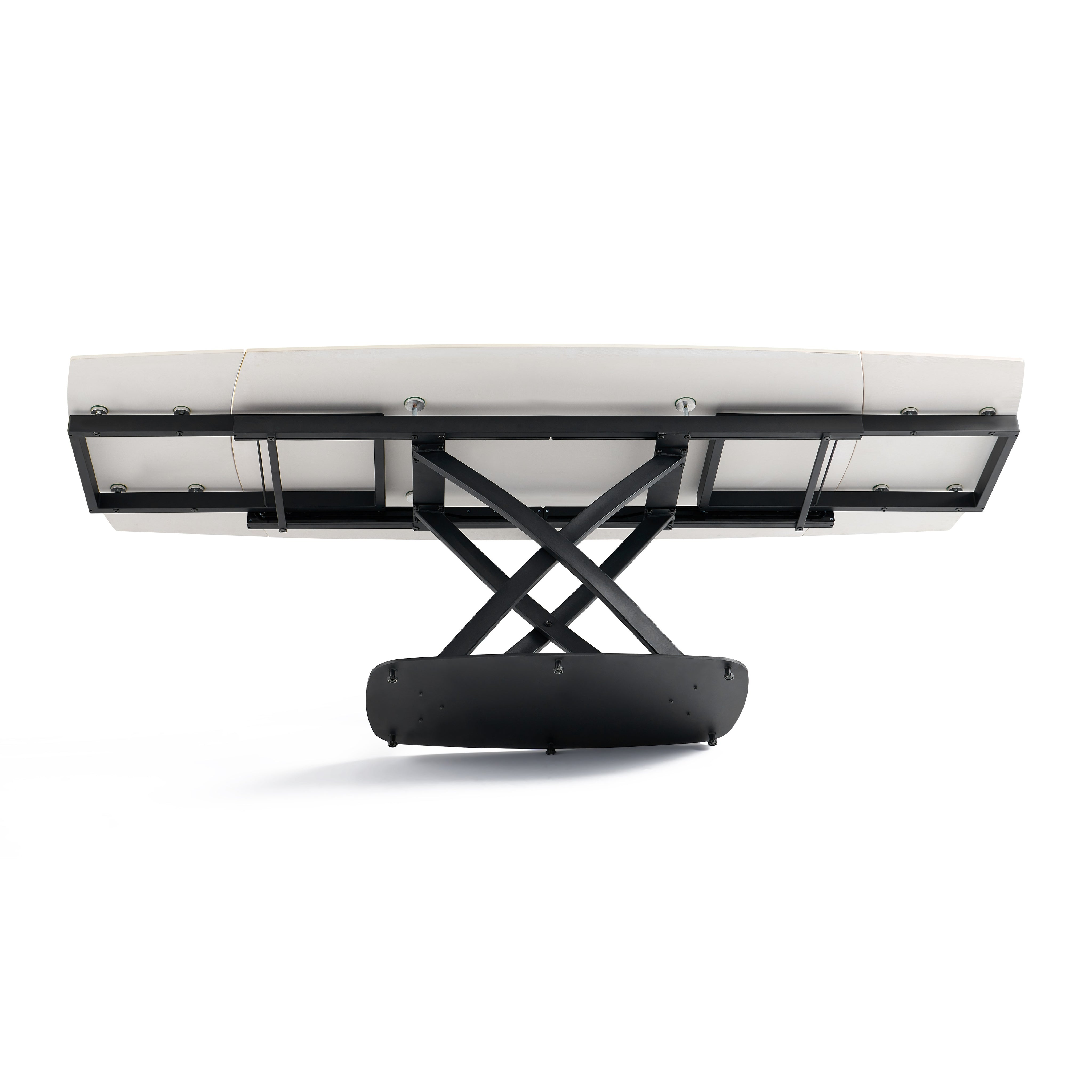 Blat ceramiczny w kolorze marmuru czarnego jest odporny na zarysowania, wysoką temperaturę i zabrudzenia, dzięki czemu doskonale sprawdza się w codziennym użytkowaniu. Stabilna podstawa z czarnej stali malowanej proszkowo gwarantuje trwałość, stabilność i elegancki wygląd.