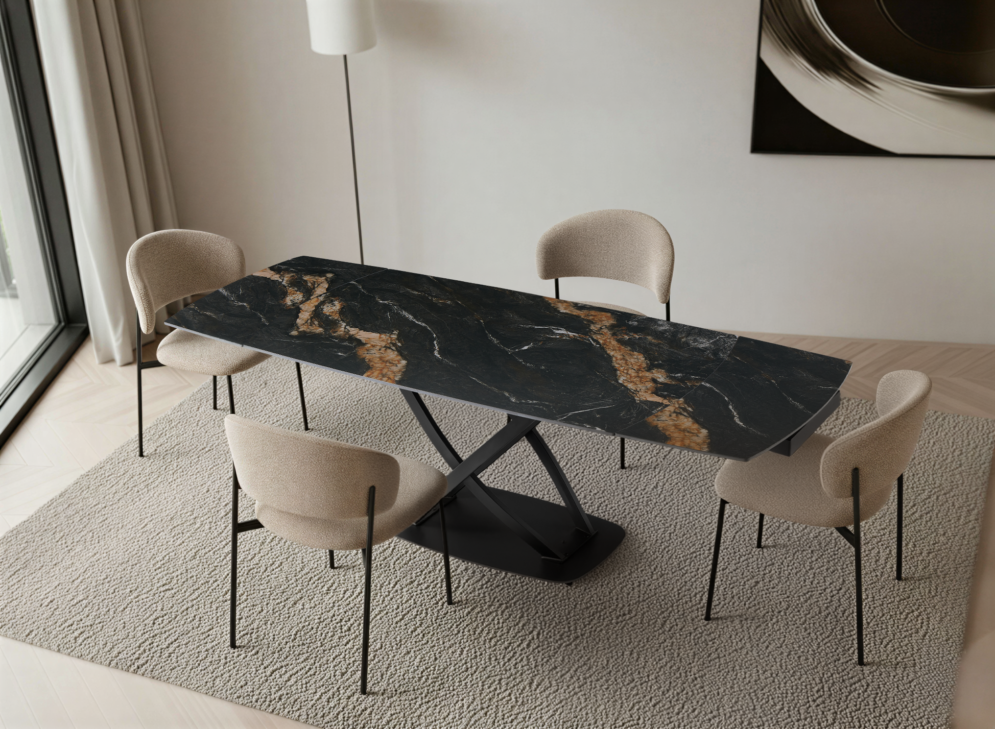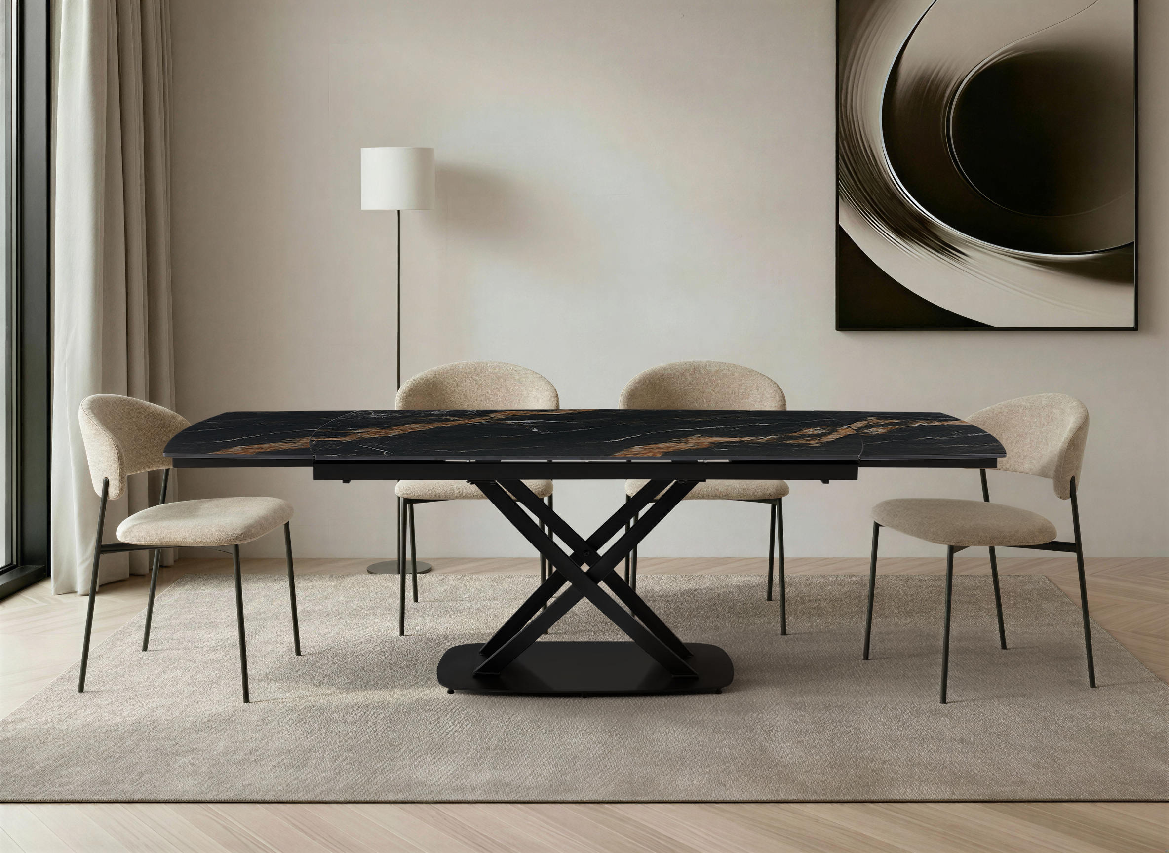 Stylowy stół jadalniany z ceramicznym, rozkładanym blatem Axis – elegancki czarny marmur