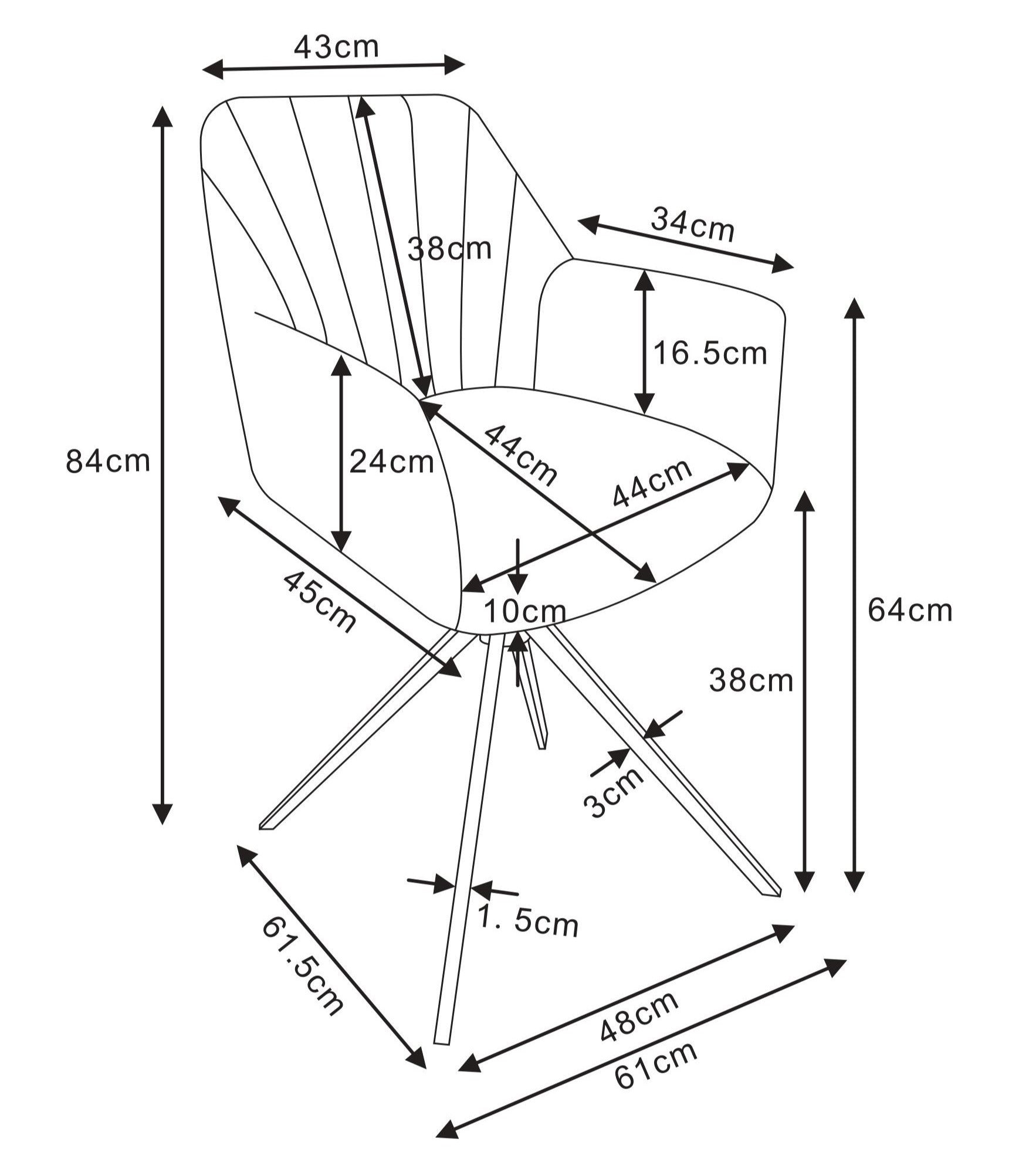 Stylowy krzesło Vienna to nowoczesne rozwiązanie dla Twojego wnętrza. Wykonany miękka tkanina (100% poliester), zapewnia komfort użytkowania. Siedzisko wypełnione miękka pianka gwarantuje wygodę podczas długiego siedzenia. Rama z materiału stal malowana proszkowo zapewnia trwałość i stabilność konstrukcji.