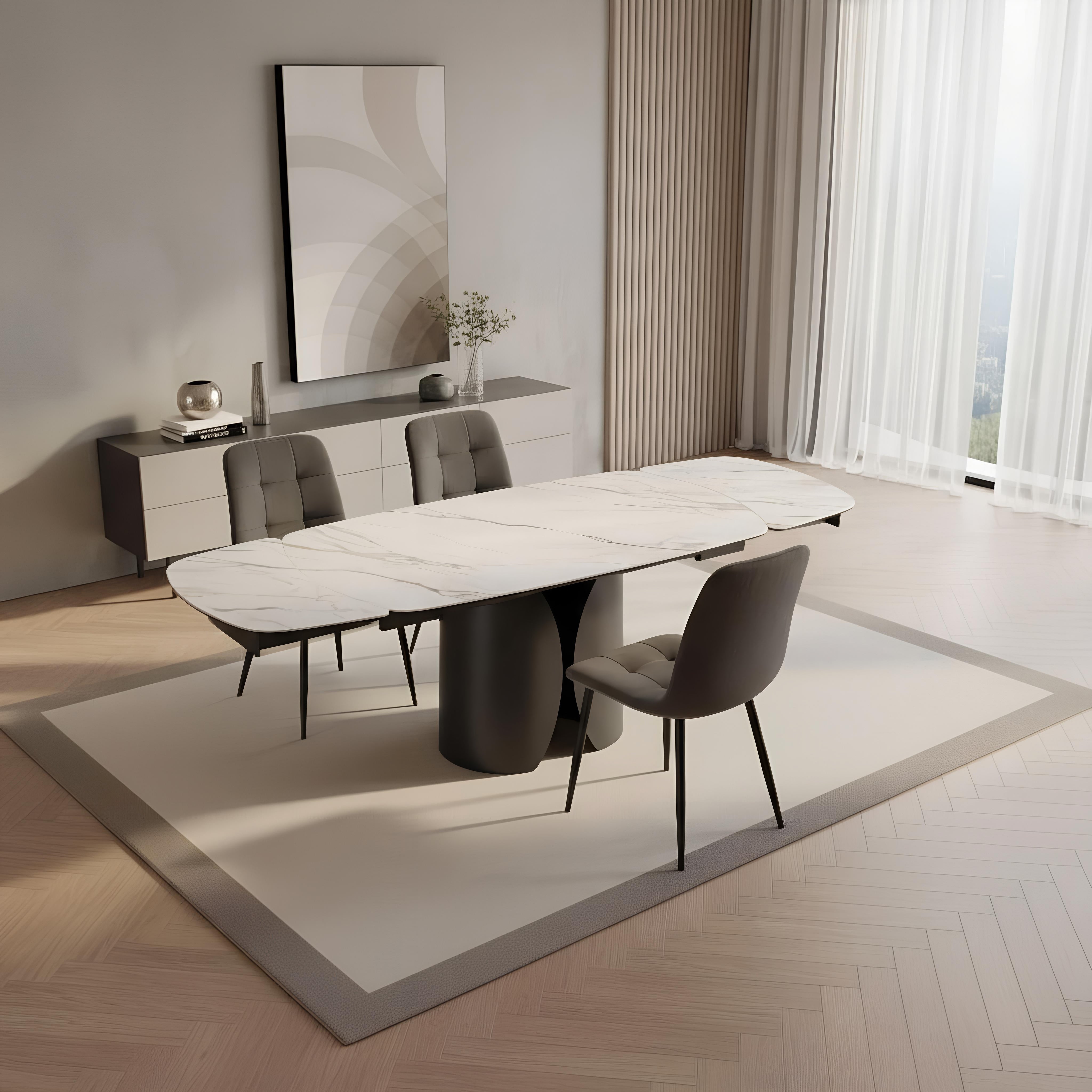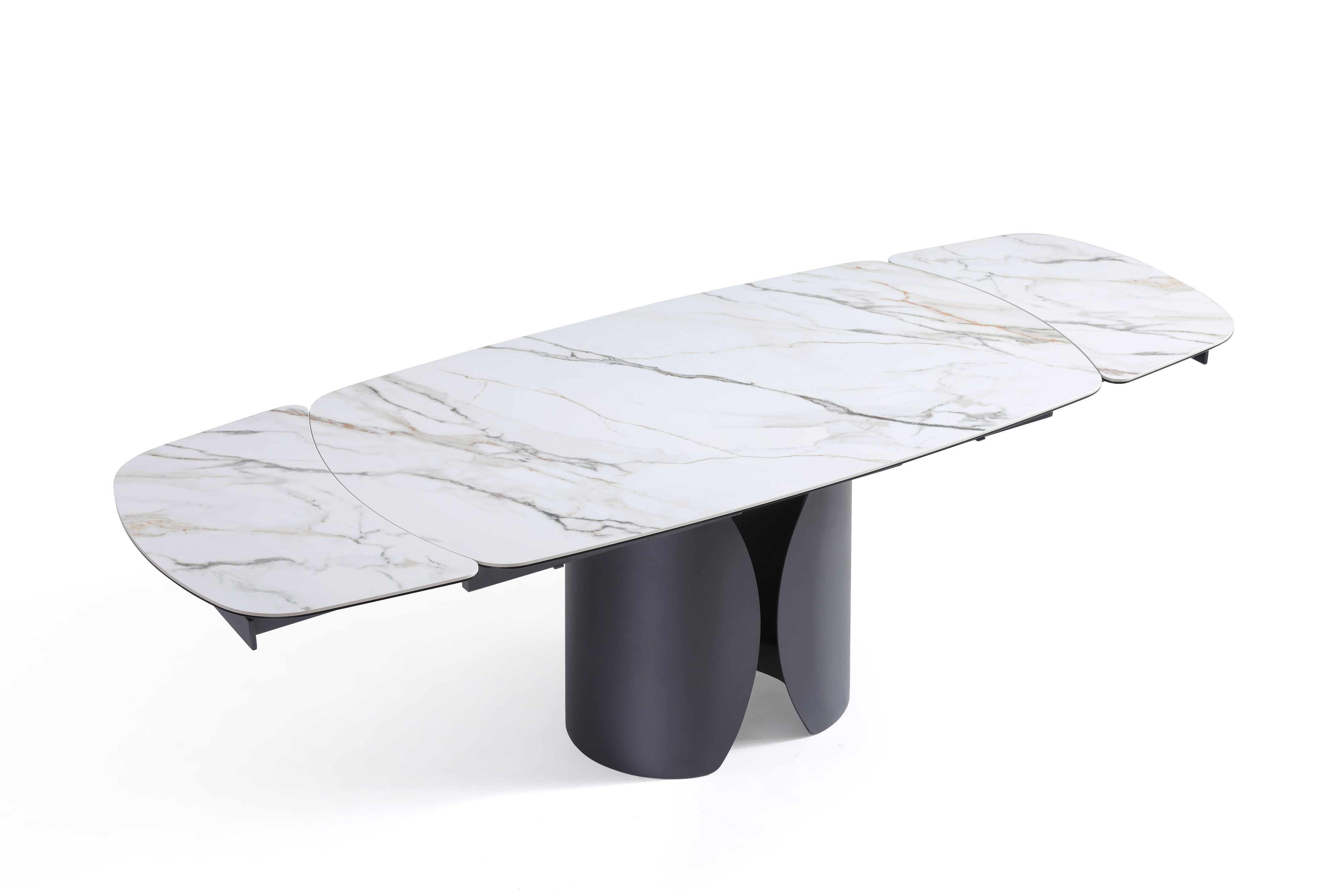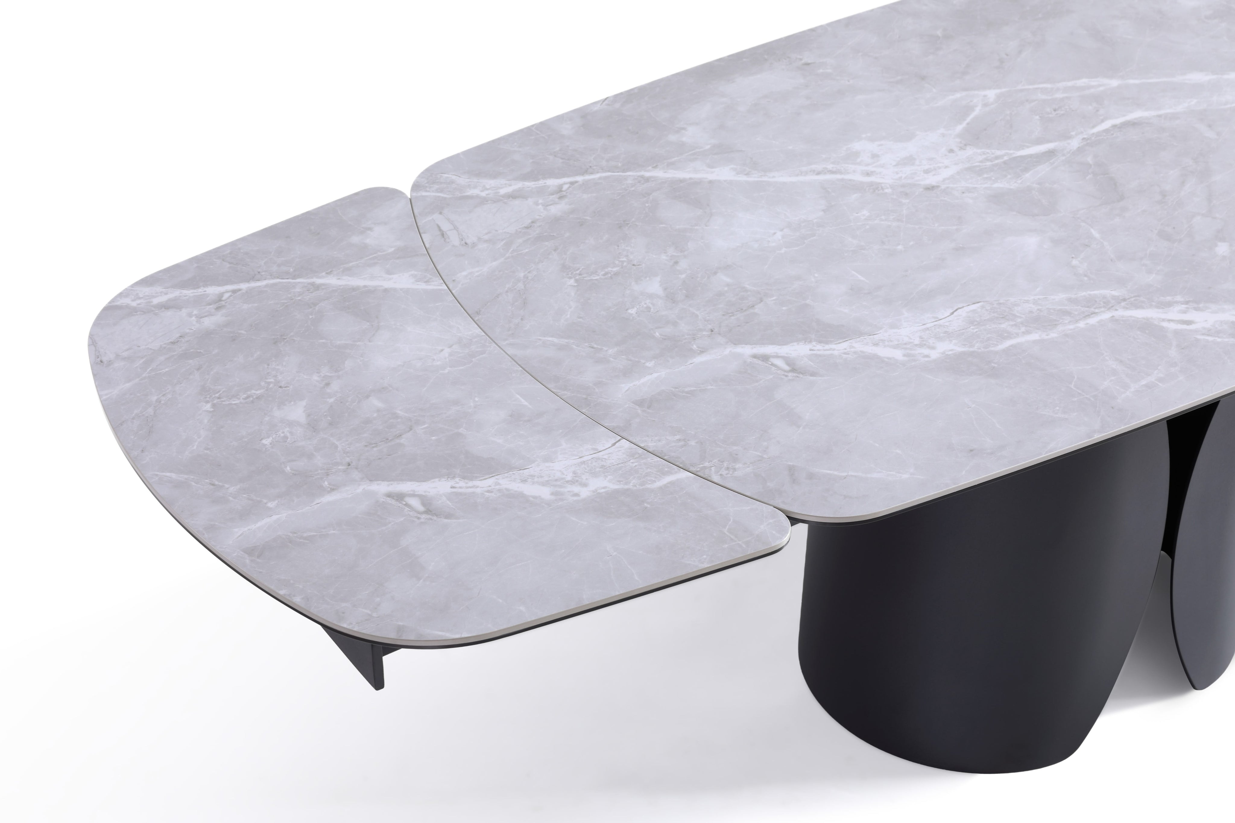 Rozsuwany prostokątny stół jadalny ceramiczny Ischia łączy nowoczesny design z funkcjonalnością. Ceramiczny blat na hartowanym szkle o efekcie marmuru z unikalnym układem żył sprawia, że każdy egzemplarz jest wyjątkowy. Praktyczny stół do codziennego użytku w jadalni lub kuchni. Wygodna przestrzeń do wspólnych posiłków i spotkań. Ceramika odporna na zarysowania, wysoką temperaturę i plamy - łatwa w utrzymaniu czystości. Nowoczesna konstrukcja ceramiki na hartowanym szkle łączy piękno i wytrzymałość ceramiki z lekkością i bezpieczeństwem szkła hartowanego - stół jest znacznie lżejszy od tradycyjnych stołów ceramicznych, co ułatwia transport i przestawianie. Rozsuwany mechanizm pozwala rozłożyć stół z 160cm do 240cm. Wystarczy przetrzeć wilgotną szmatką - ceramiczny blat zachowa piękny wygląd na lata. Solidna stalowa konstrukcja zapewnia stabilność i długowieczność na lata użytkowania.