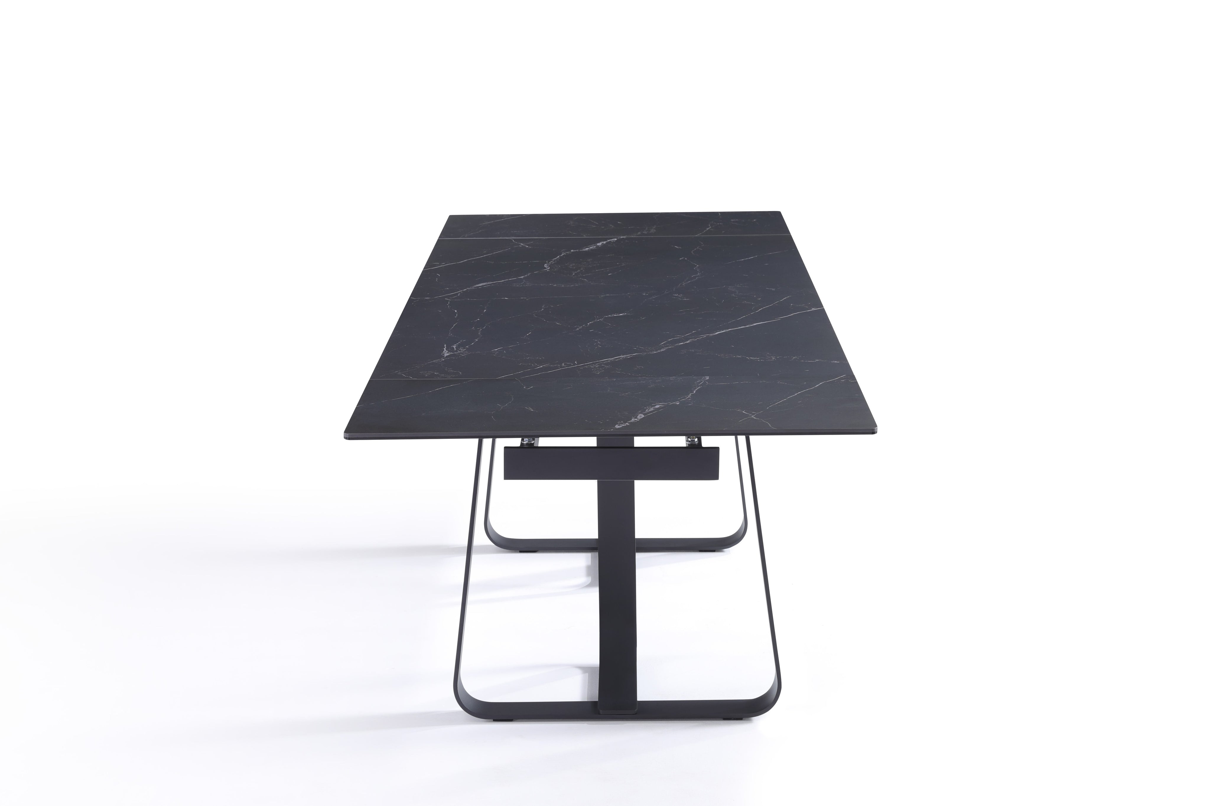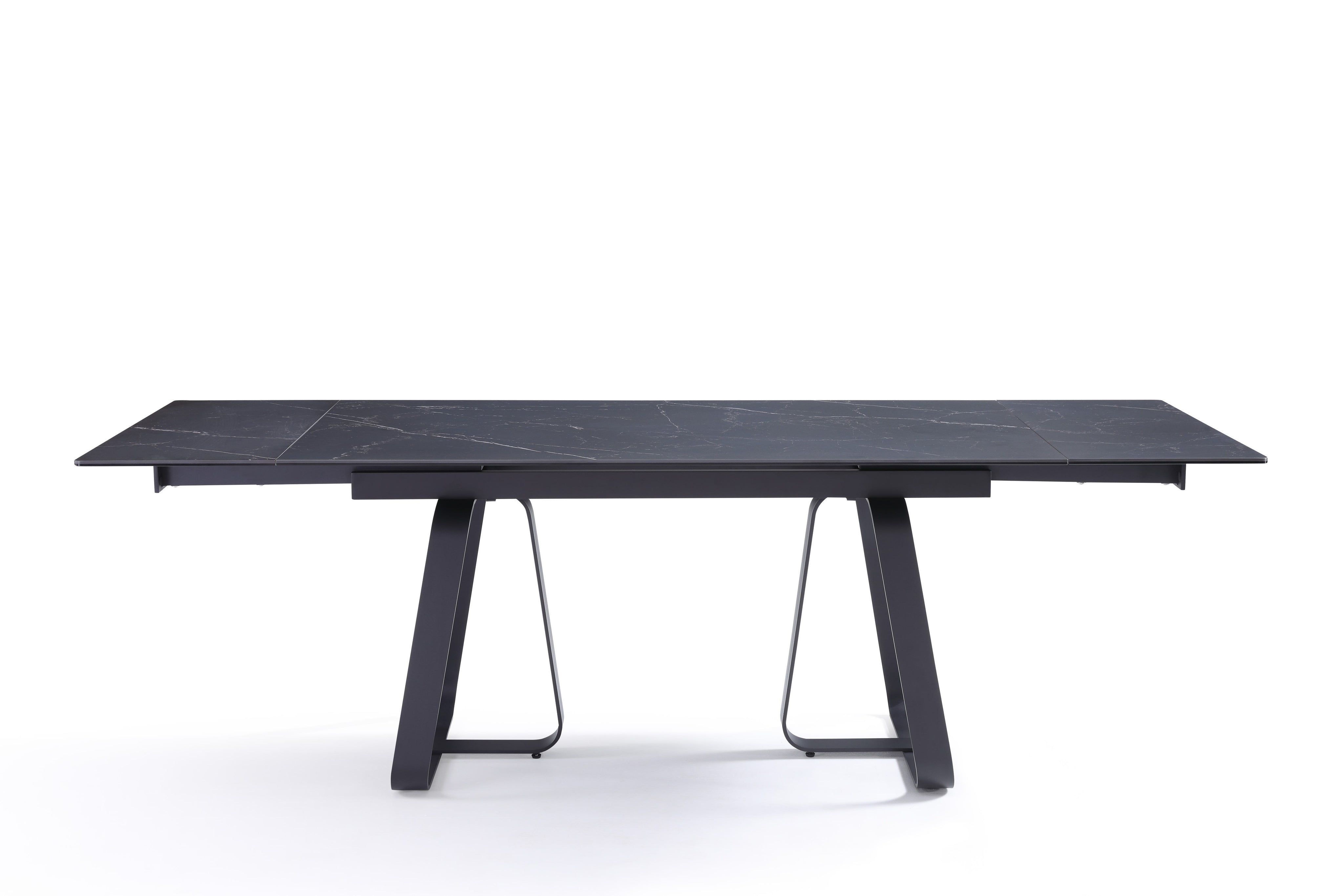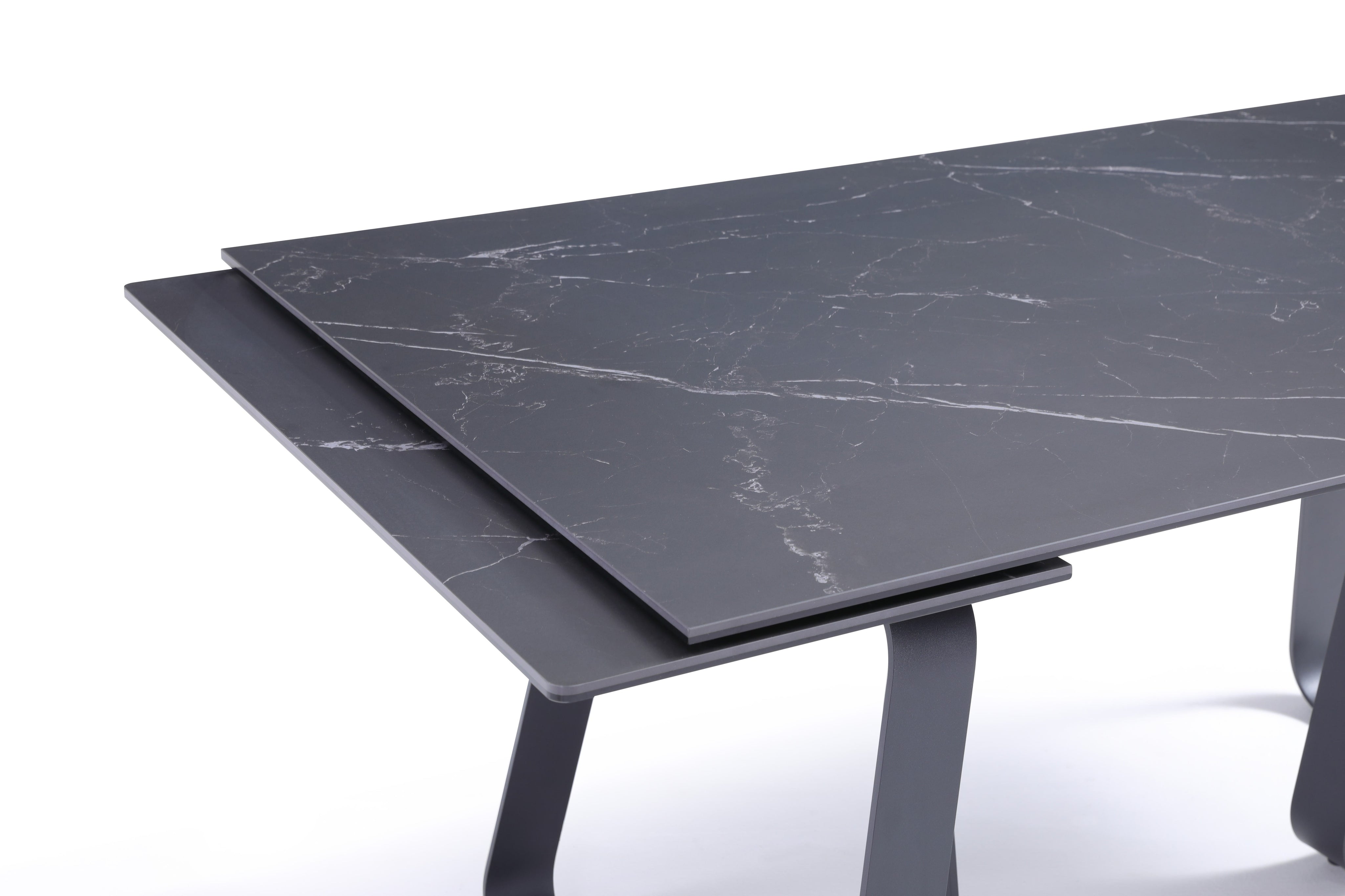 Stół Do Jadalni Ceramiczny 160–240x90 Czarny Marmur Nogi Stalowe Czarne Lerici