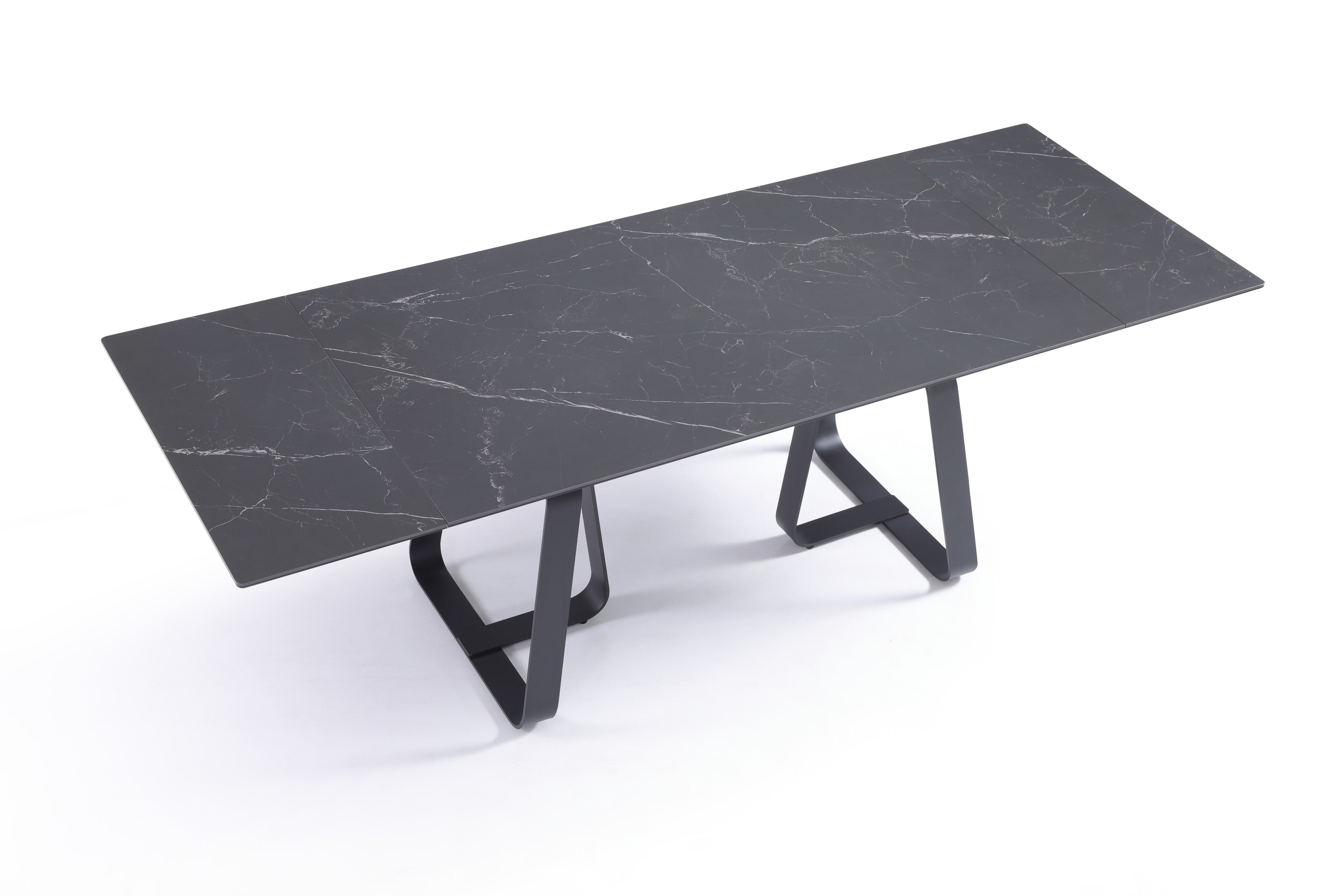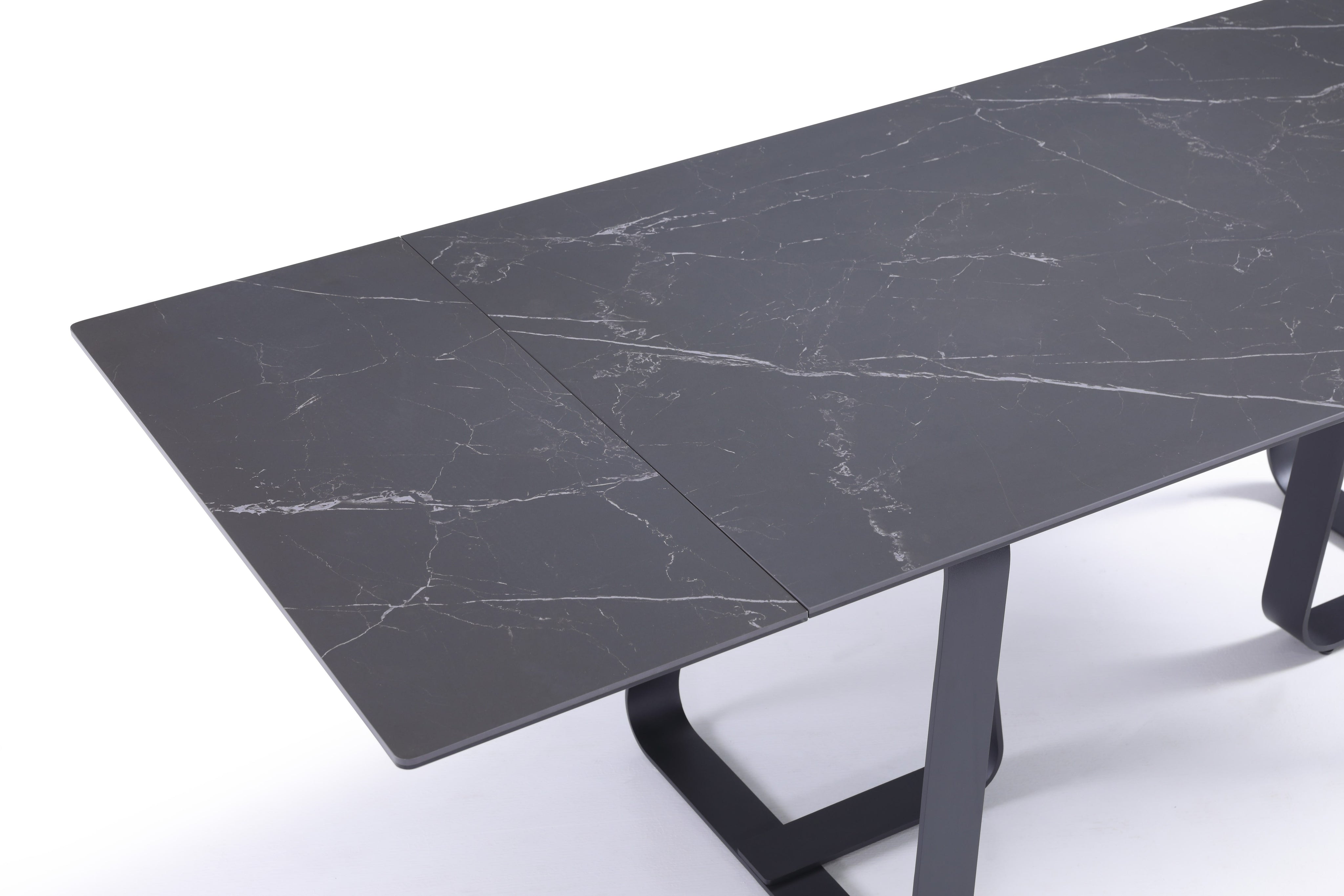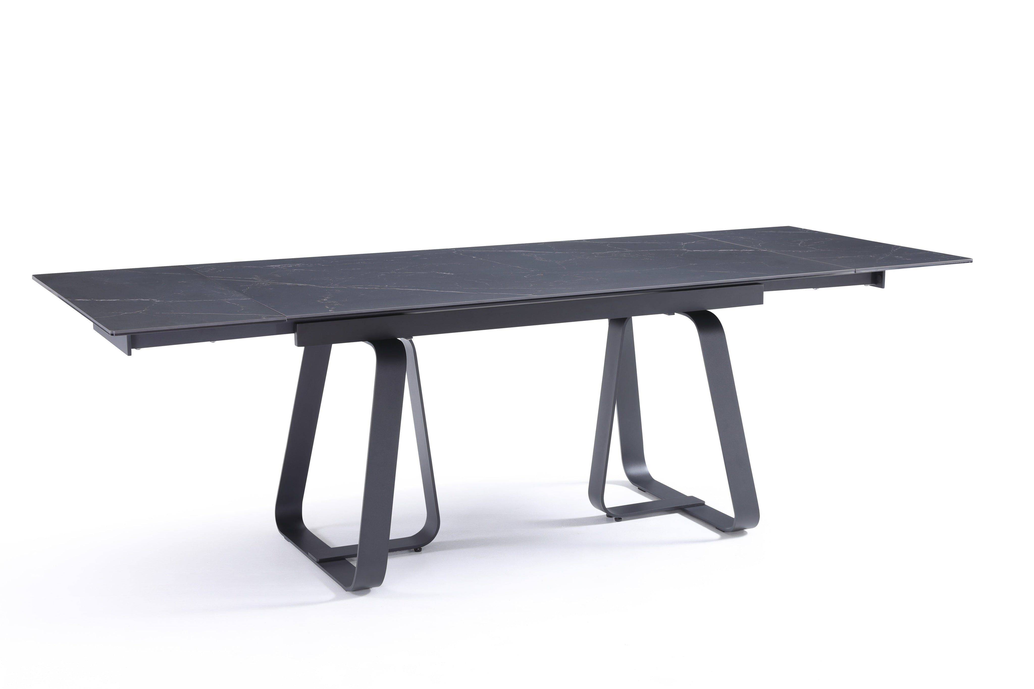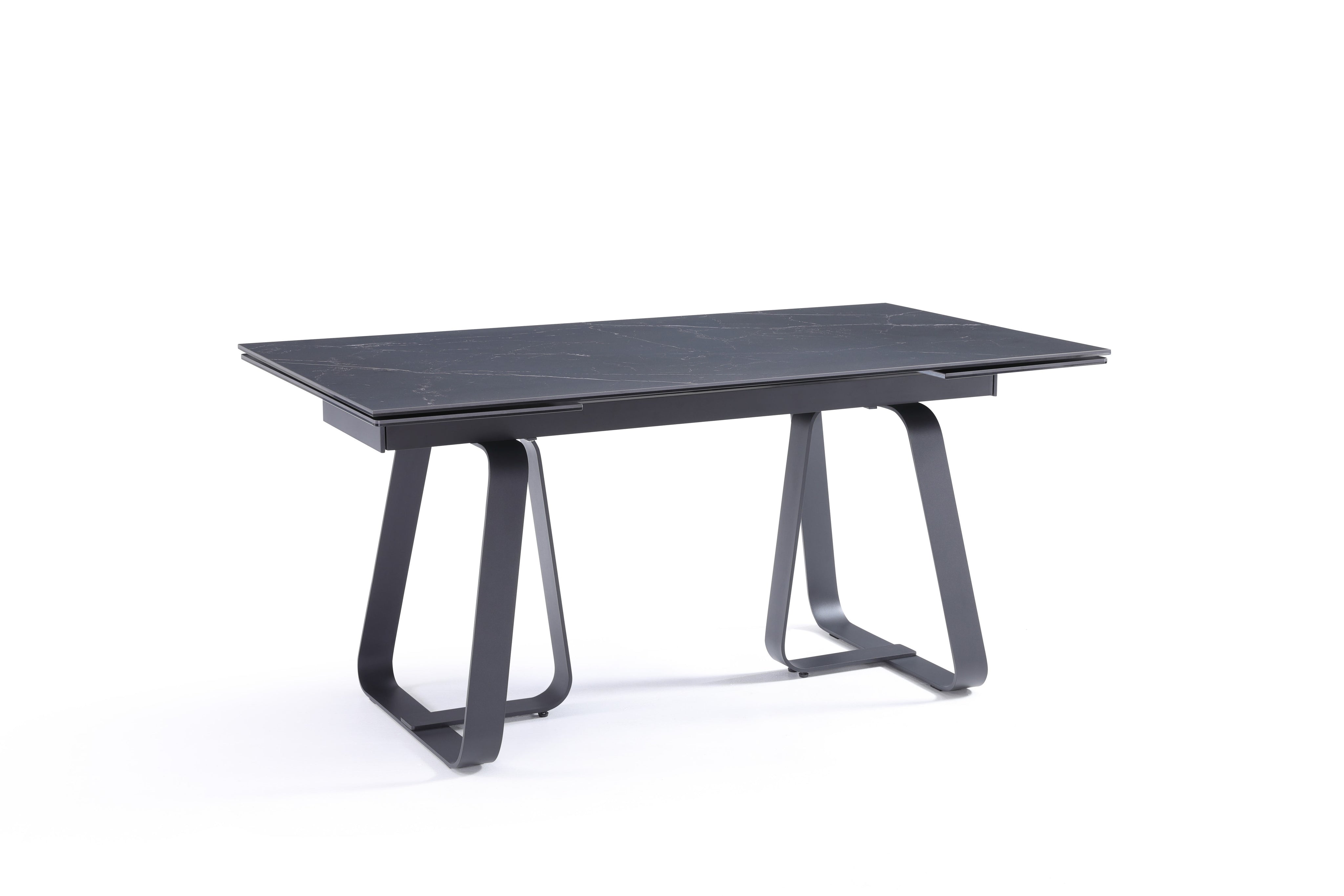 Stół Do Jadalni Ceramiczny 160–240x90 Czarny Marmur Nogi Stalowe Czarne Lerici