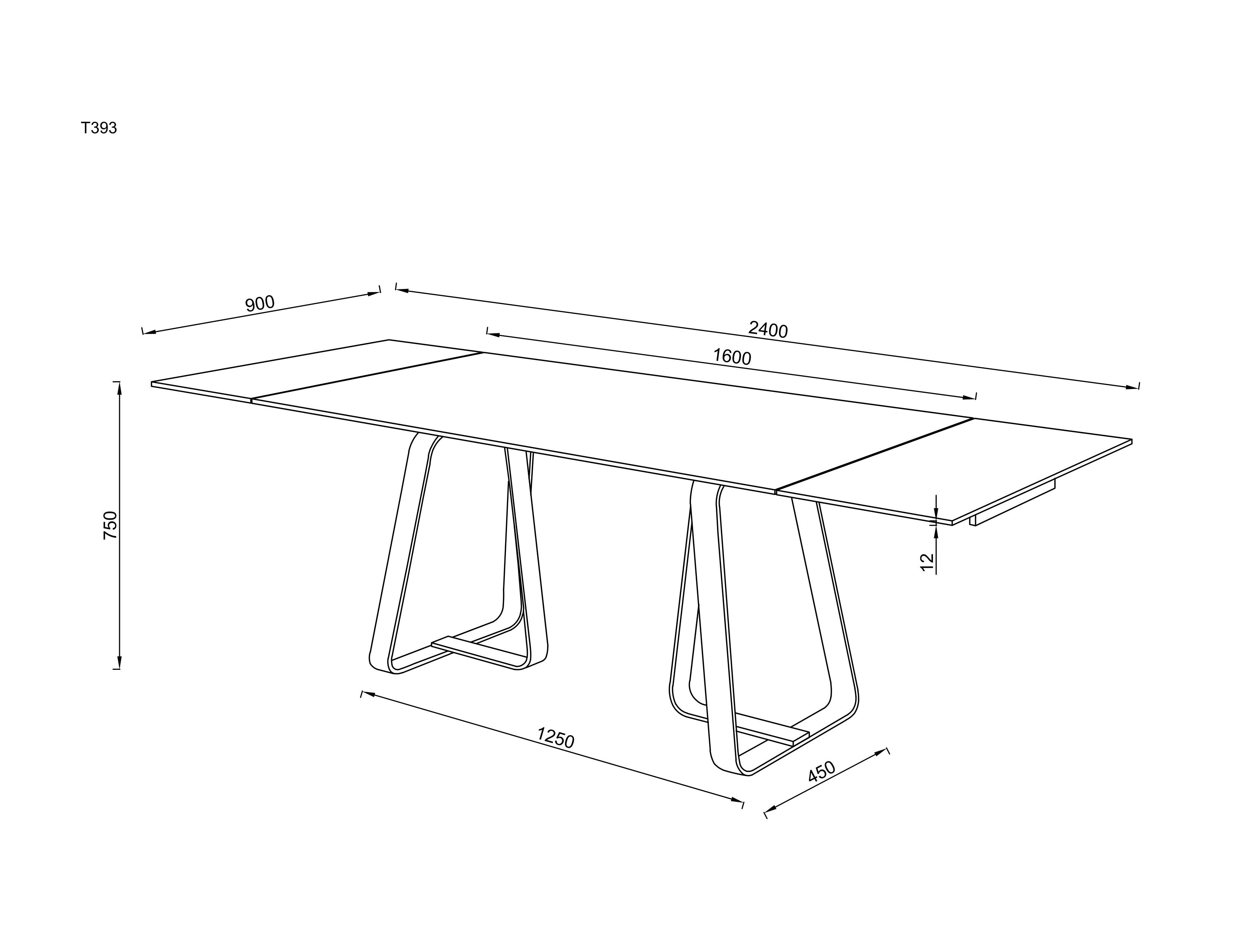 Stół Lerici rozszerza się płynnie z 160 cm do 240 cm: