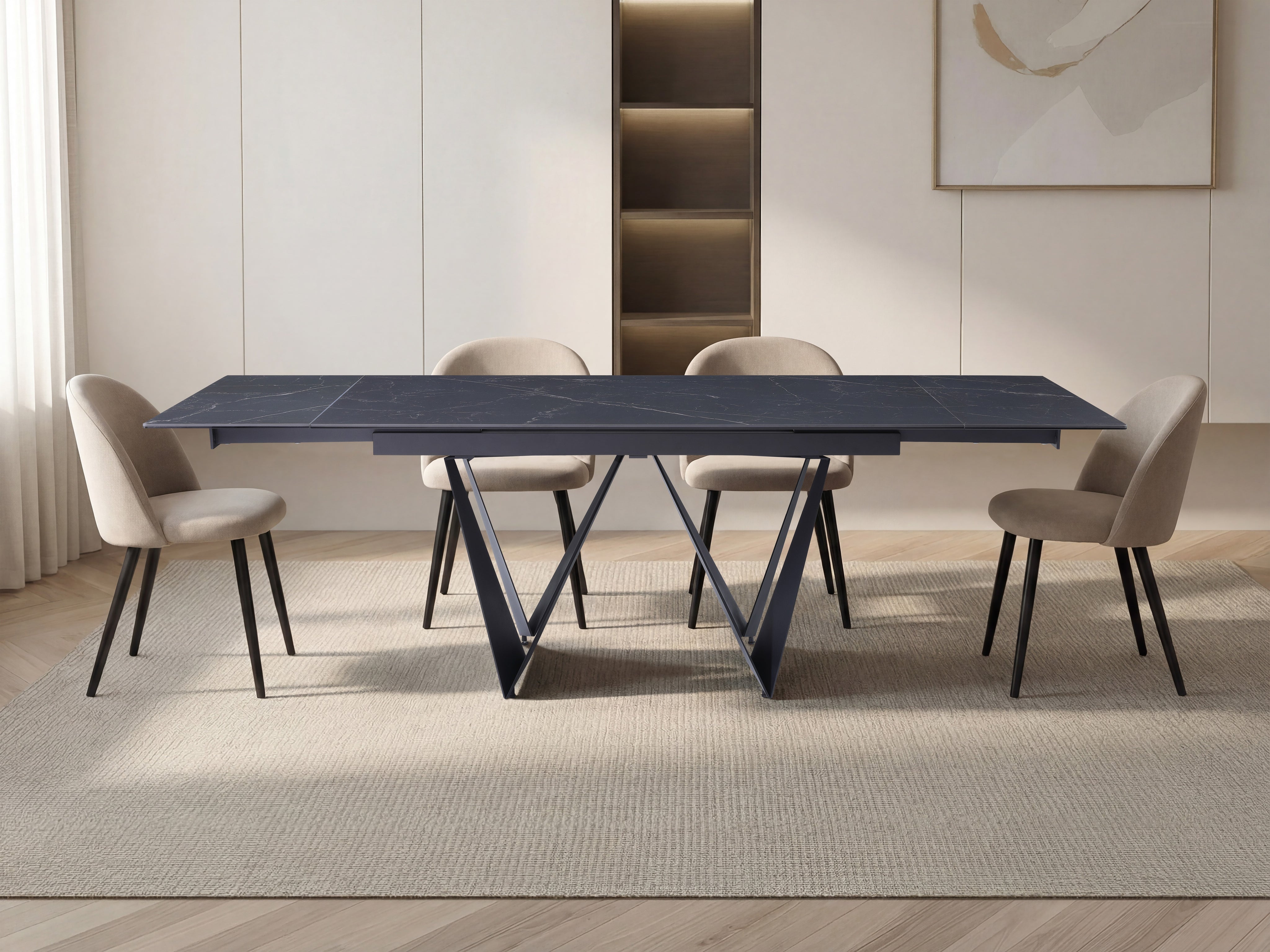 Wnieś do swojej jadalni nowy poziom elegancji dzięki rozkładanemu stołowi Portofino – produktowi zaprojektowanemu z dwuwarstwowym blatem najwyższej jakości, który przewyższa tradycyjne jednowarstwowe blaty ceramiczne pod względem trwałości, bezpieczeństwa i żywotności.