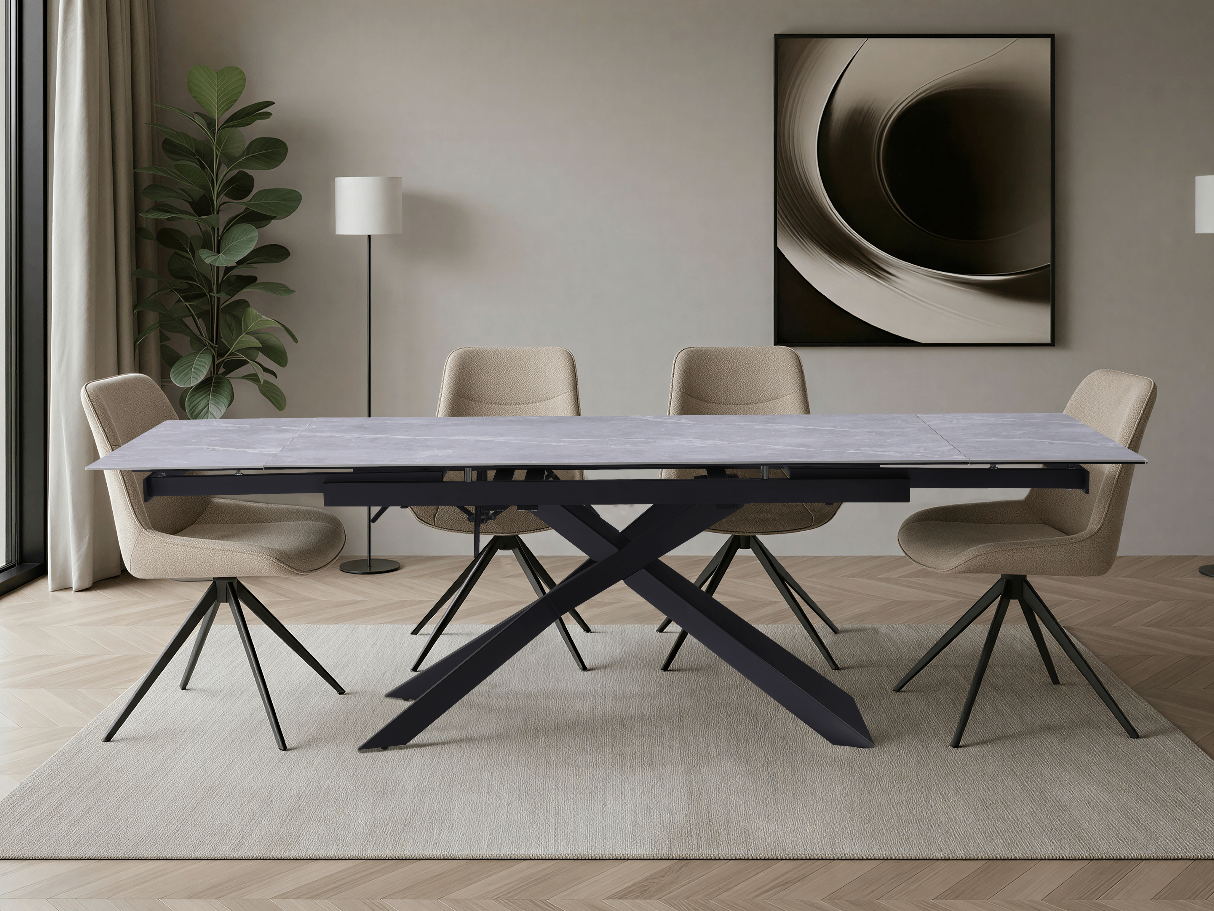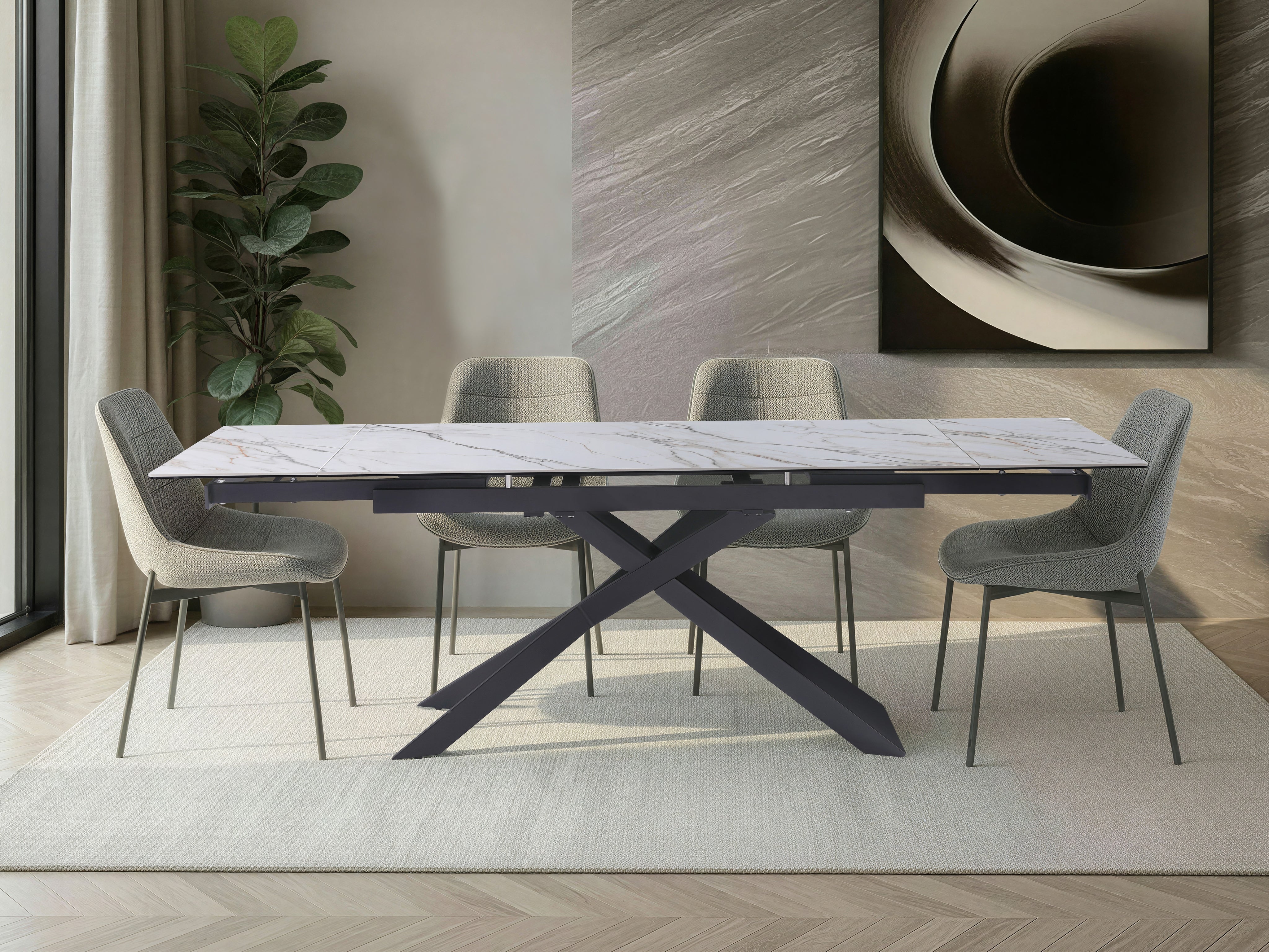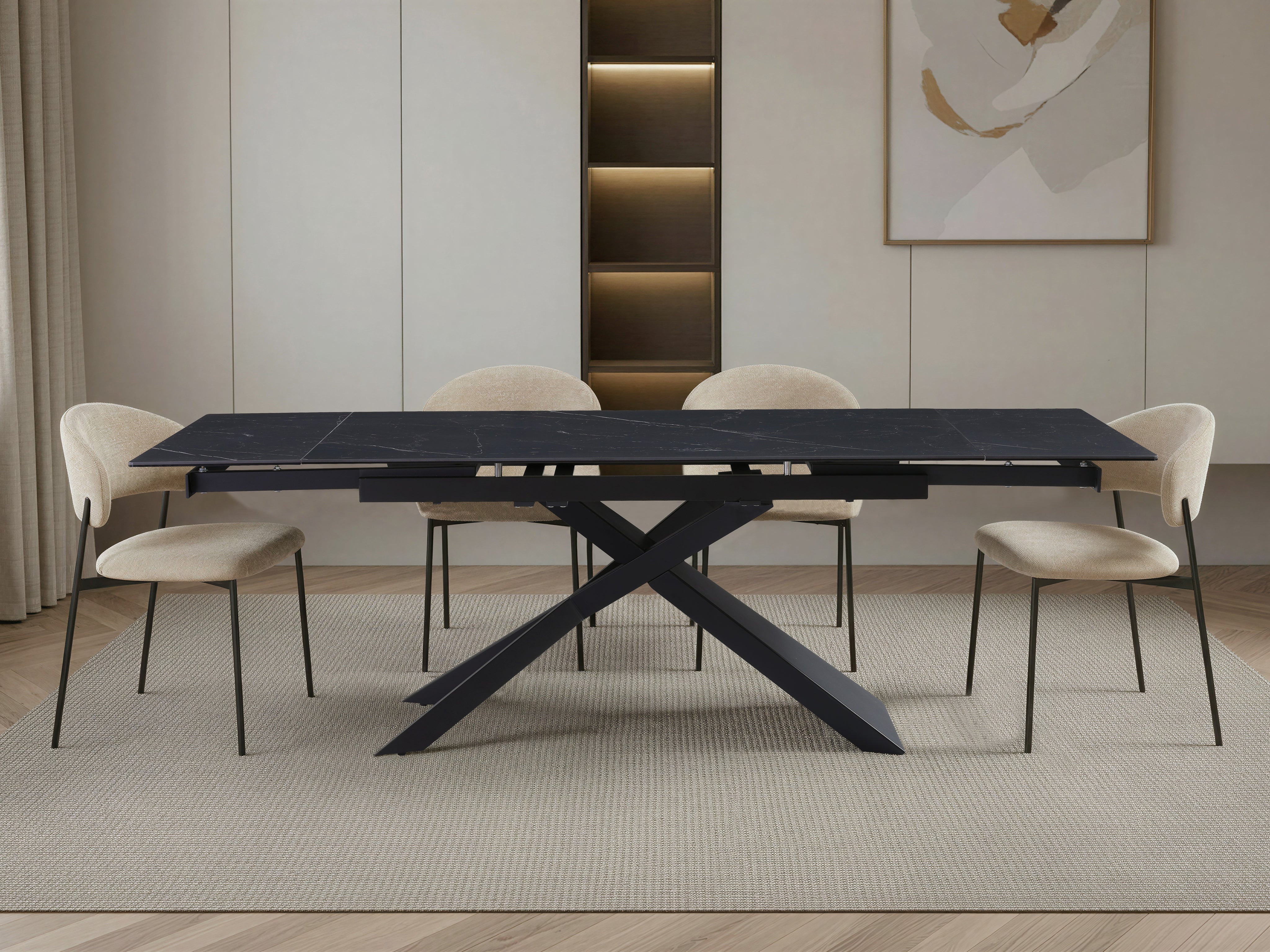 Stół Rapallo płynnie rozszerza się z 160 cm do 240 cm, dzięki czemu idealnie dopasuje się do codziennego użytku oraz większych spotkań: