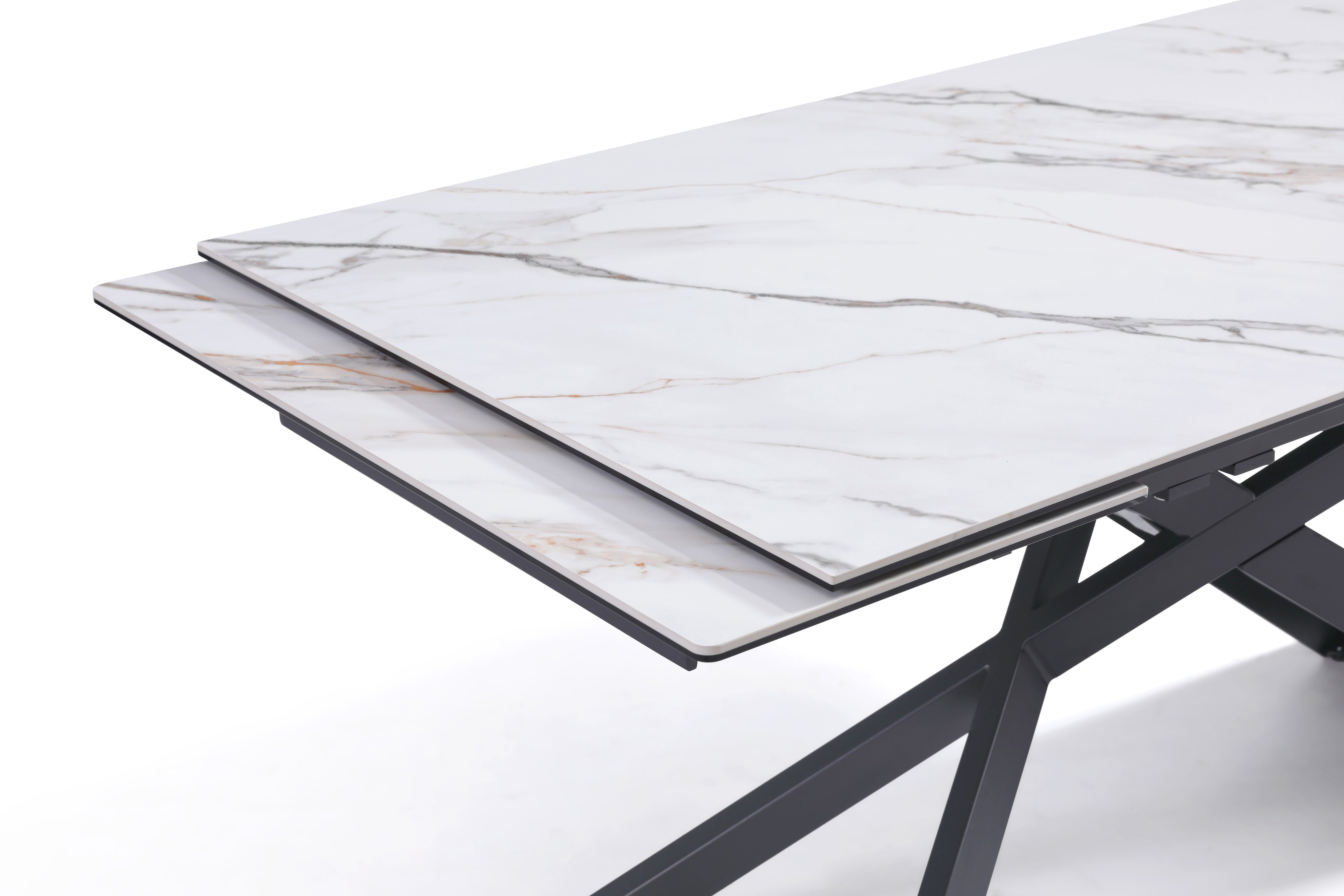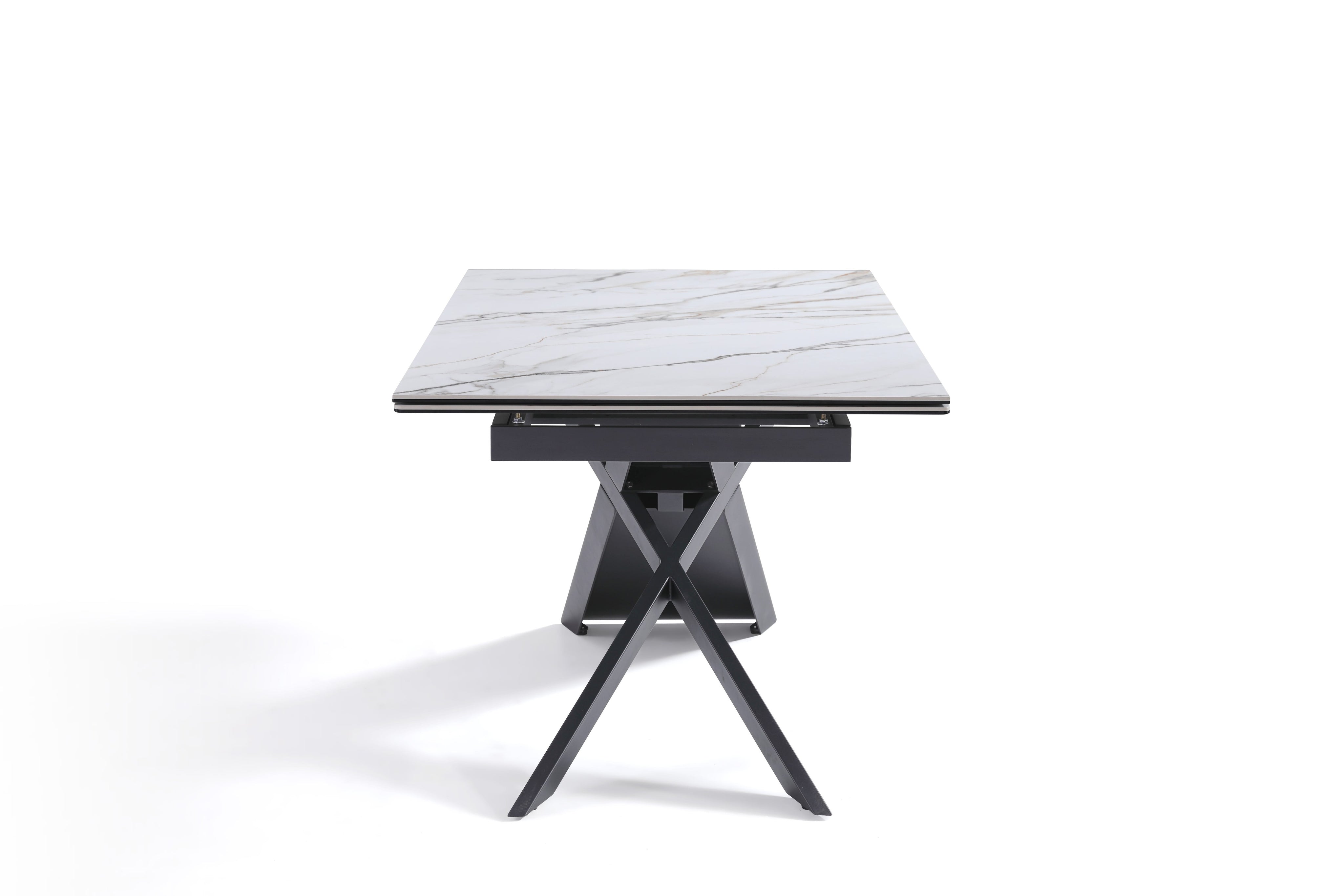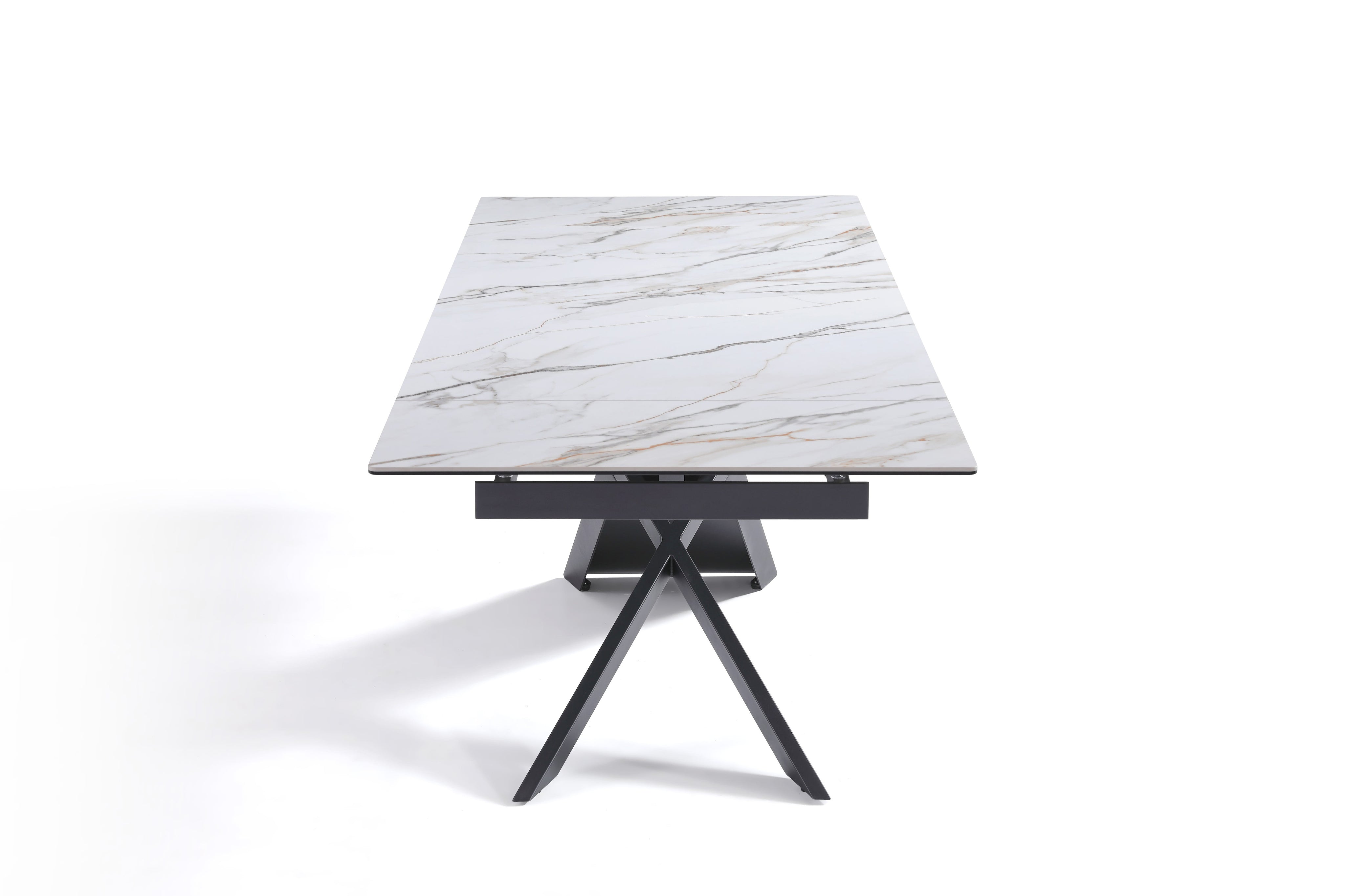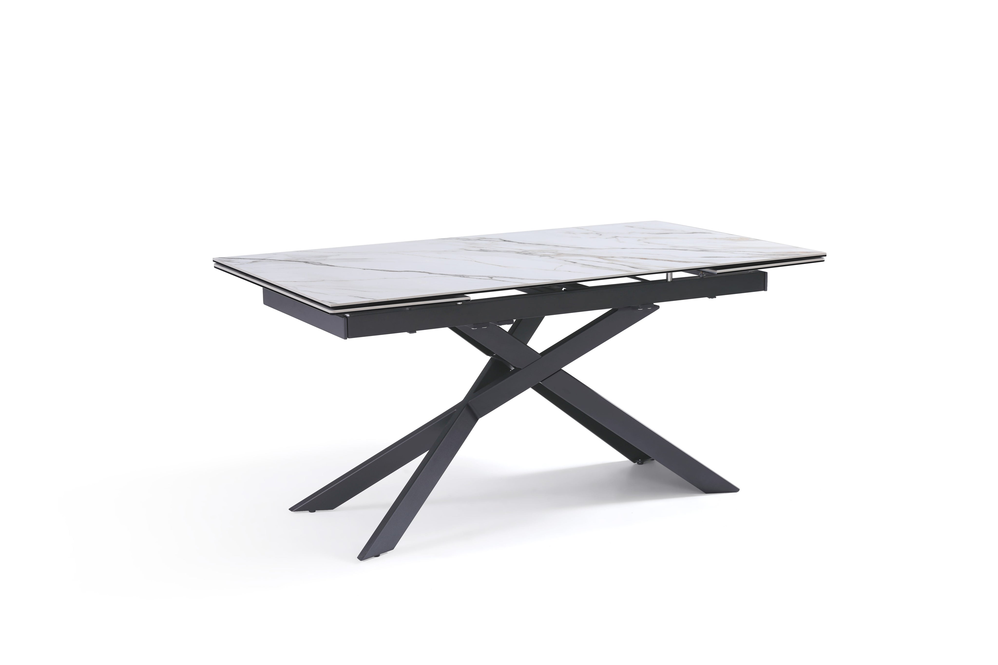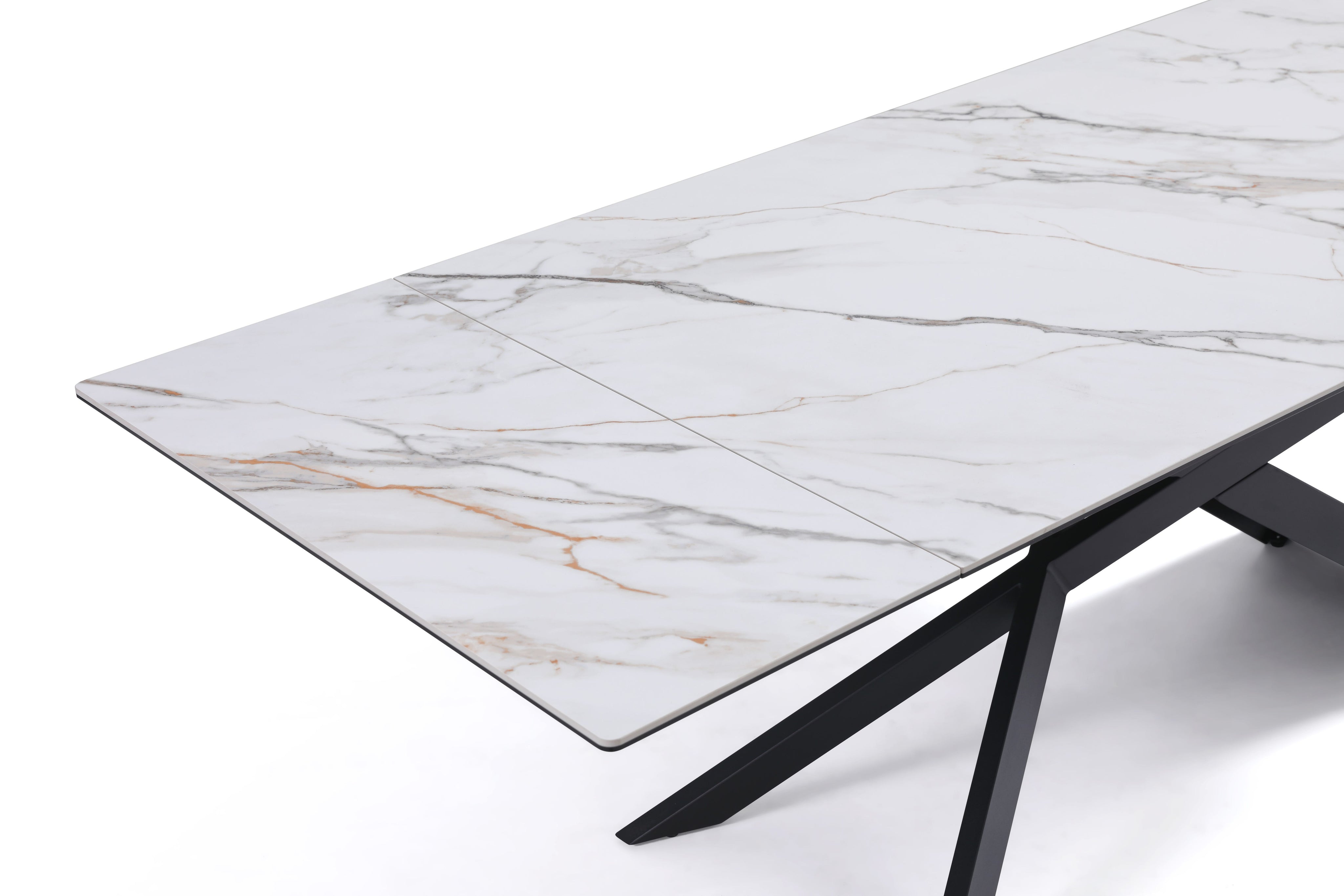 Stół Do Jadalni Ceramiczny 160–240x90 Biały Marmur Nogi Metalowe Czarne Rapallo
