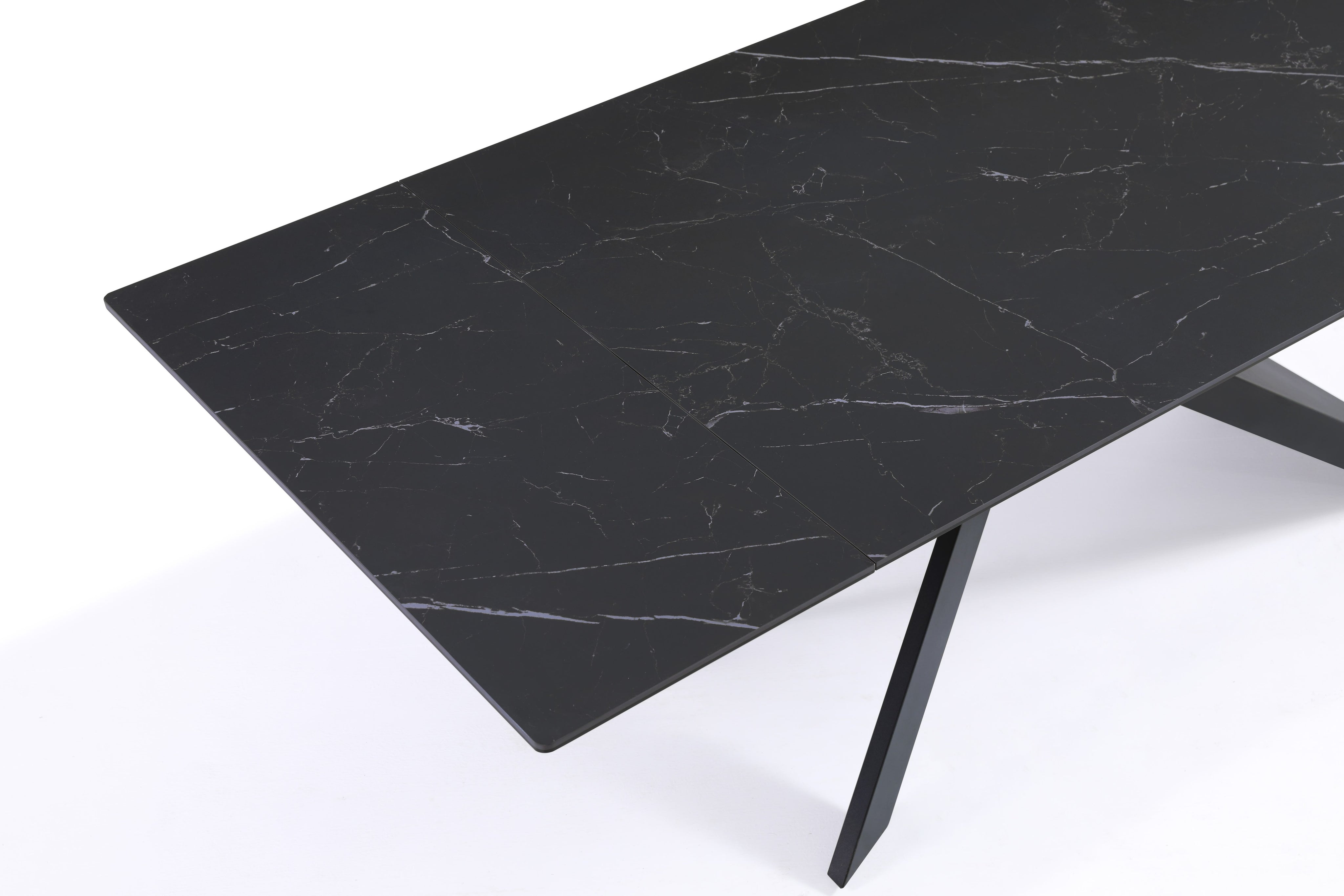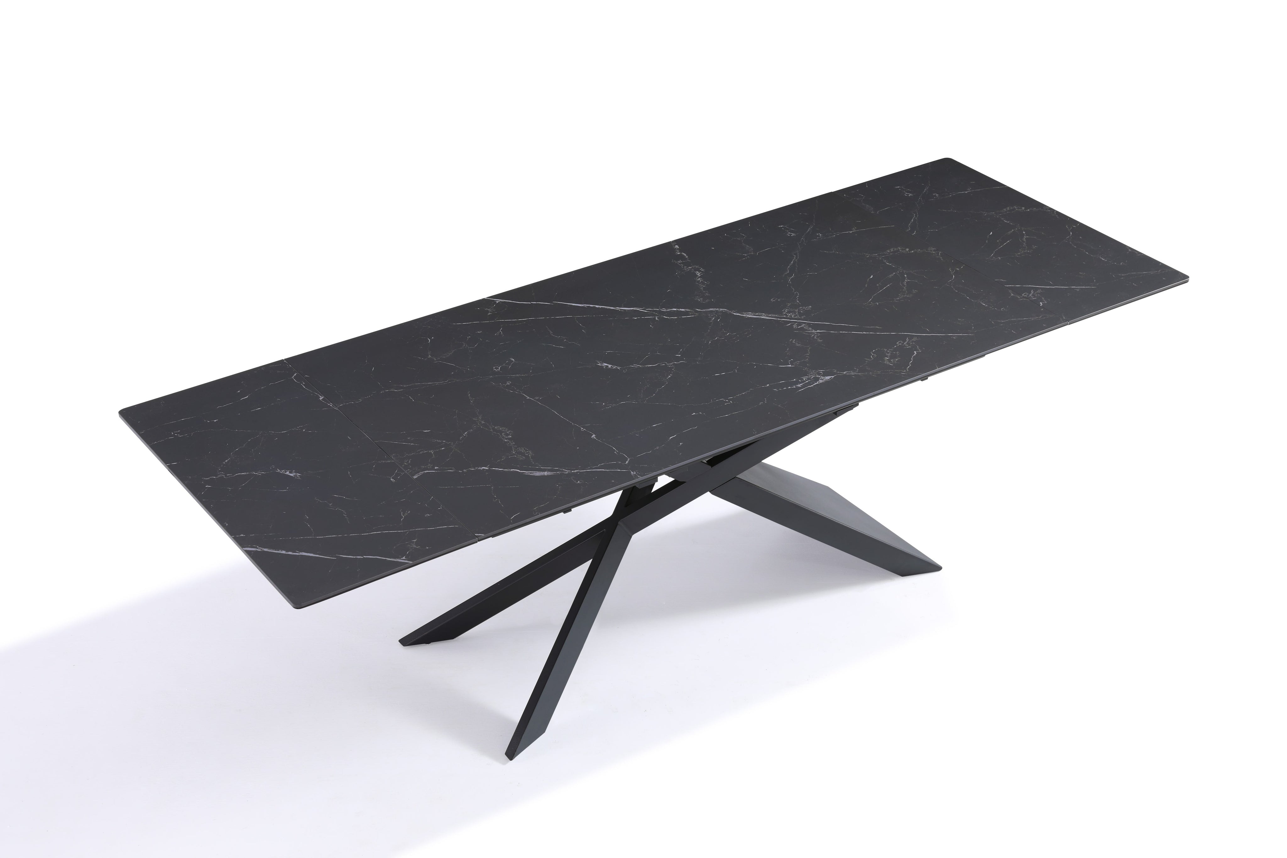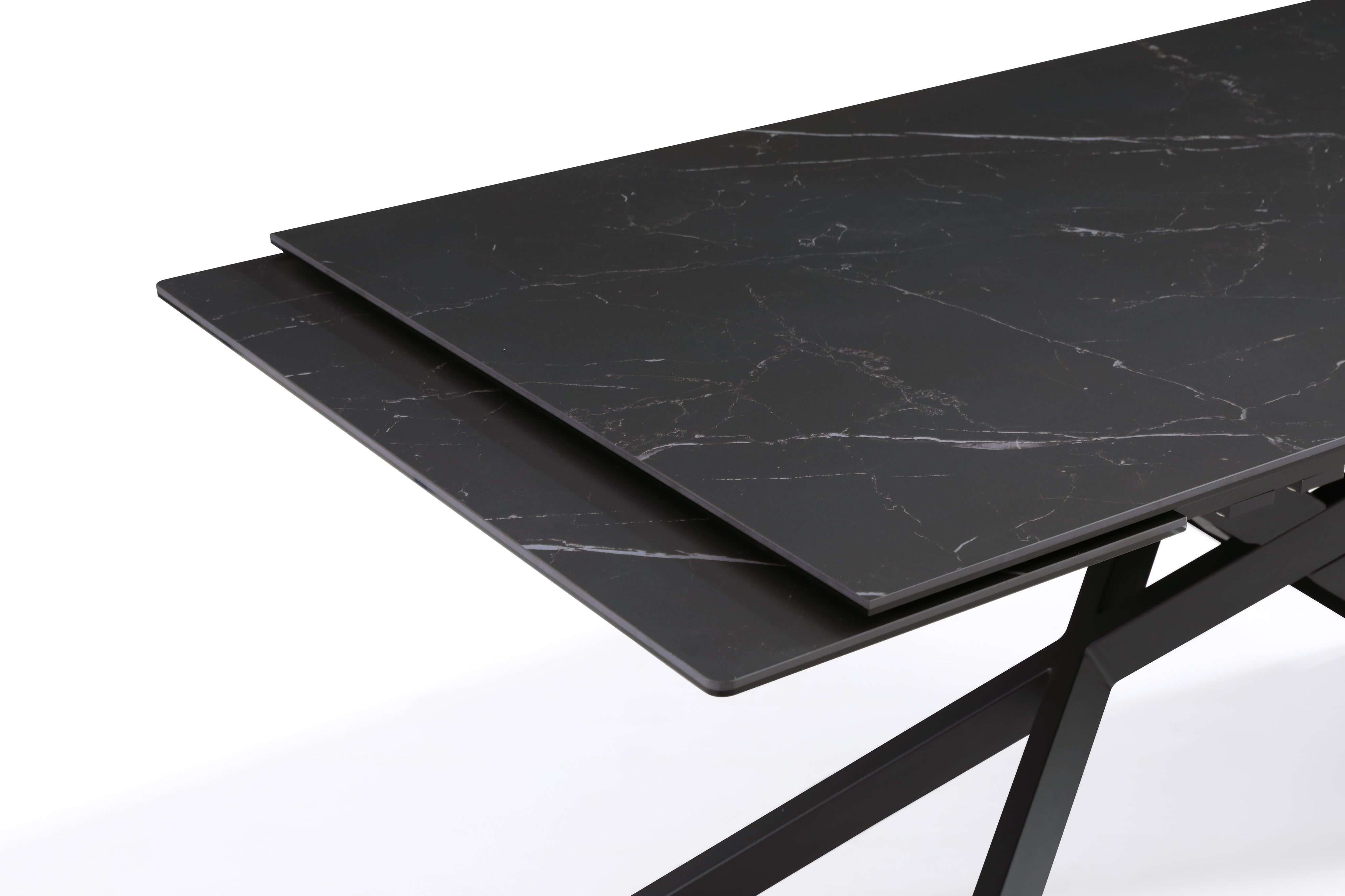 - Stół Do Jadalni Ceramiczny 160–240x90 Marmur Nogi Metalowe Czarne Rapallo