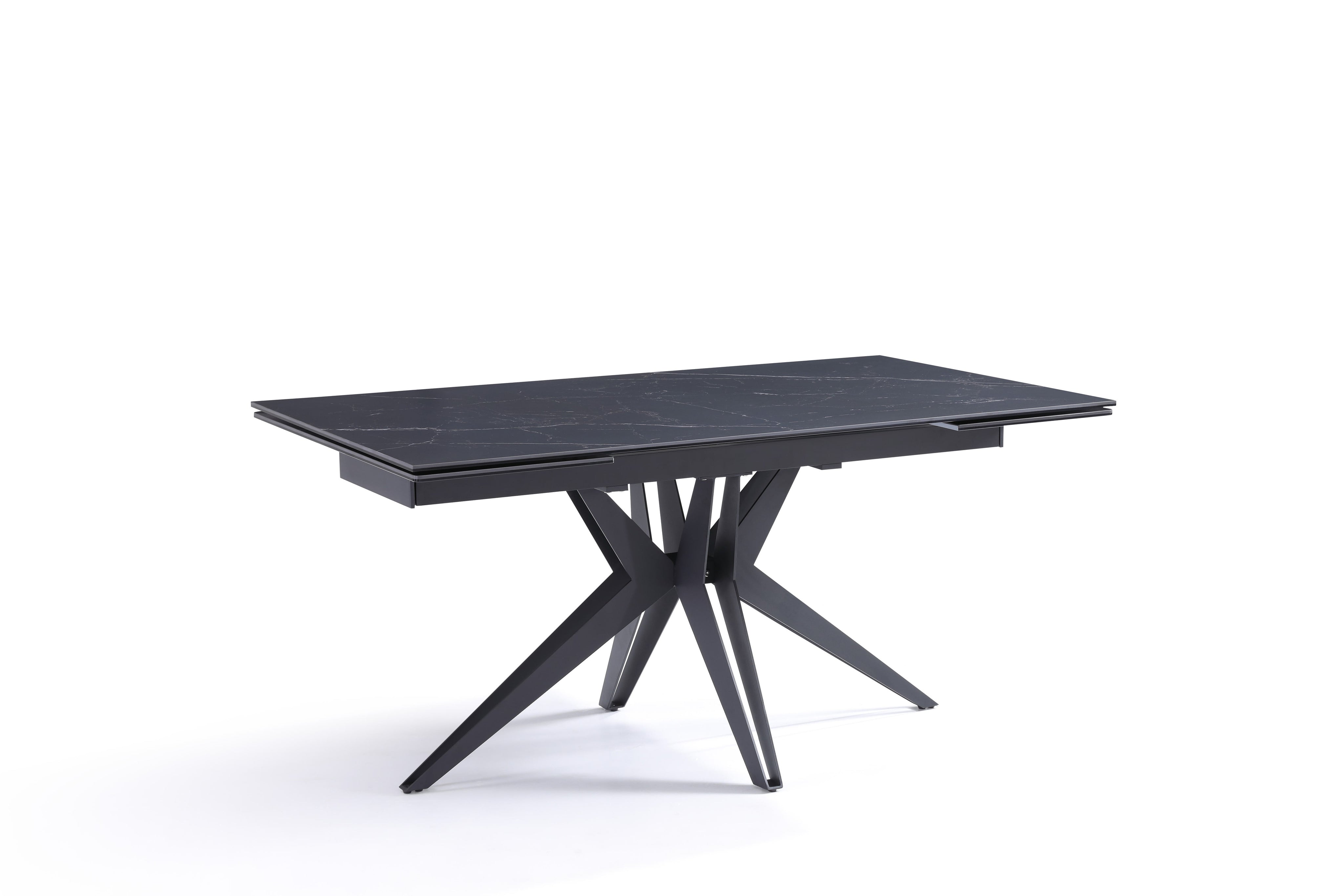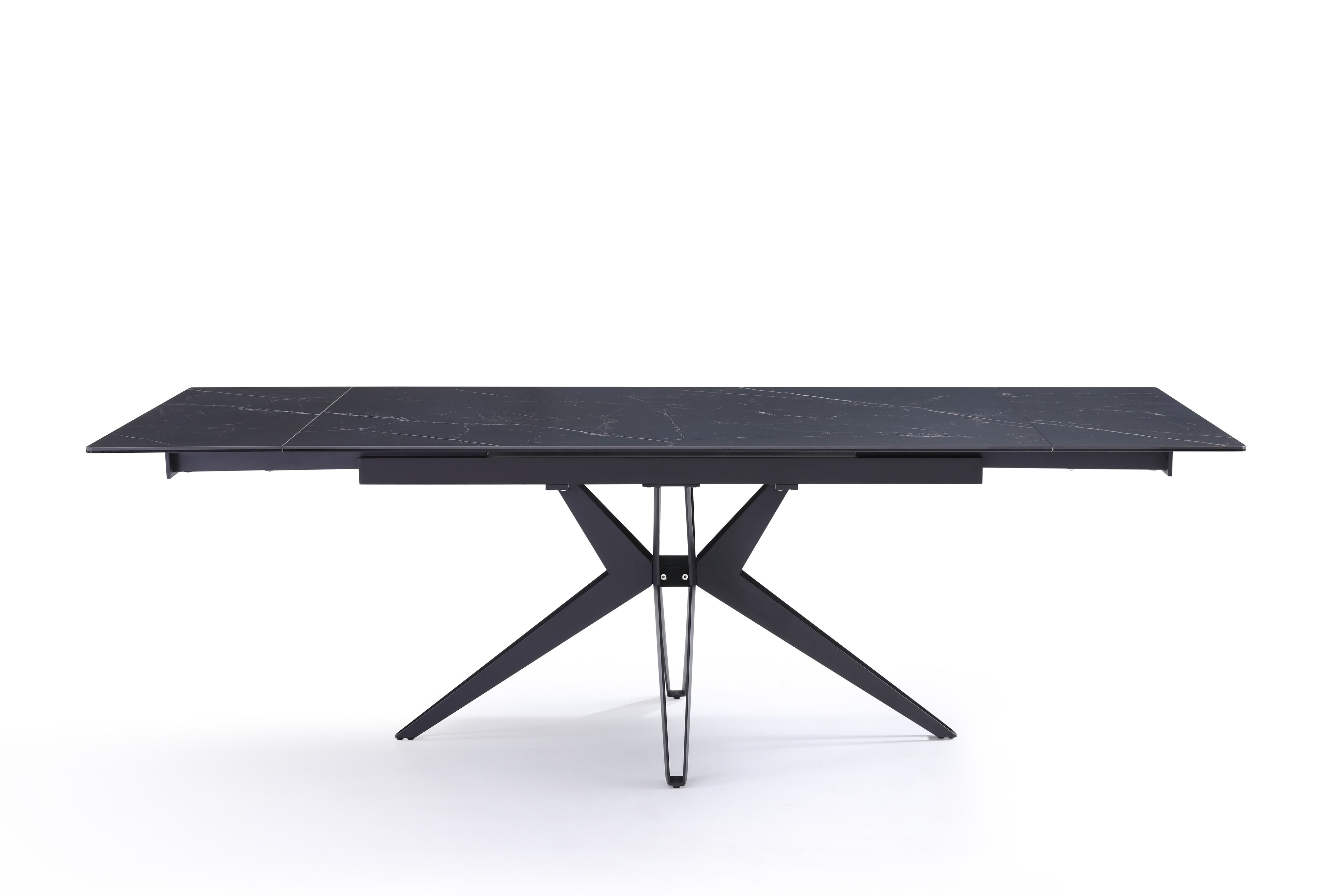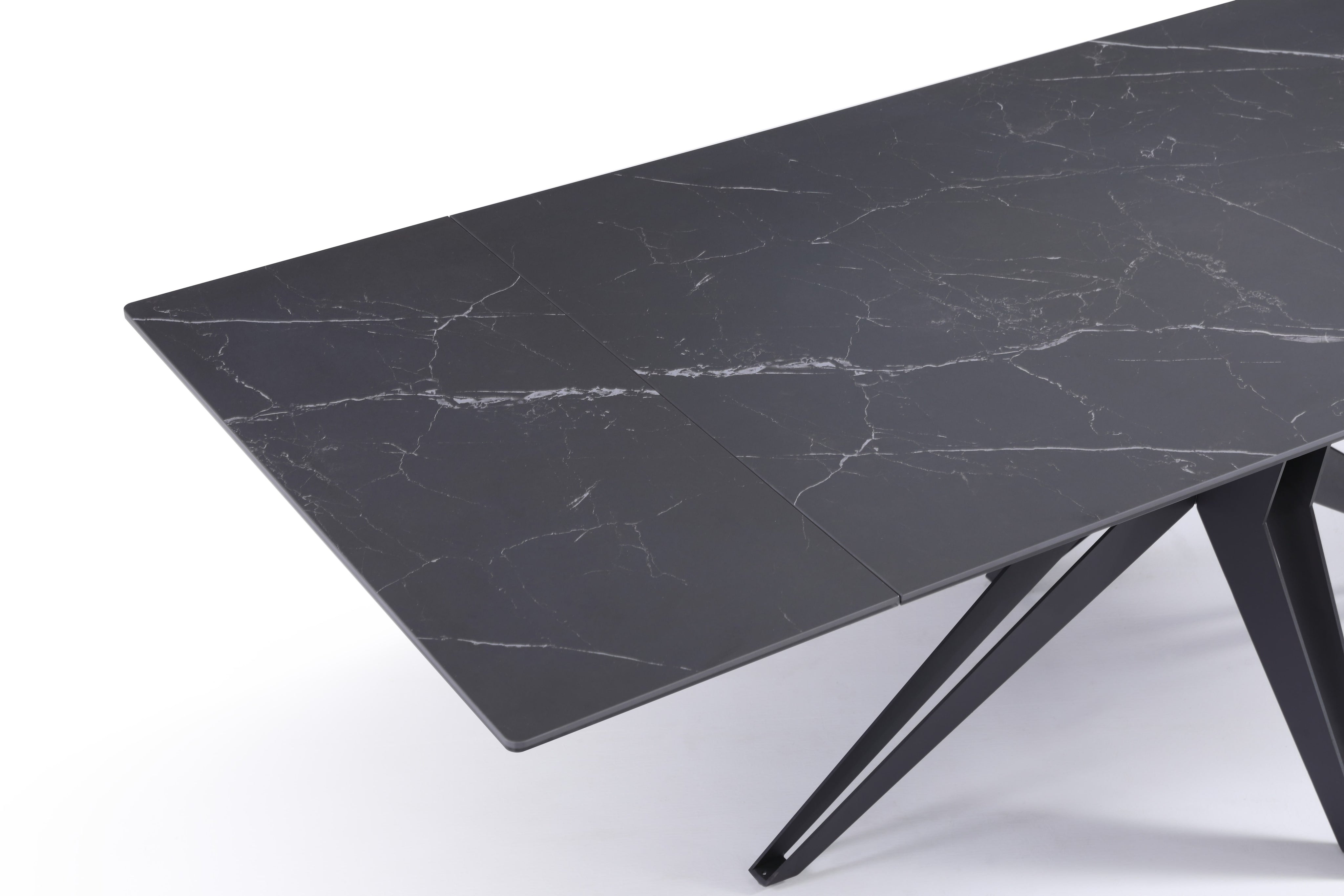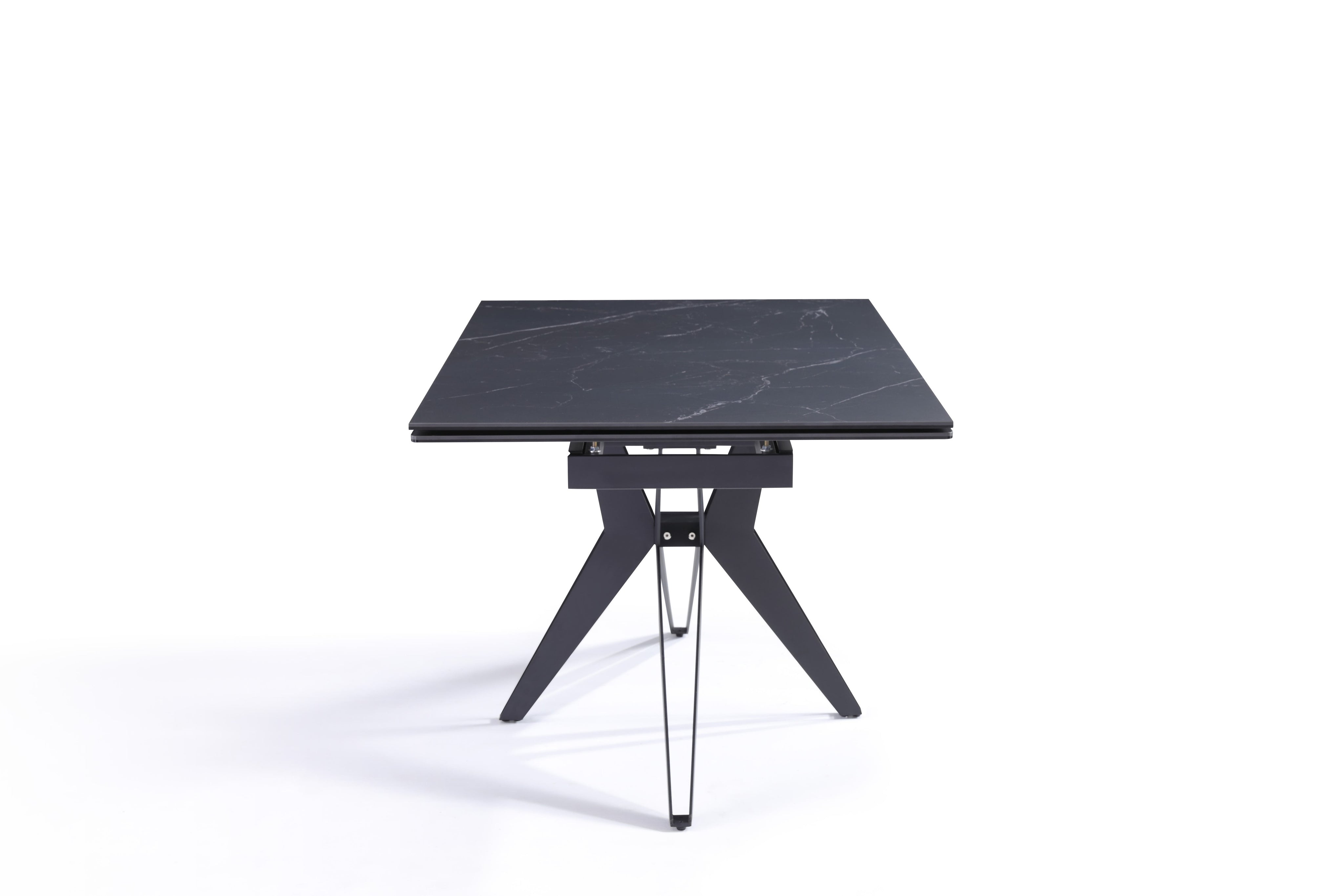 Stół Do Jadalni Ceramiczny 160–240x90 Czarny Marmur Nogi Metalowe Czarne Sorrento