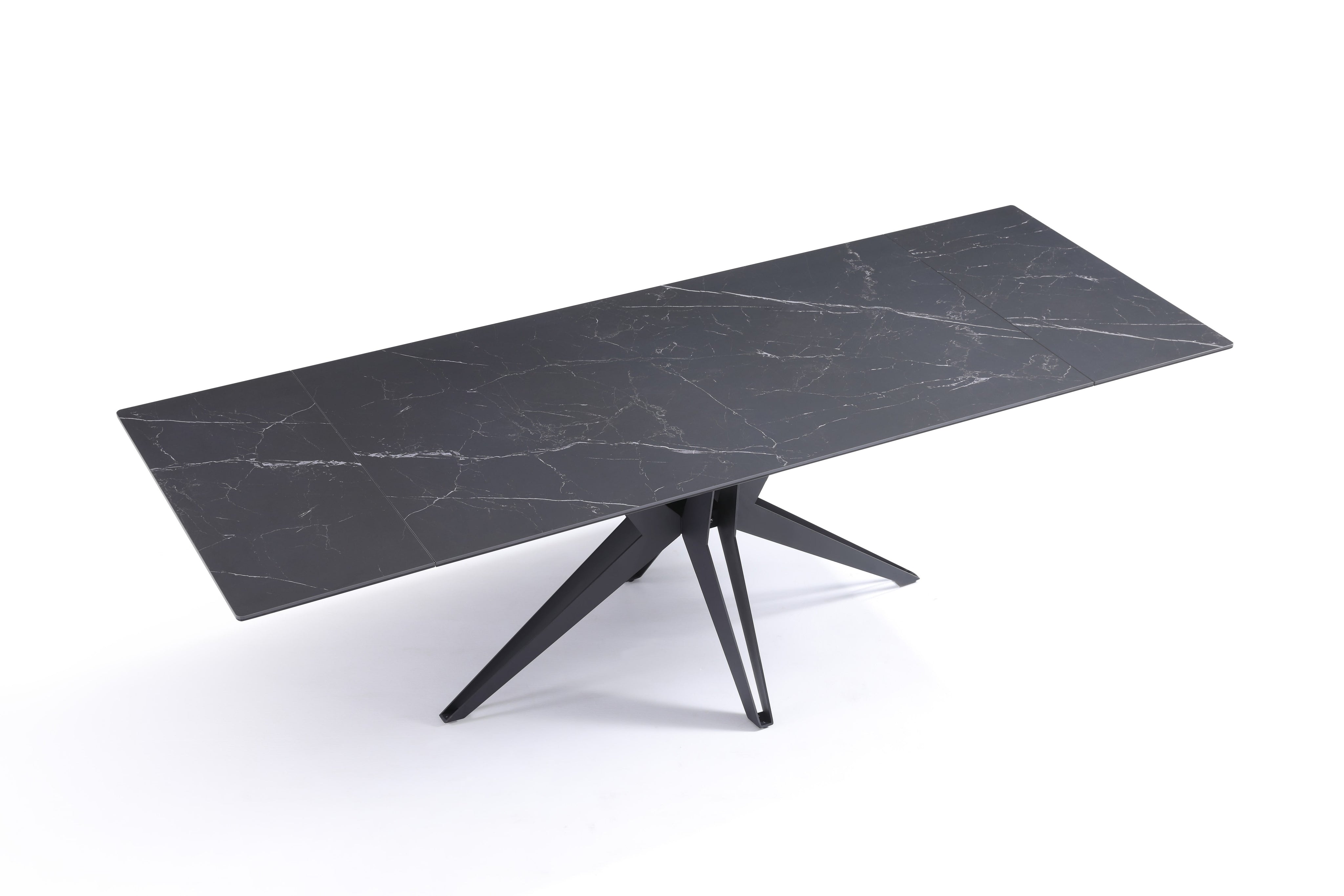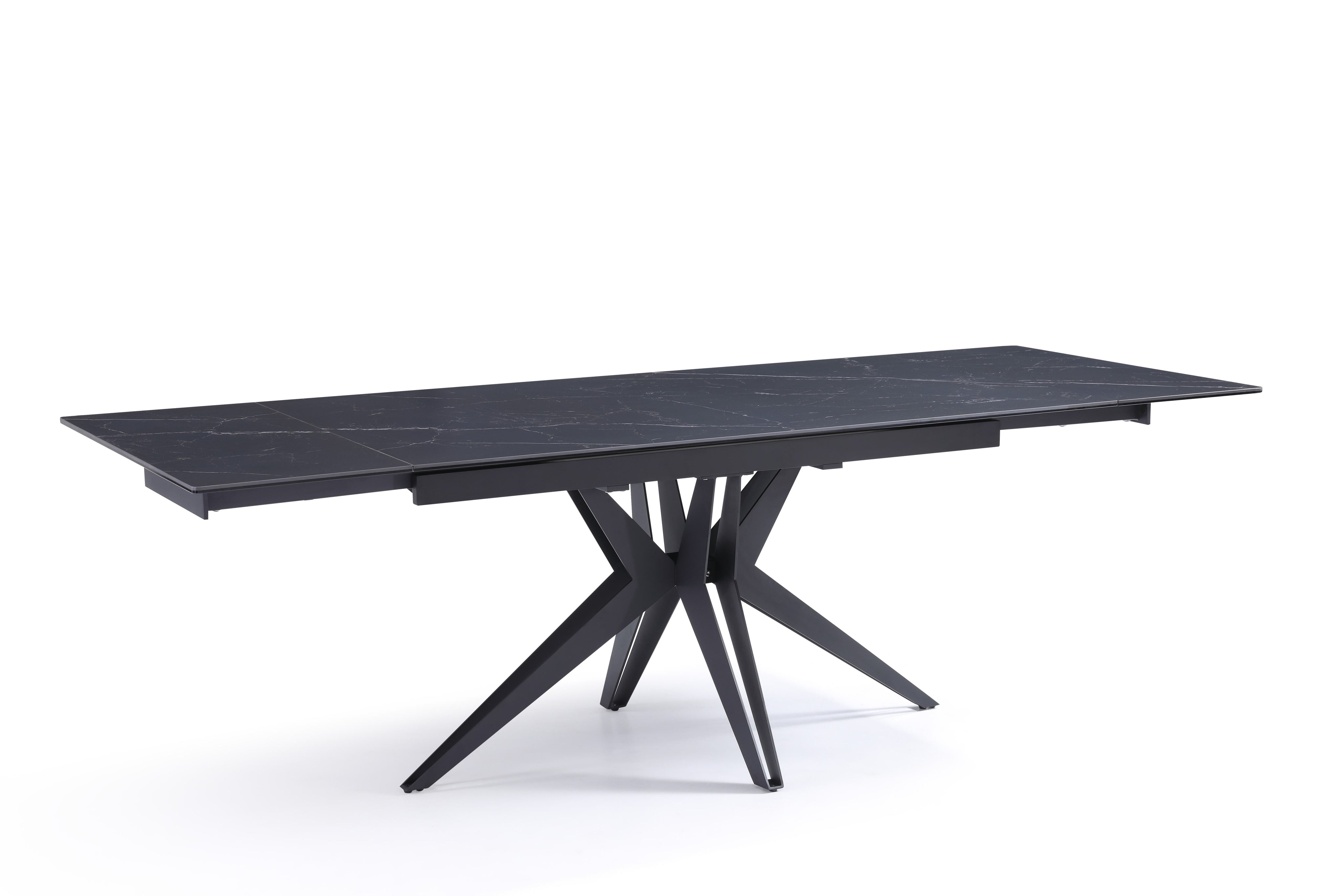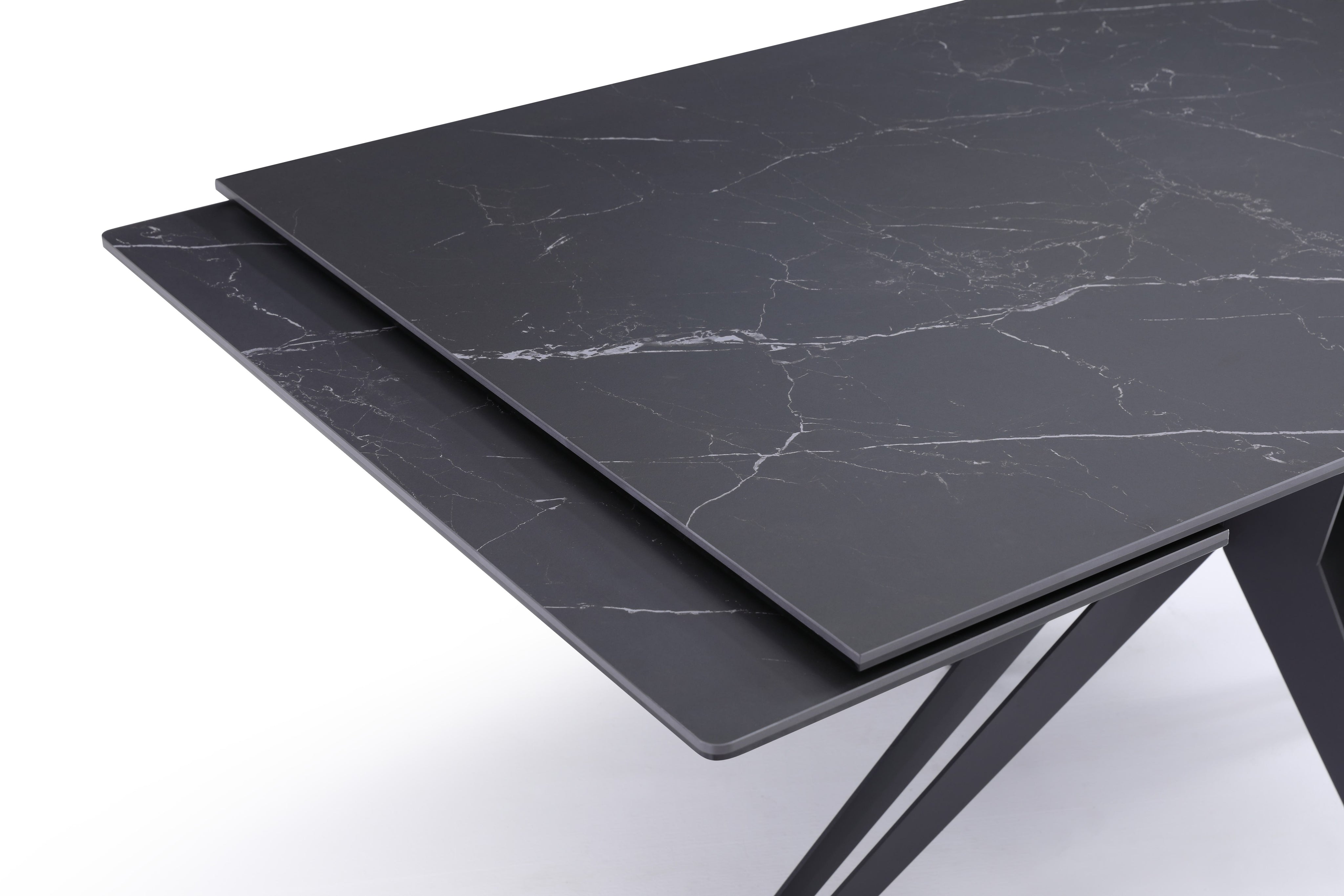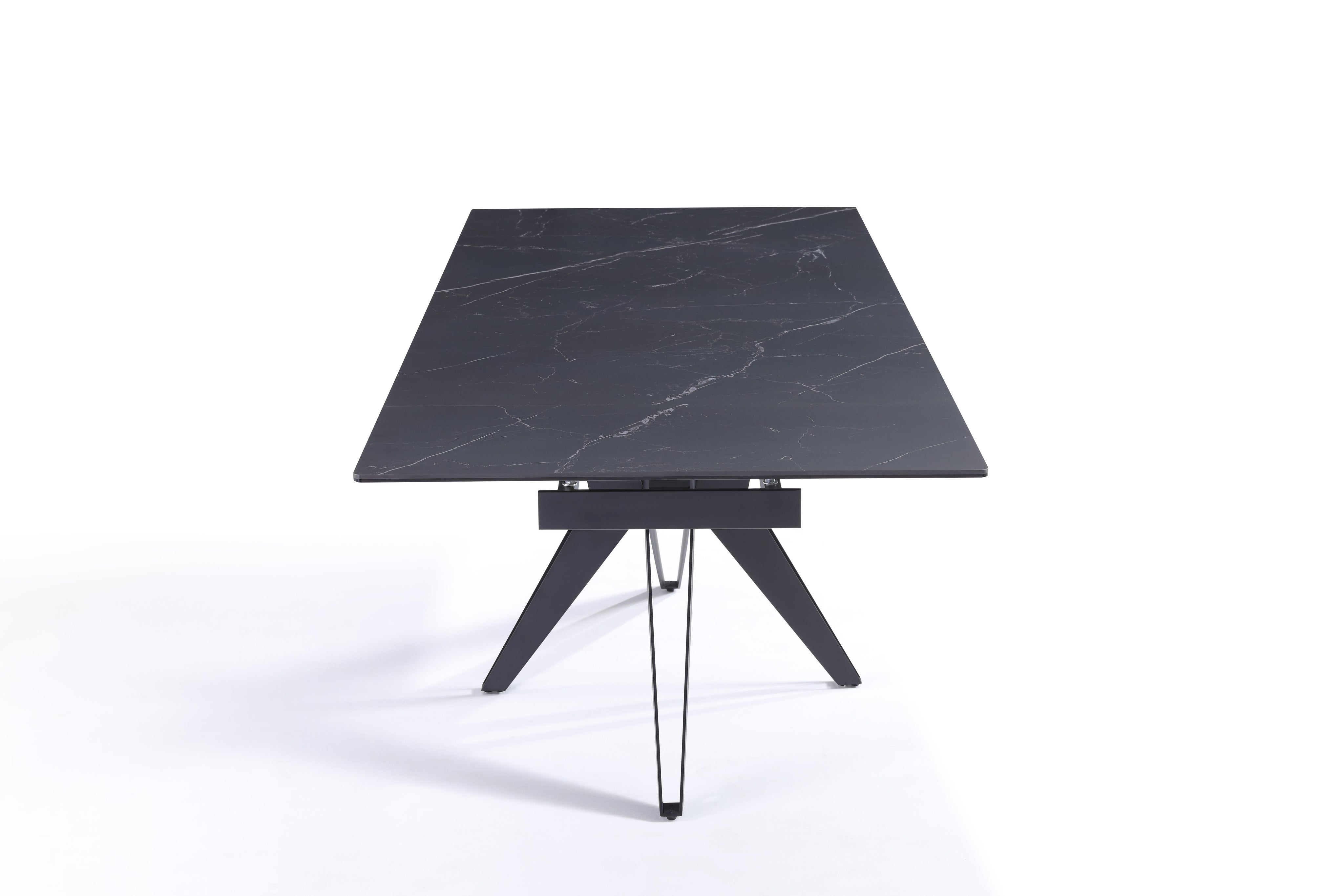 Stół Do Jadalni Ceramiczny 160–240x90 Czarny Marmur Nogi Metalowe Czarne Sorrento