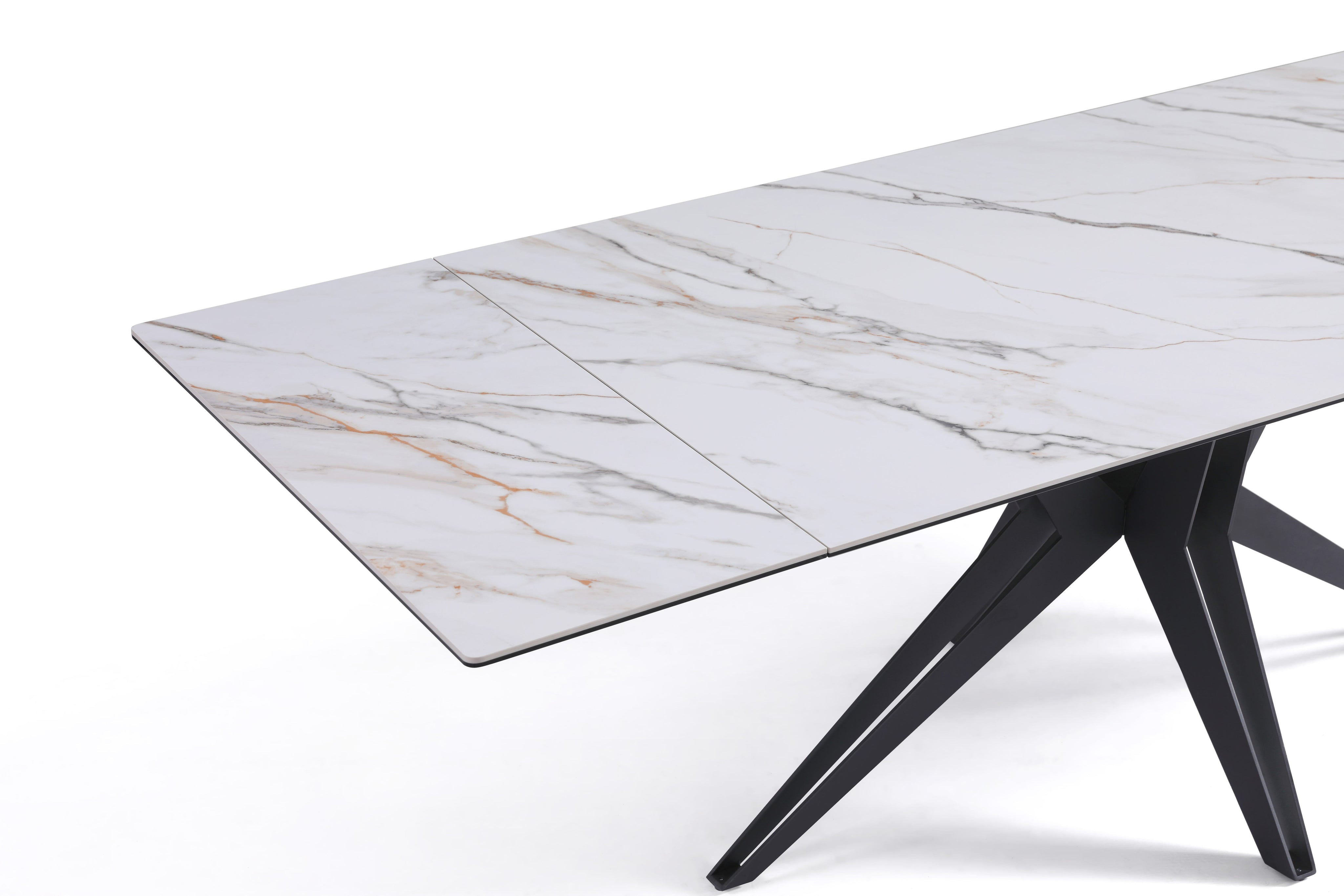 - Stół Do Jadalni Ceramiczny 160–240x90 Marmur Nogi Metalowe Czarne Sorrento