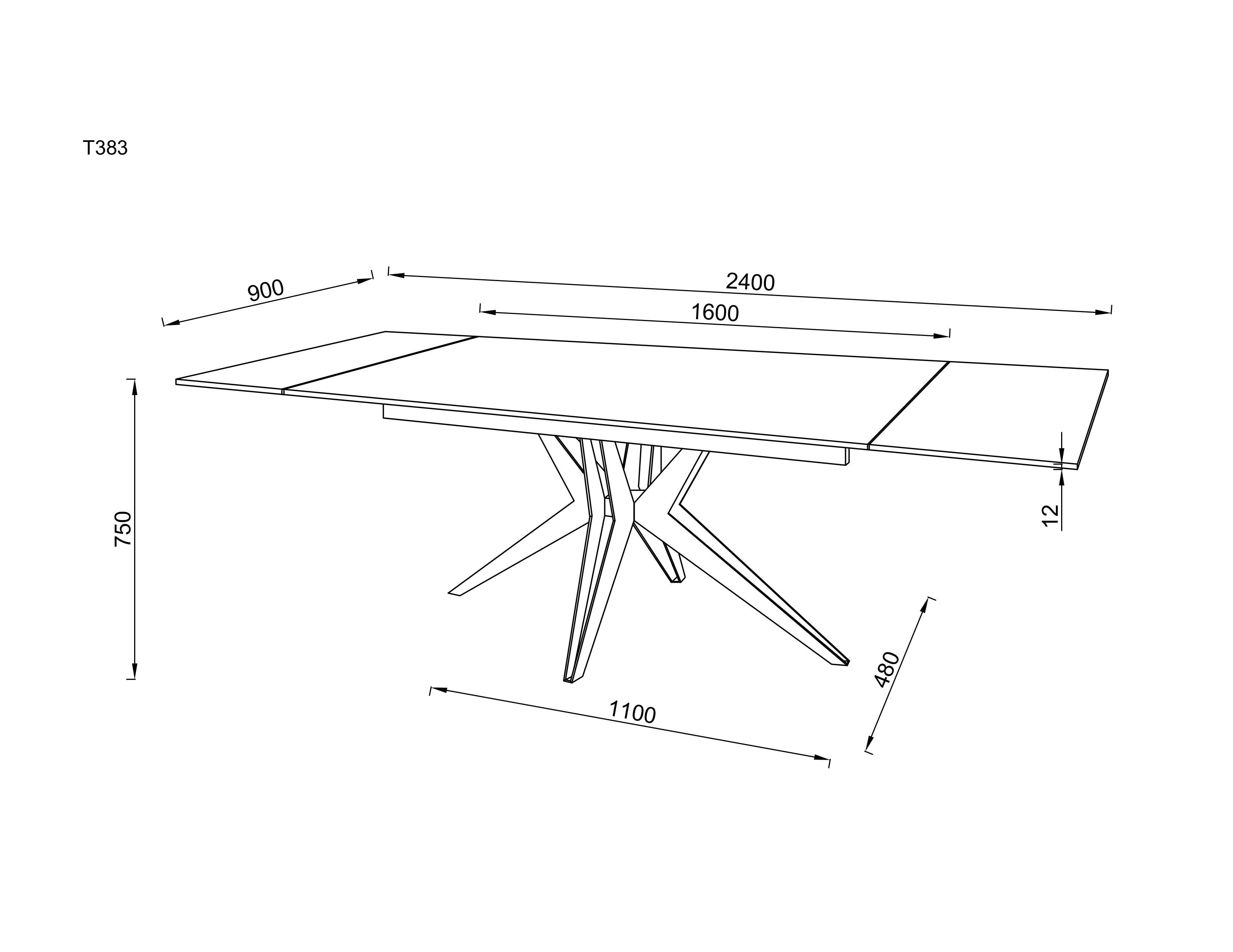 Stół Sorrento rozszerza się płynnie z 160 cm do 240 cm: