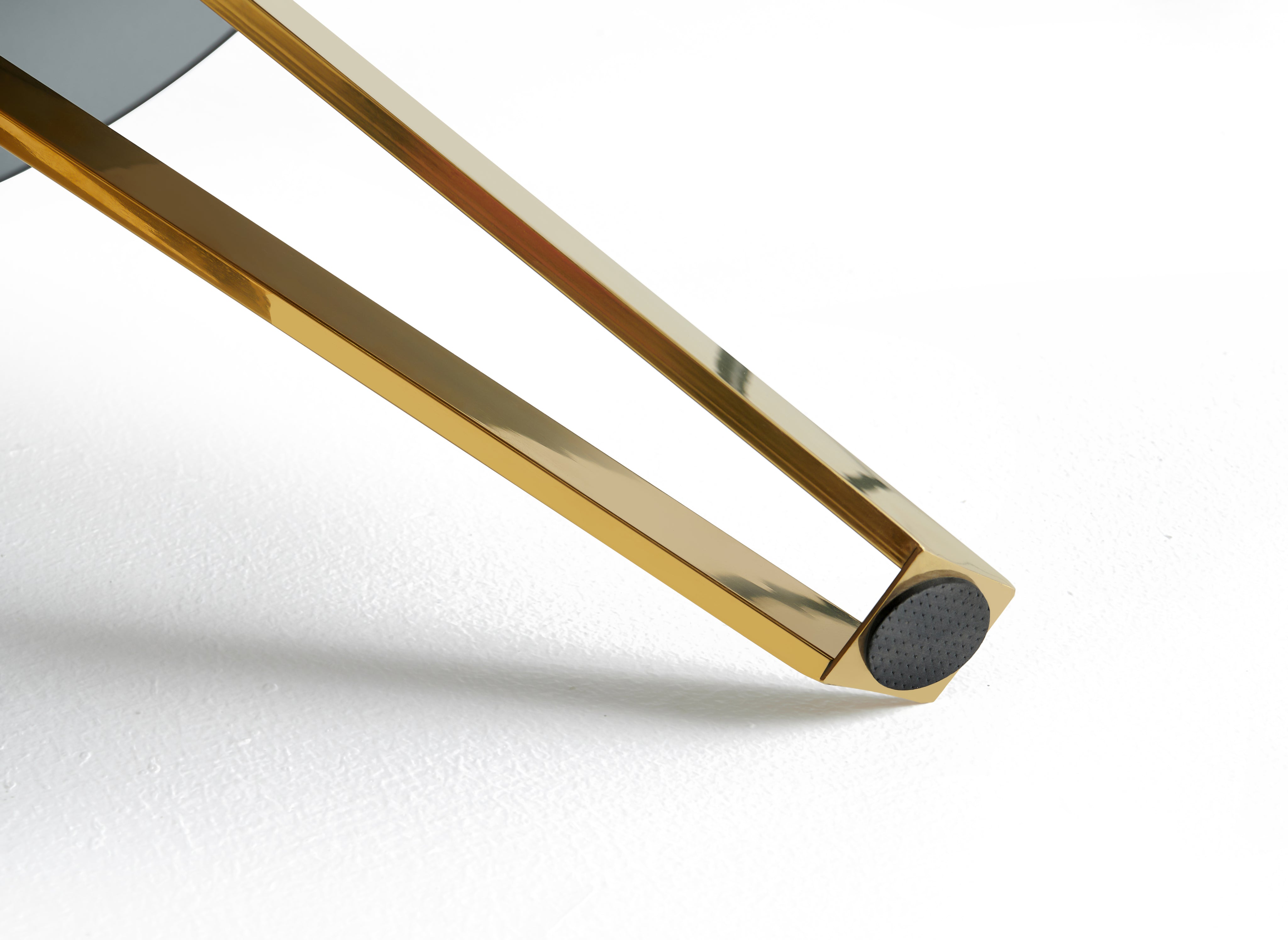Metalowy stelaż w złotym wykończeniu pełni zarówno funkcję nośną, jak i dekoracyjną. Stabilna, krzyżowa forma podstawy zapewnia bezpieczeństwo i komfort użytkowania. Zestaw BALANCE stanowi harmonijne połączenie estetyki i funkcjonalności.