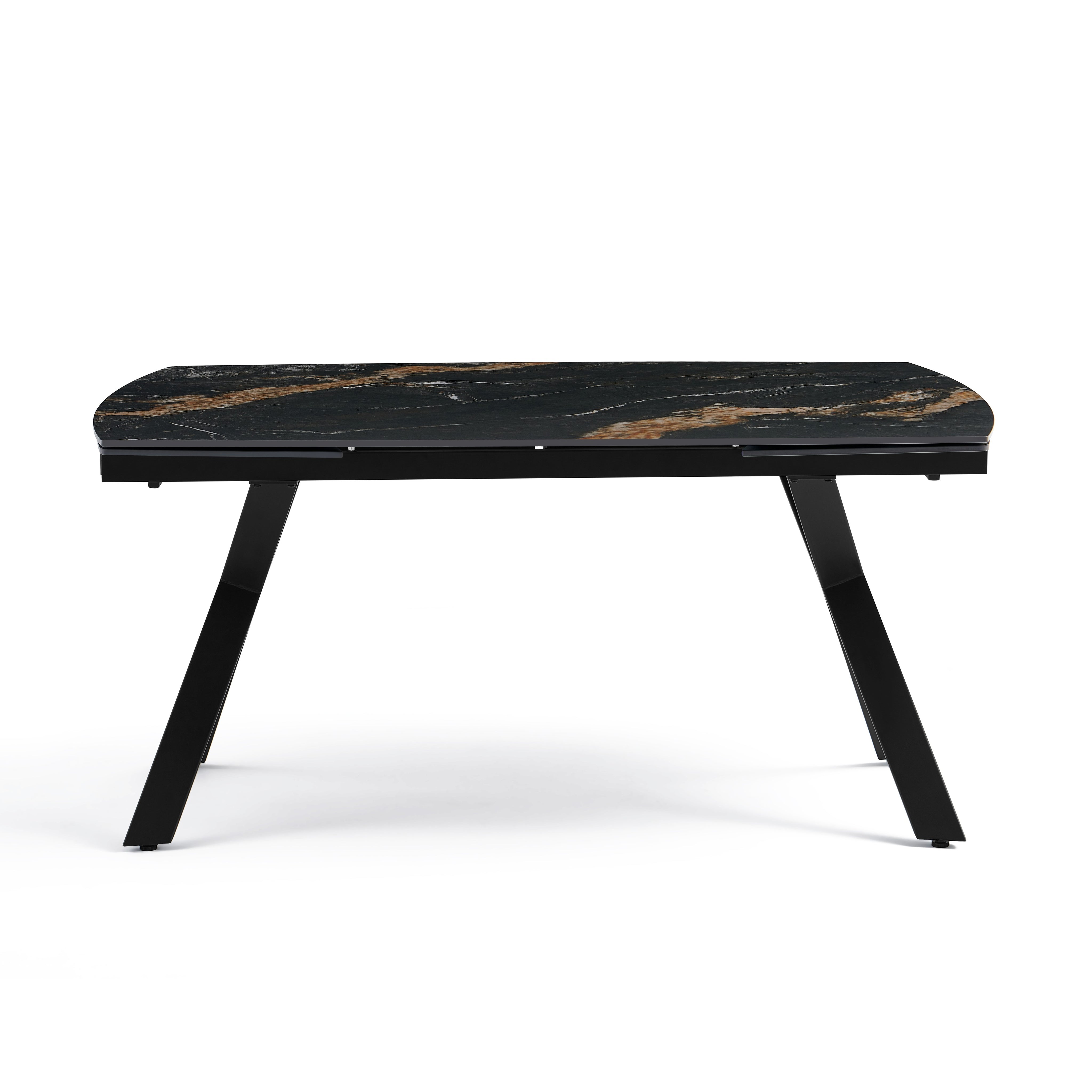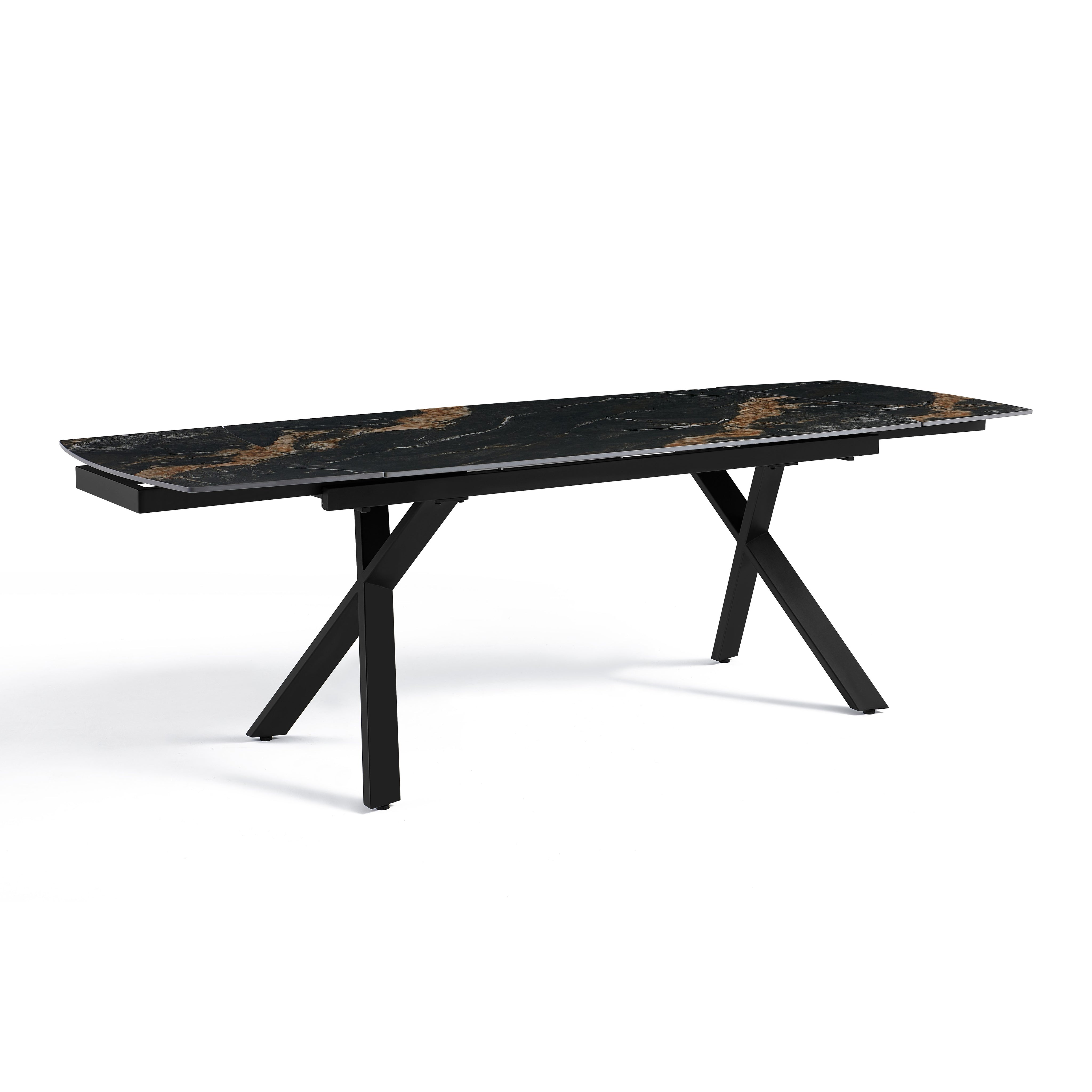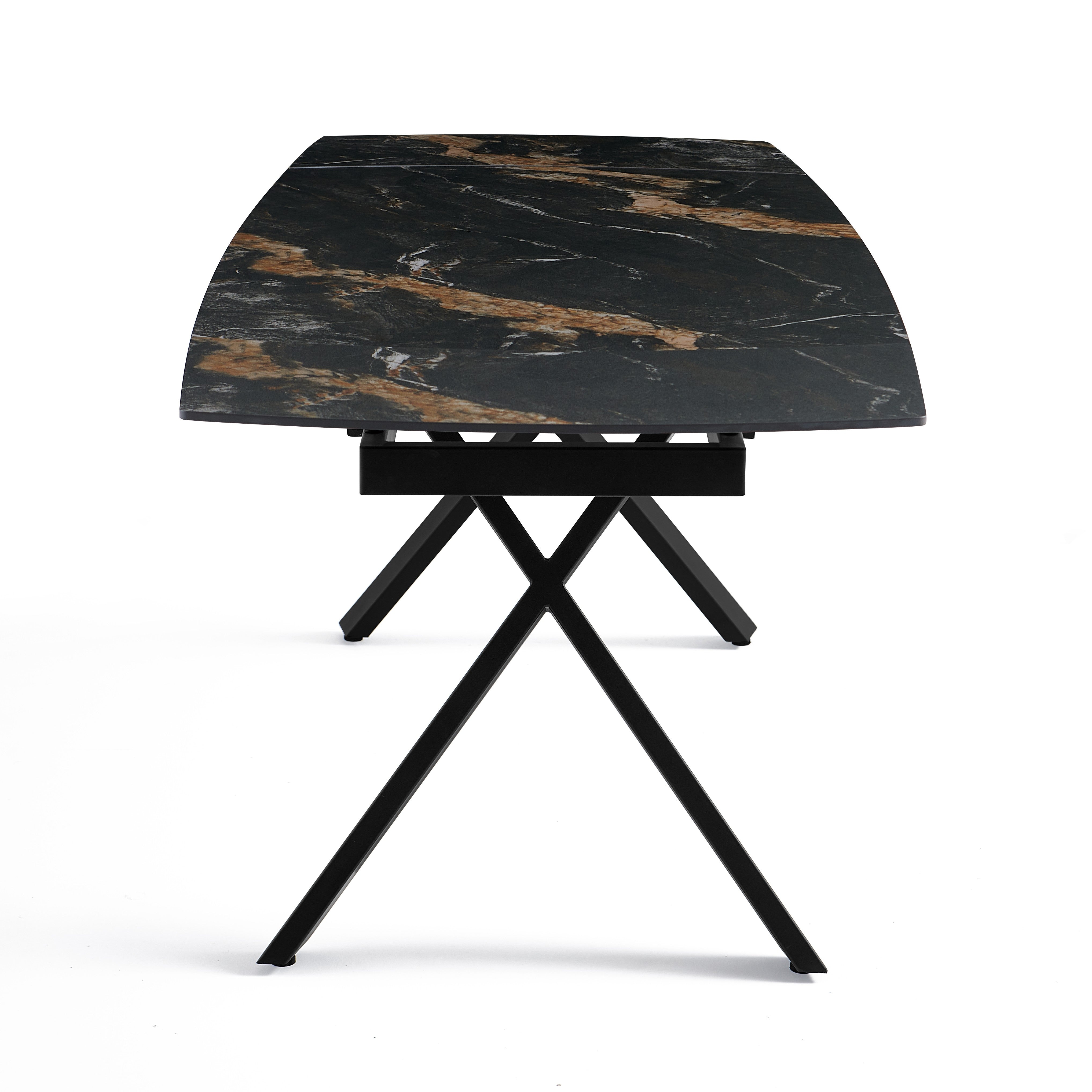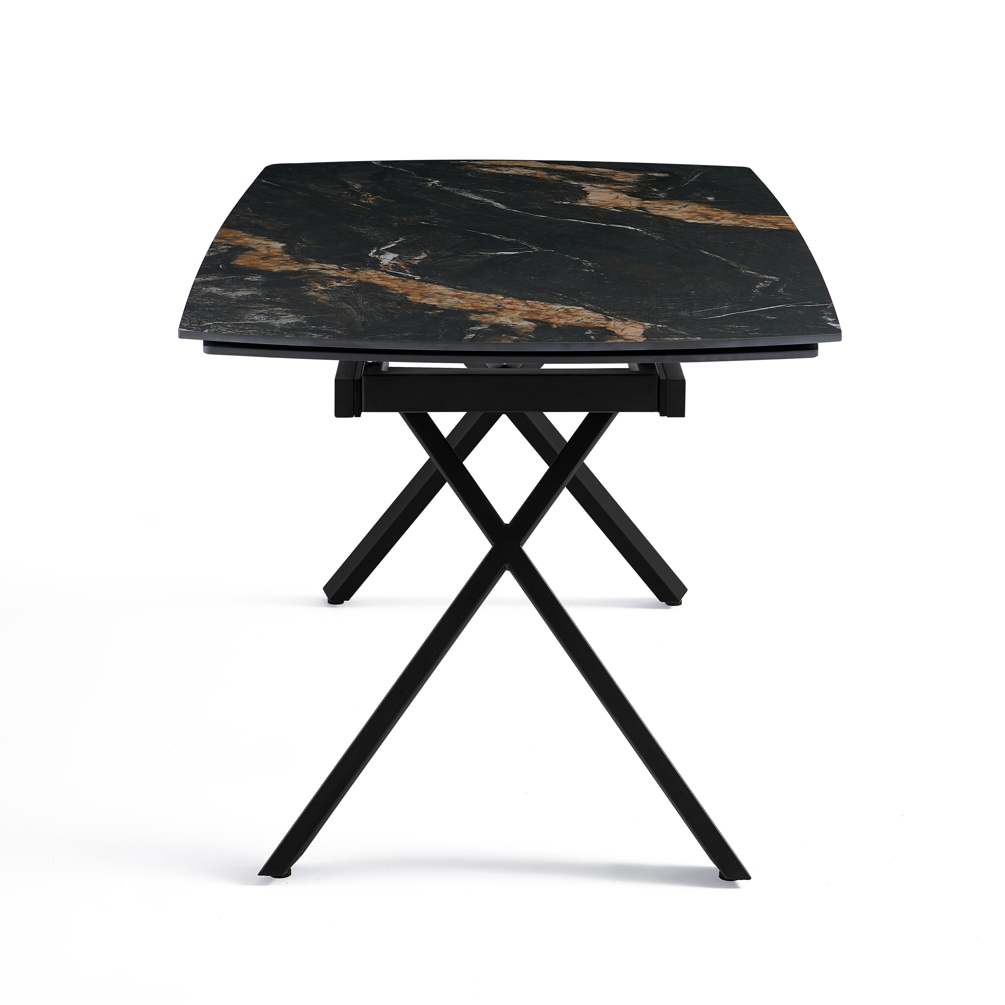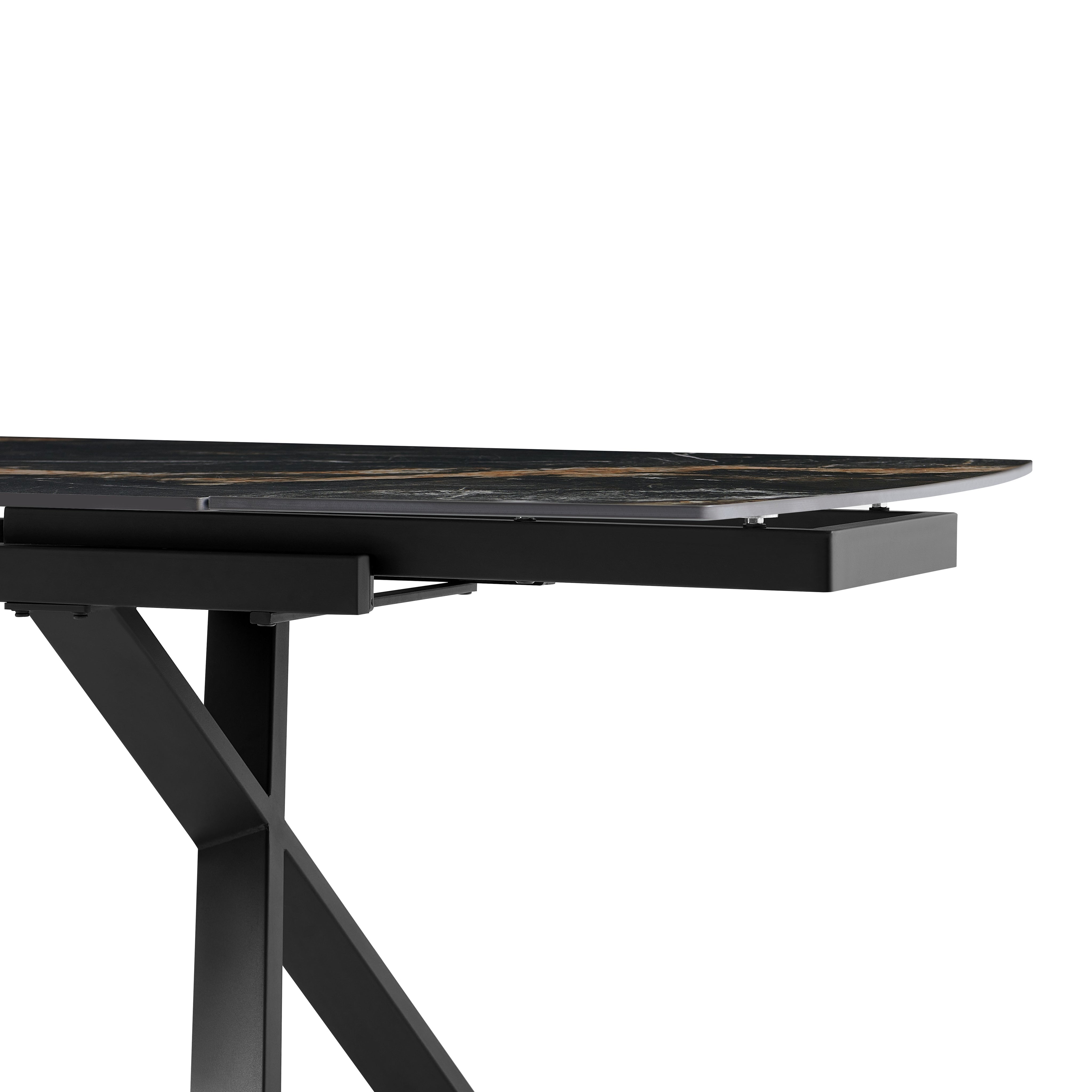 Stół Do Jadalni Ceramiczny 160–240x90 Czarny Marmur Nogi Stalowe Czarne Nova