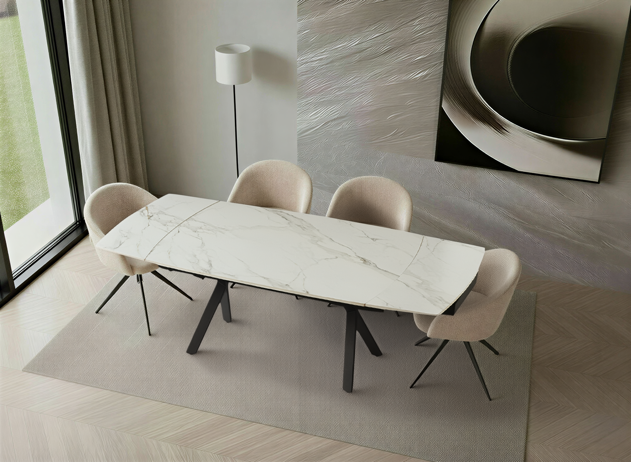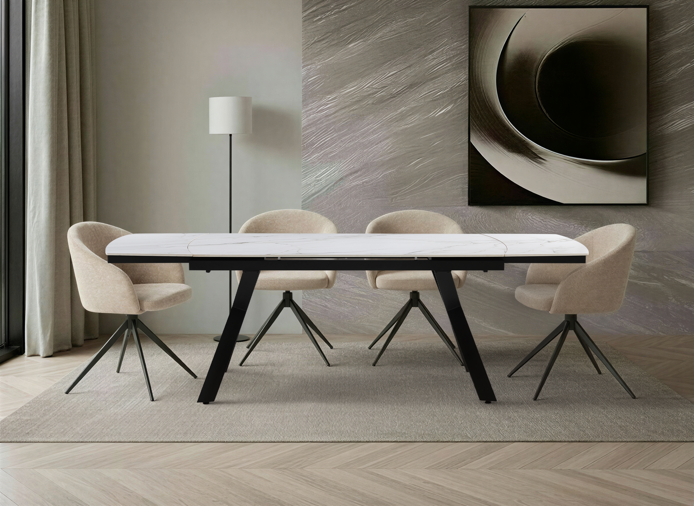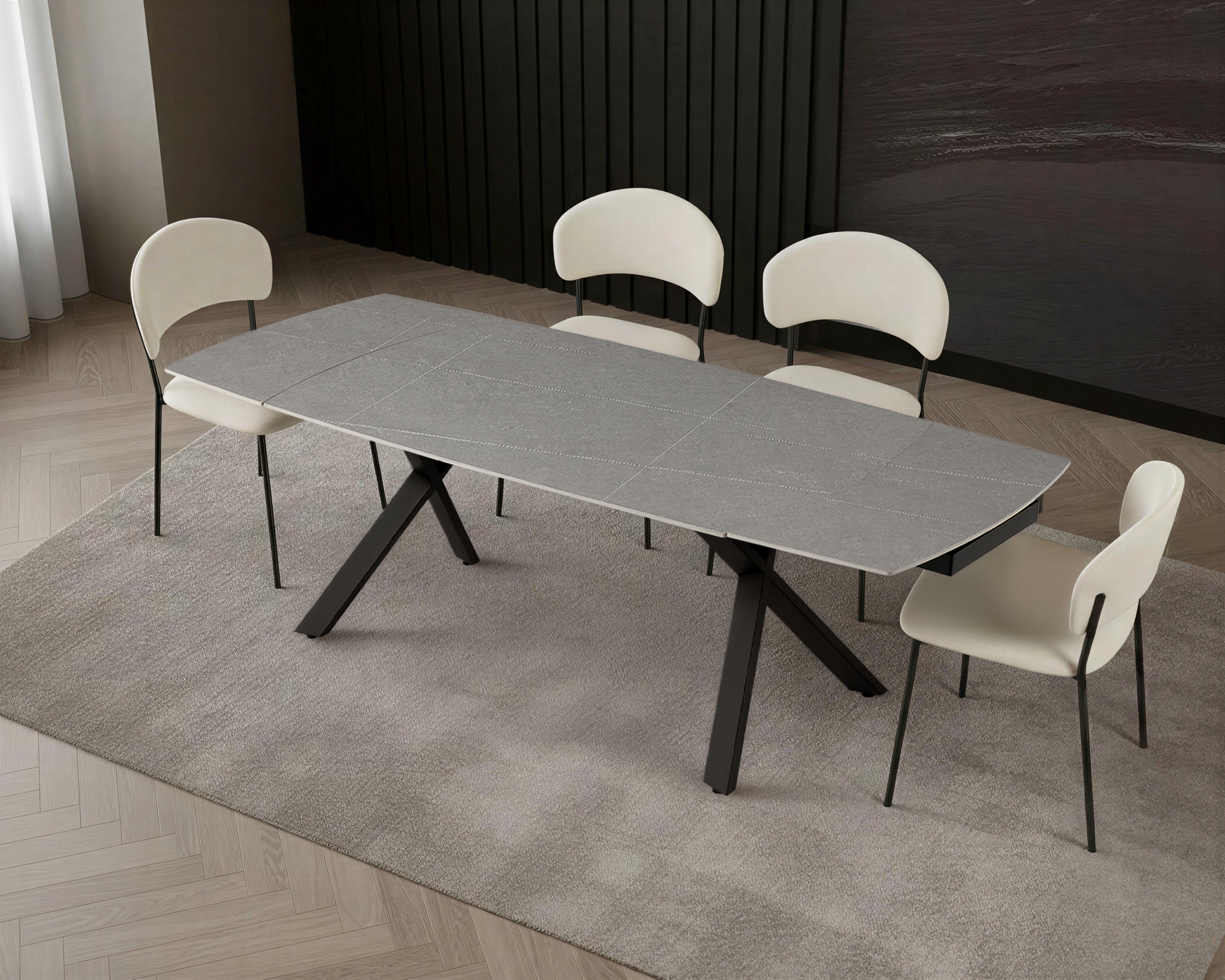 Stół ceramiczny Nova łączy nowoczesne wzornictwo z praktyczną funkcją rozkładania. Mechanizm pozwala na płynne wydłużenie blatu z 160 cm do 240 cm, zapewniając komfort podczas codziennych posiłków oraz większych spotkań rodzinnych.
