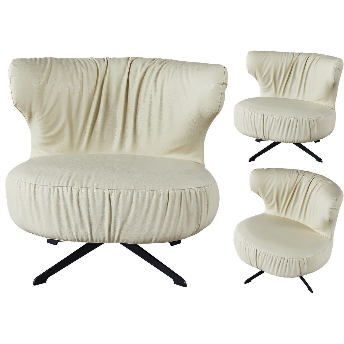 Fotel Wypoczynkowy Obrotowy Eco Skóra Kremowy Nowoczesny Nogi Stal Genova