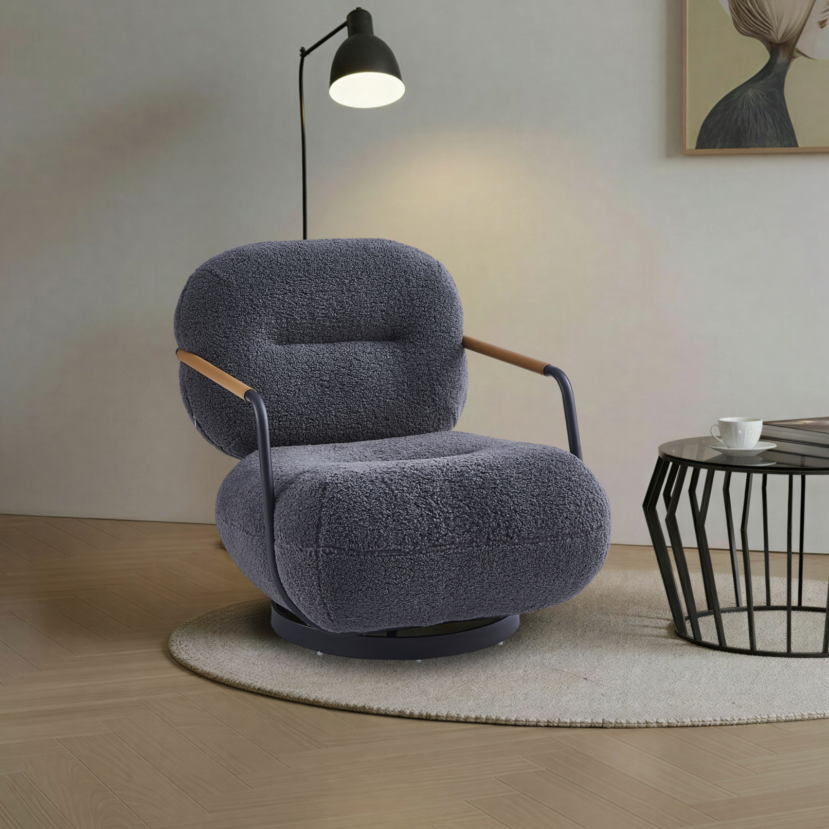 Fotel wypoczynkowy obrotowy tapicerowany bouclé czarny, nogi stalowe – MODENA