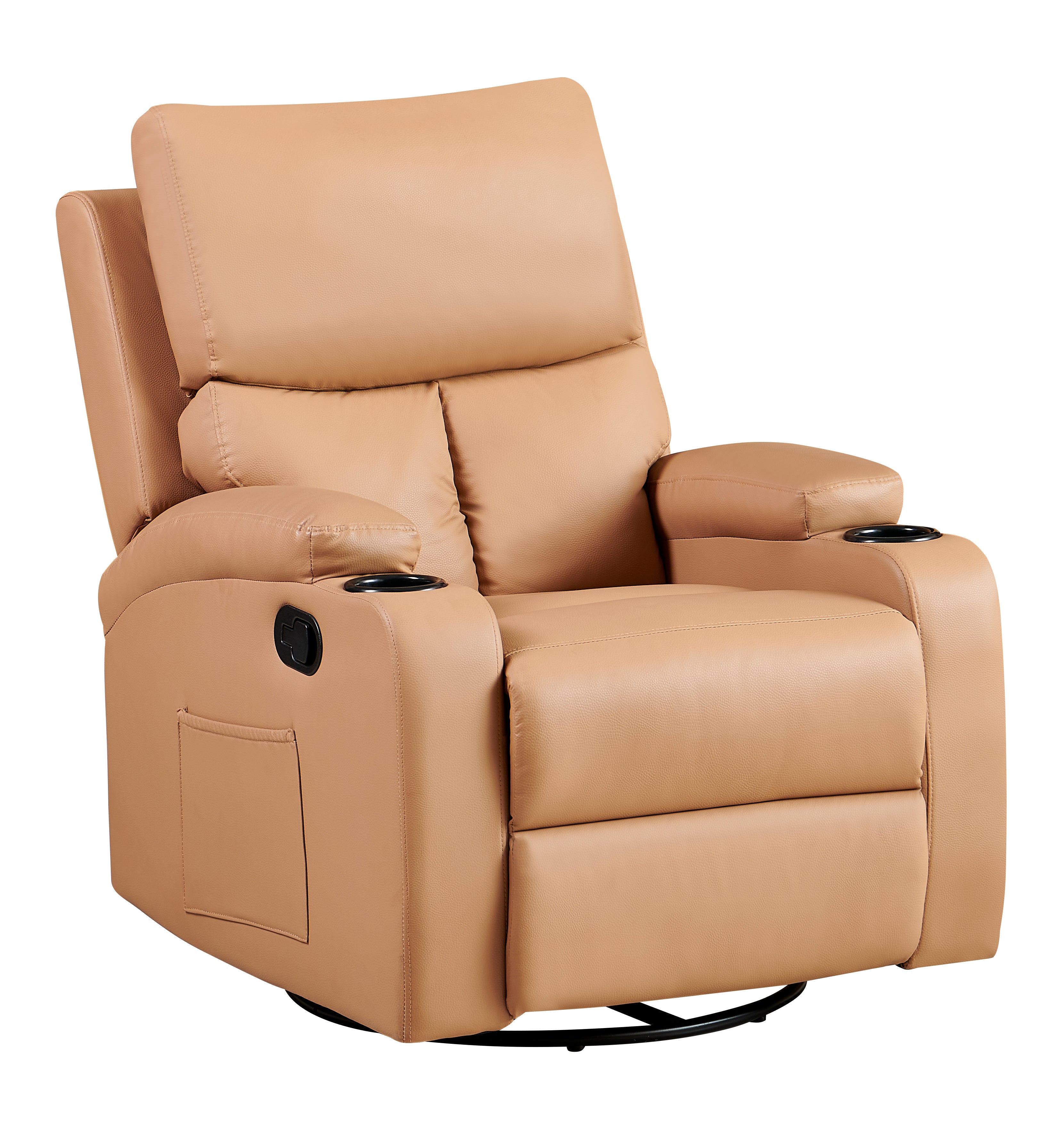 Model wyposażony jest w funkcję relaksu z wysuwanym podnóżkiem, dzięki czemu umożliwia pełne odprężenie nóg i wygodną pozycję do odpoczynku. Stabilna obrotowa podstawa zwiększa komfort użytkowania, a miękkie poduszki i szerokie siedzisko zapewniają wyjątkową wygodę podczas oglądania filmów, czytania lub drzemki.